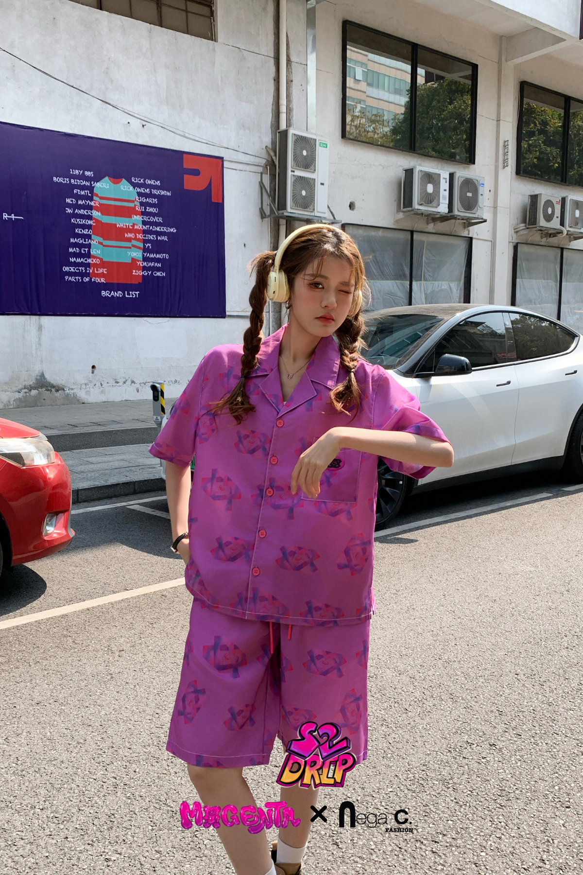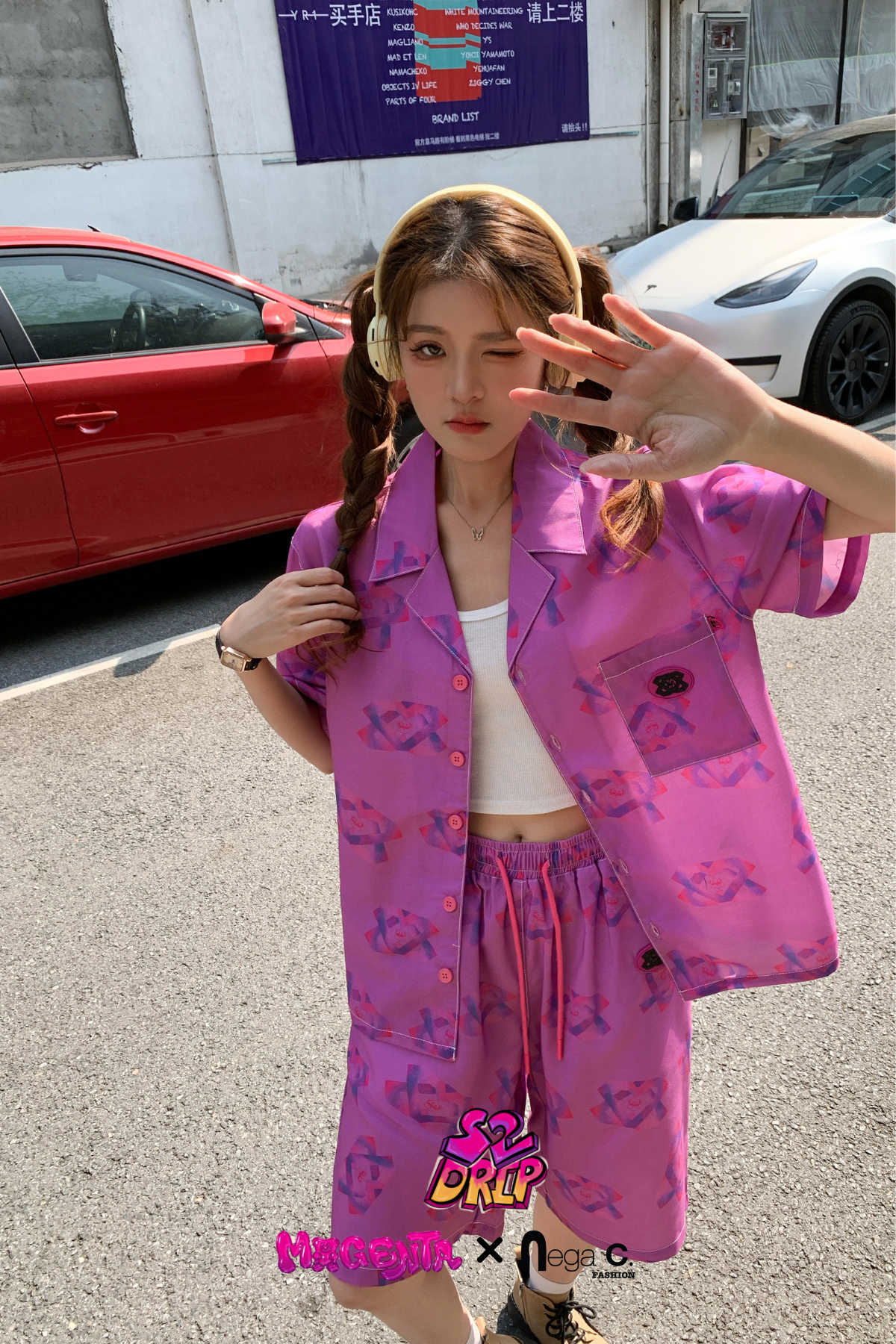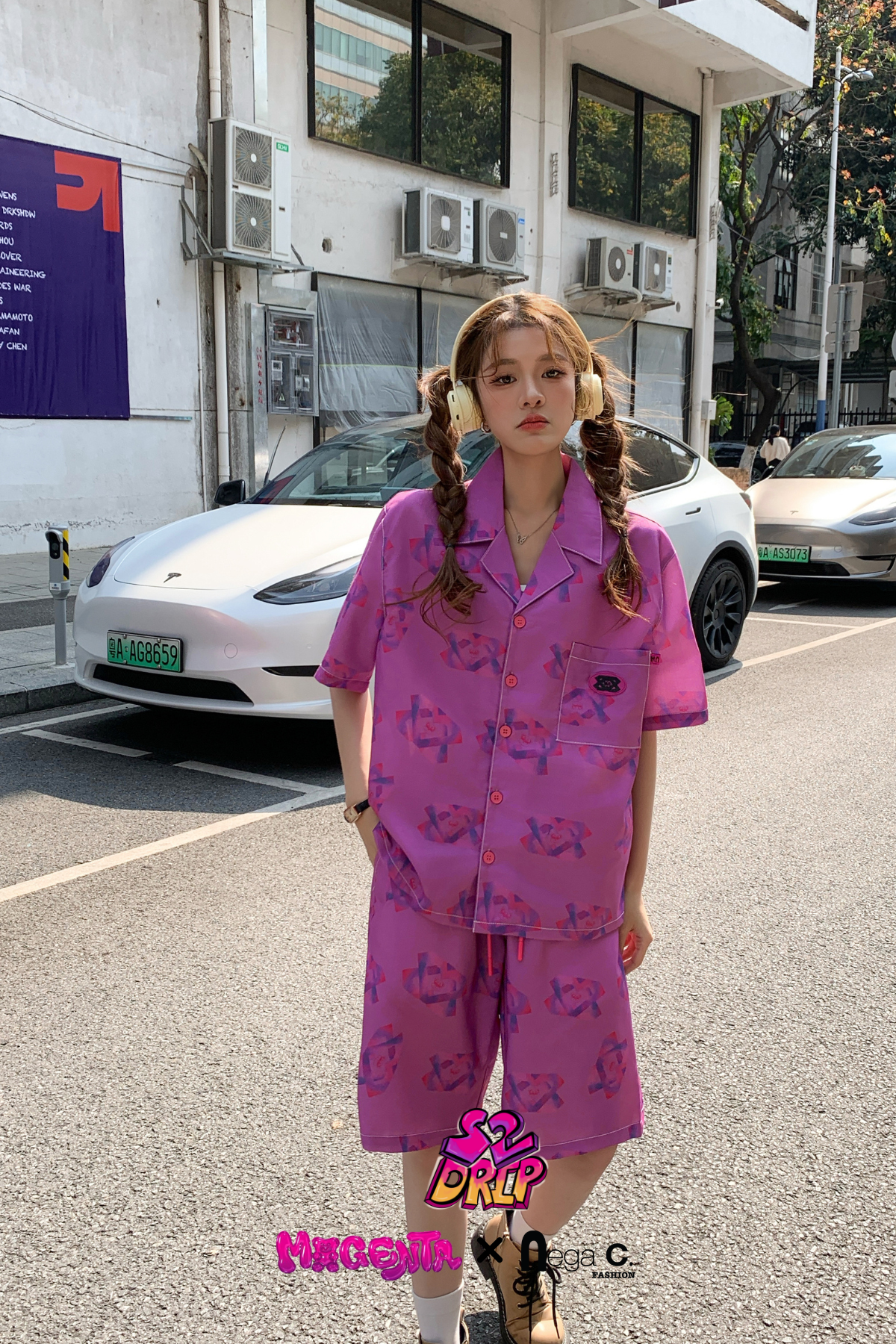 MxN S2 Magenta Bear Shirt + Shorts Set|Purple|