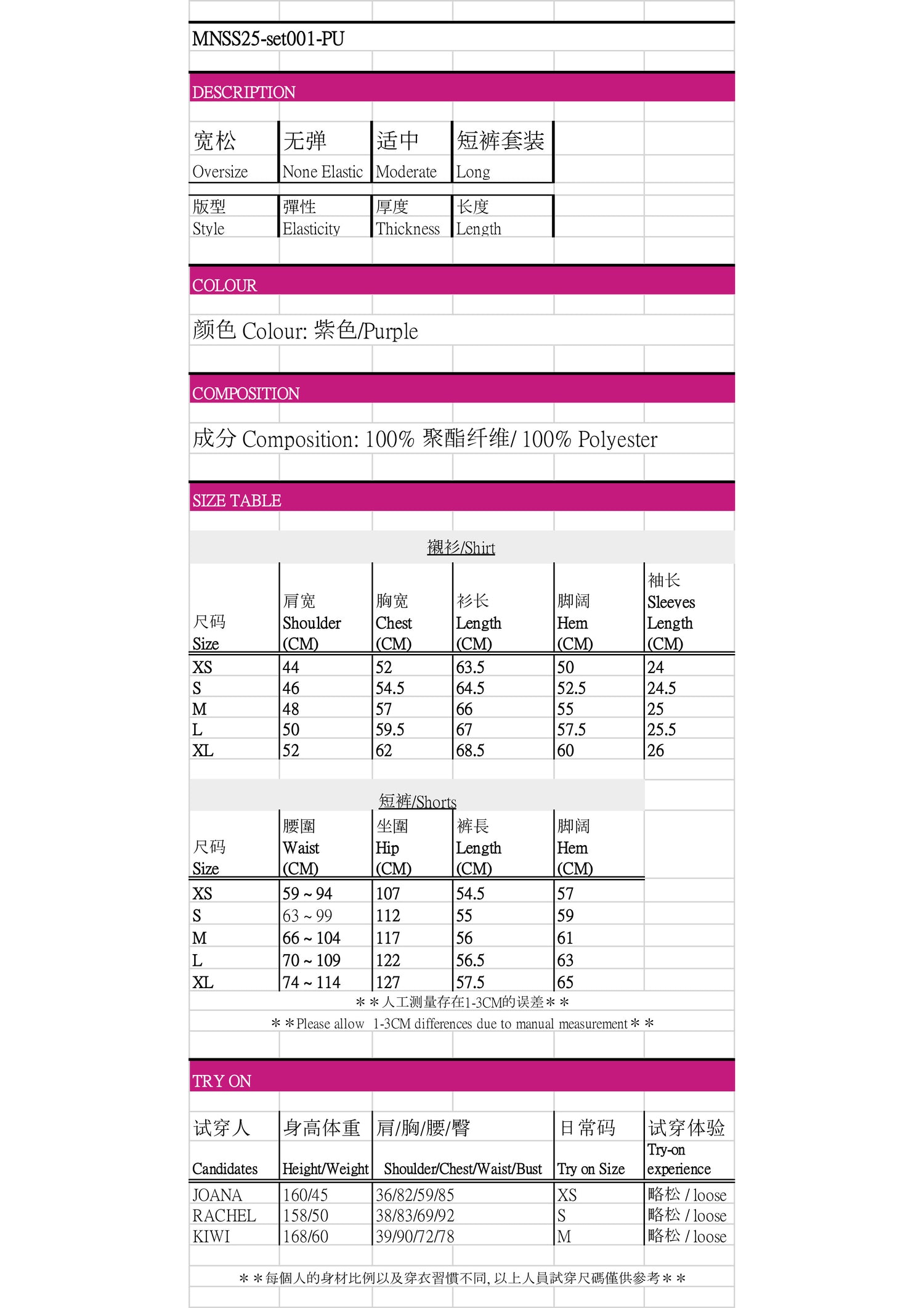 2.產品為大眾版型,請專注於尺寸。