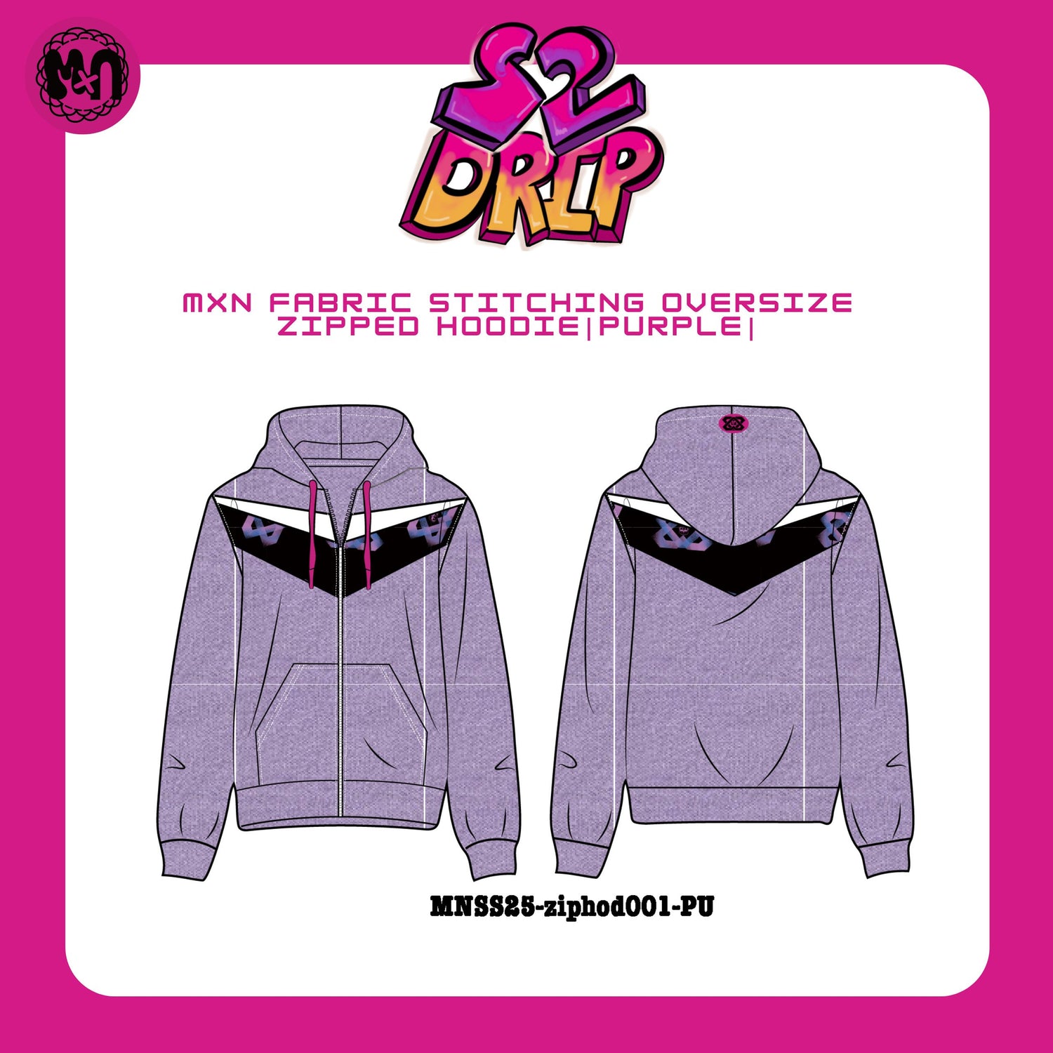 MxN fabric stitching oversize zipped hoodie|Purple|