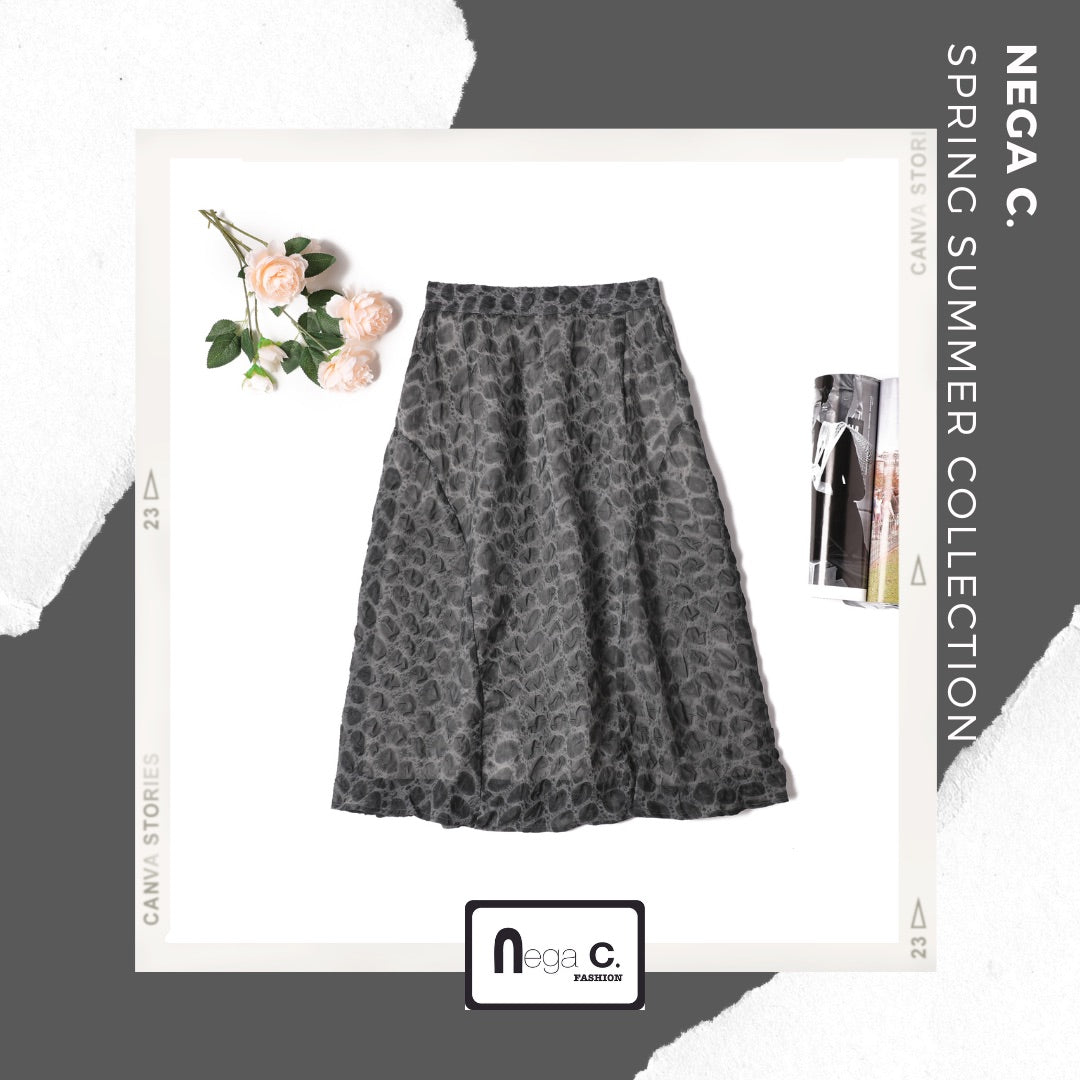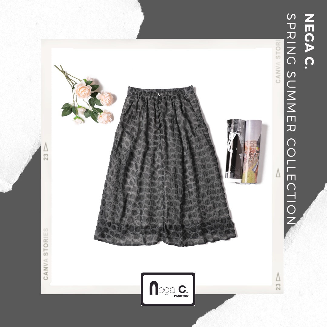 Nega C. 水墨印花雪紡中場半截裙|黑色|有裡襯