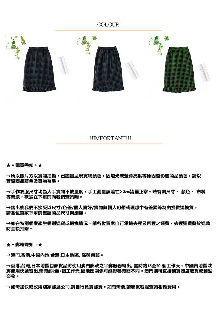 復古風滿滿的格子中長裙,帶一些文青的風。model超過176cm,穿上顯得比較短,較優雅風的感覺。但一般155至165cm左右,穿上會顯復古風感。後腰是橡筋設計,S碼25至29寸腰ok~M碼27至31腰ok哦~