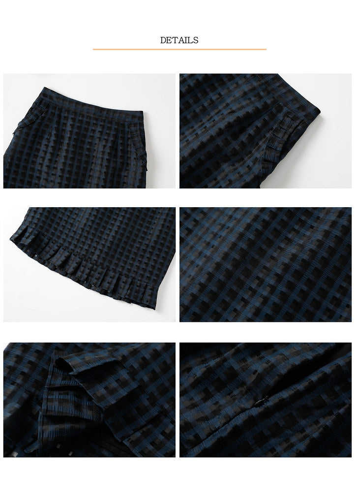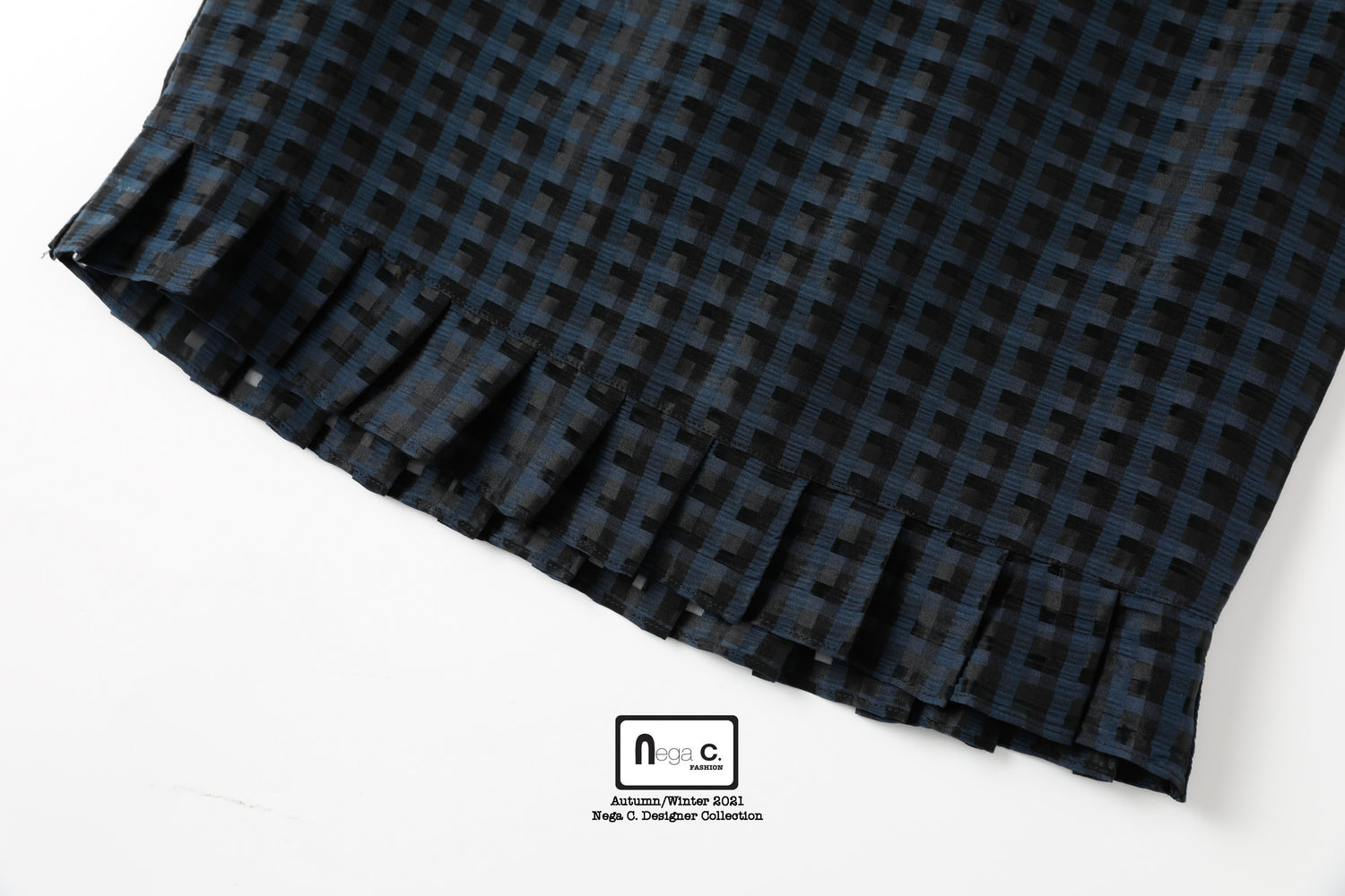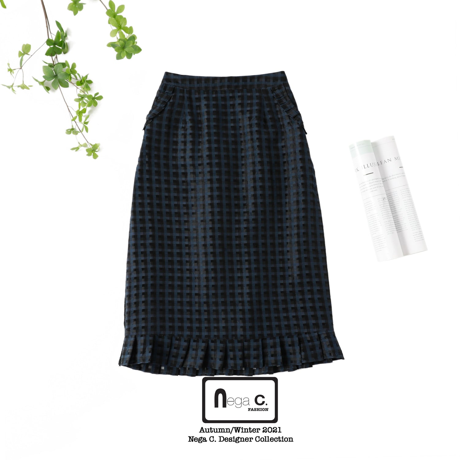 Nega C. 彩色格子壓摺口袋半裙|深藍色|