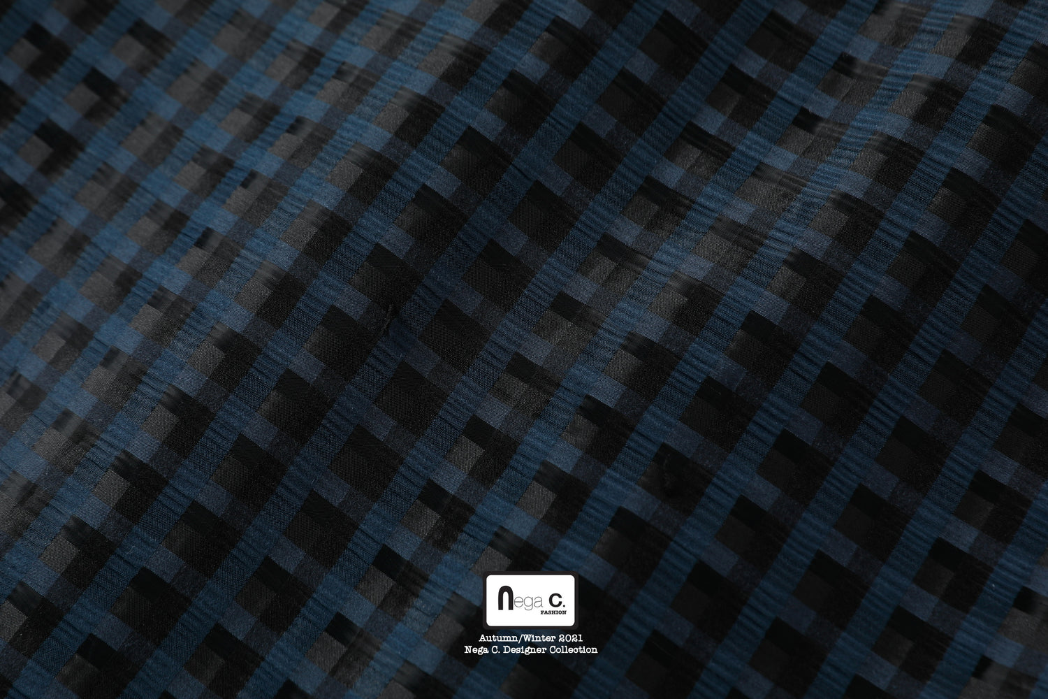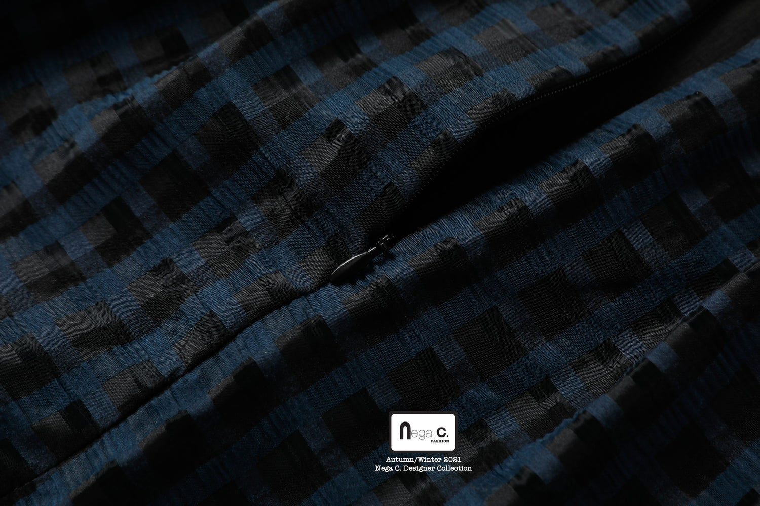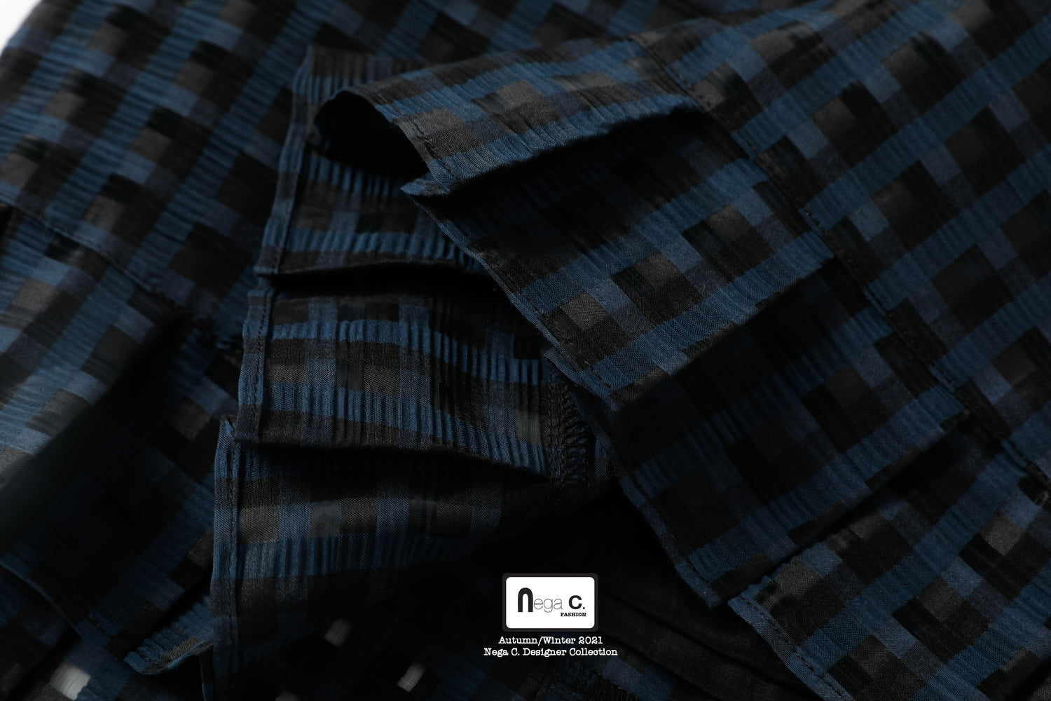 Nega C. 彩色格子壓摺口袋半裙|深藍色|