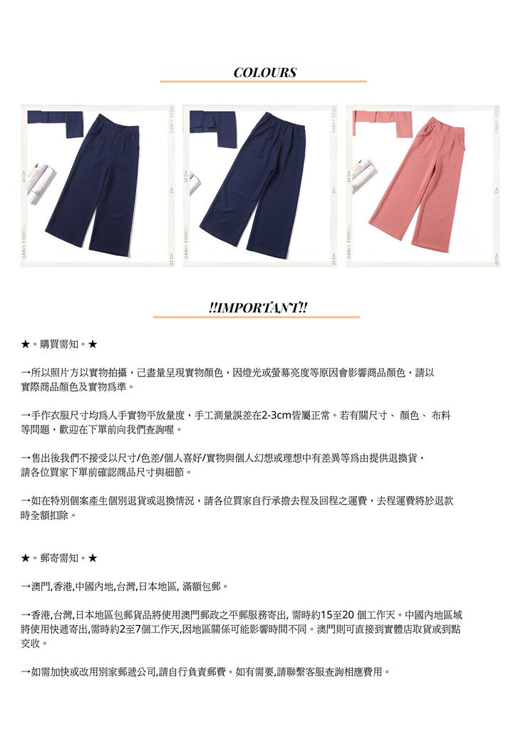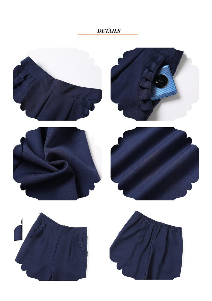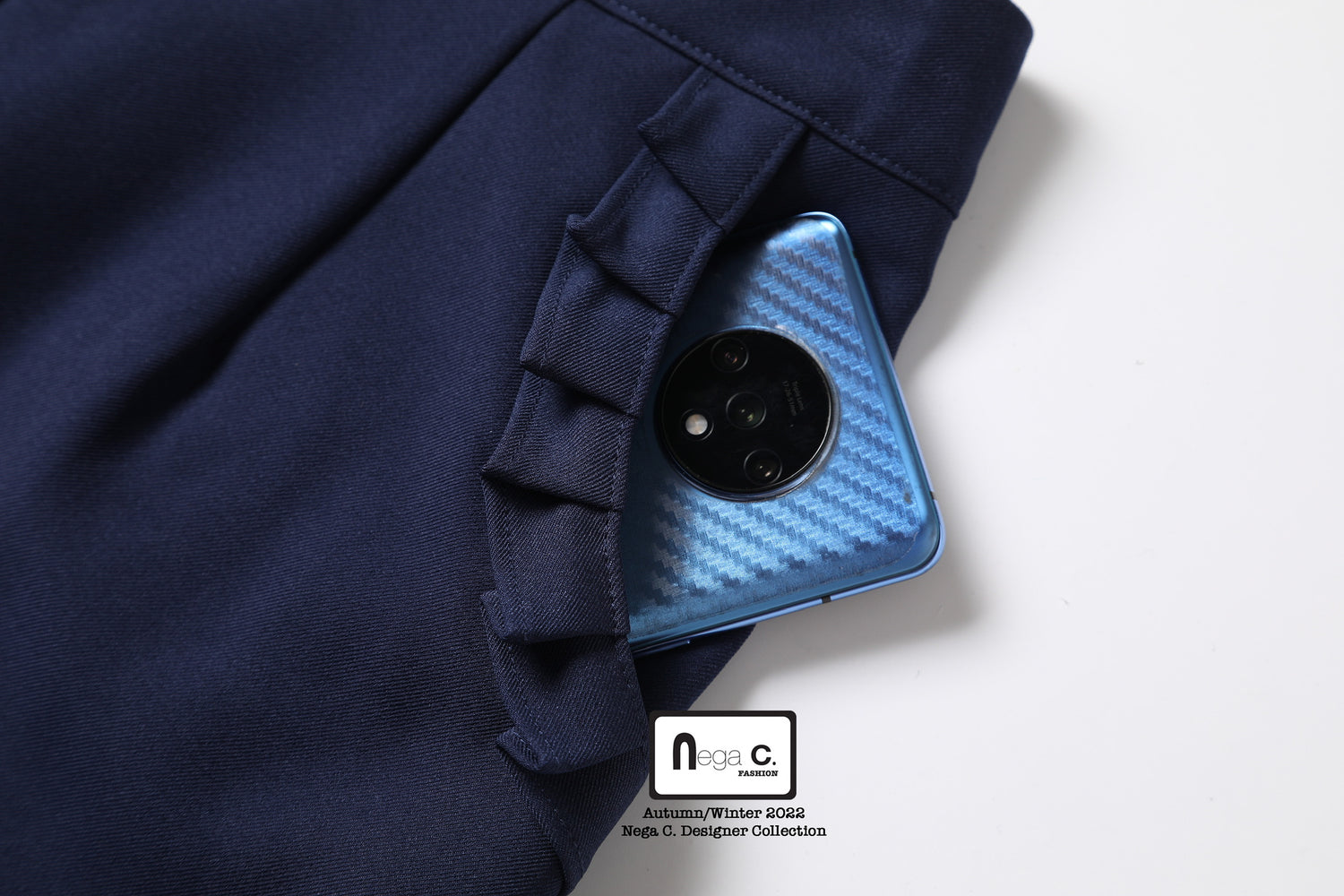 + Nega C. 純色荷葉邊闊版西褲| 深藍色| 無彈| 無裡襯+