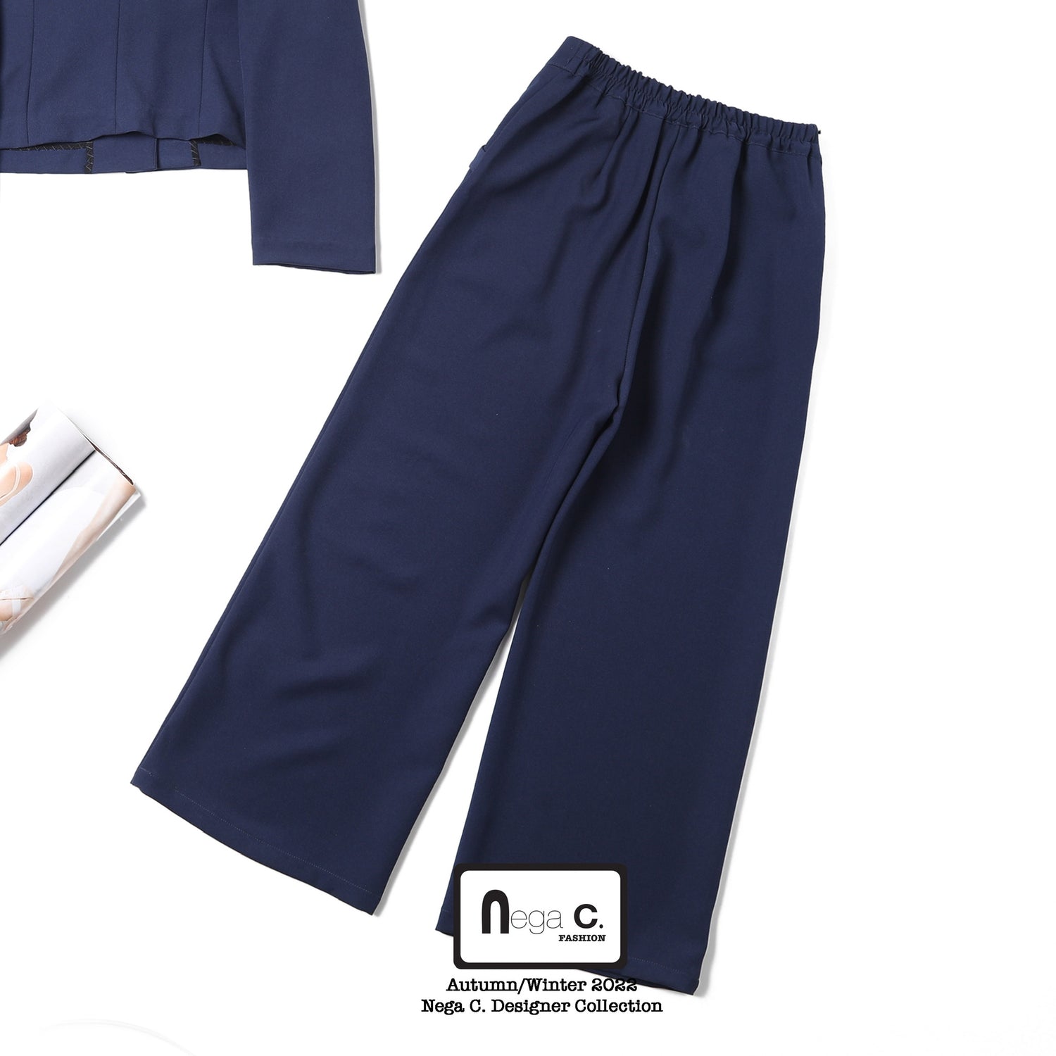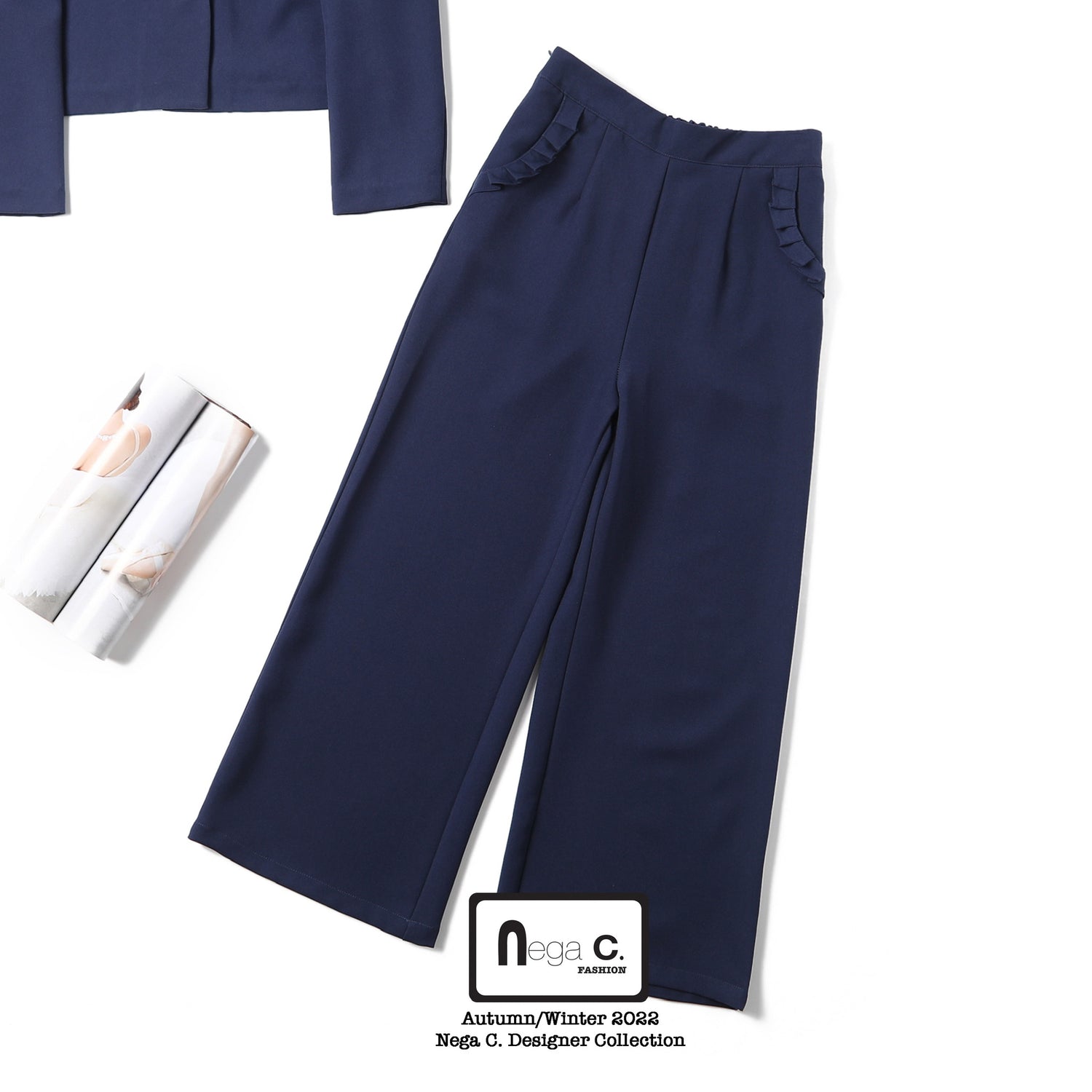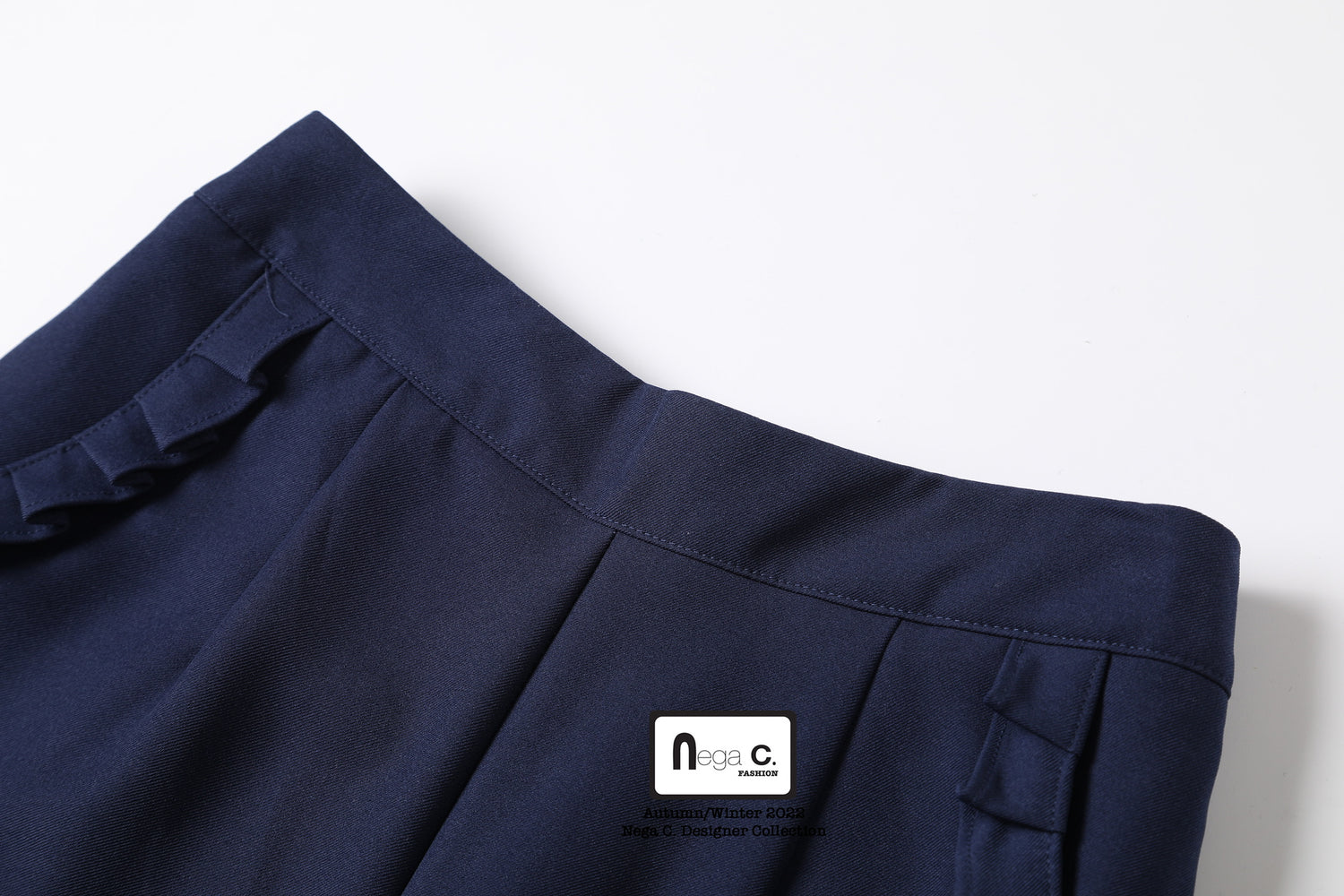 Nega C. 純色荷葉邊闊版西褲| 深藍色| 無彈| 無裡襯
