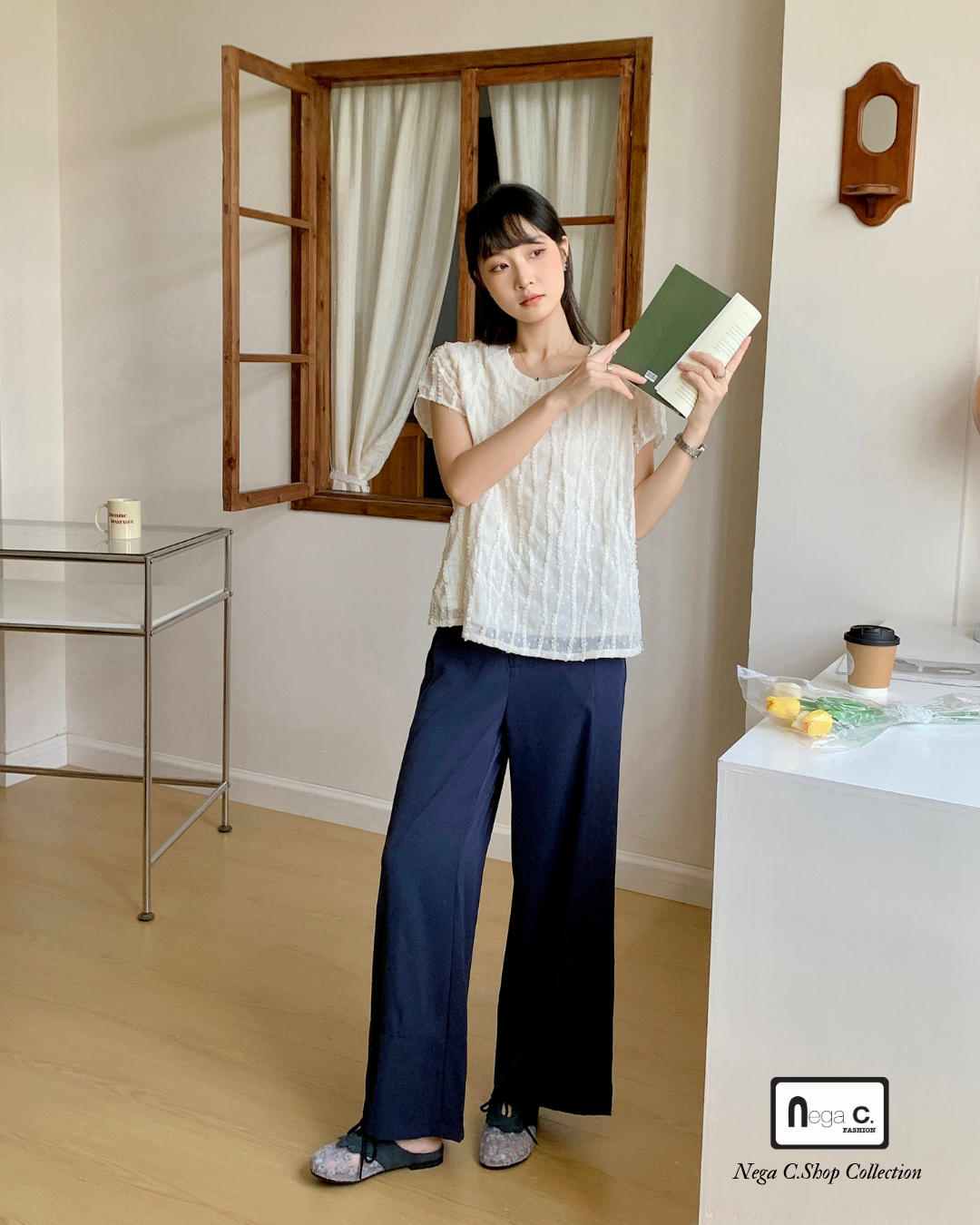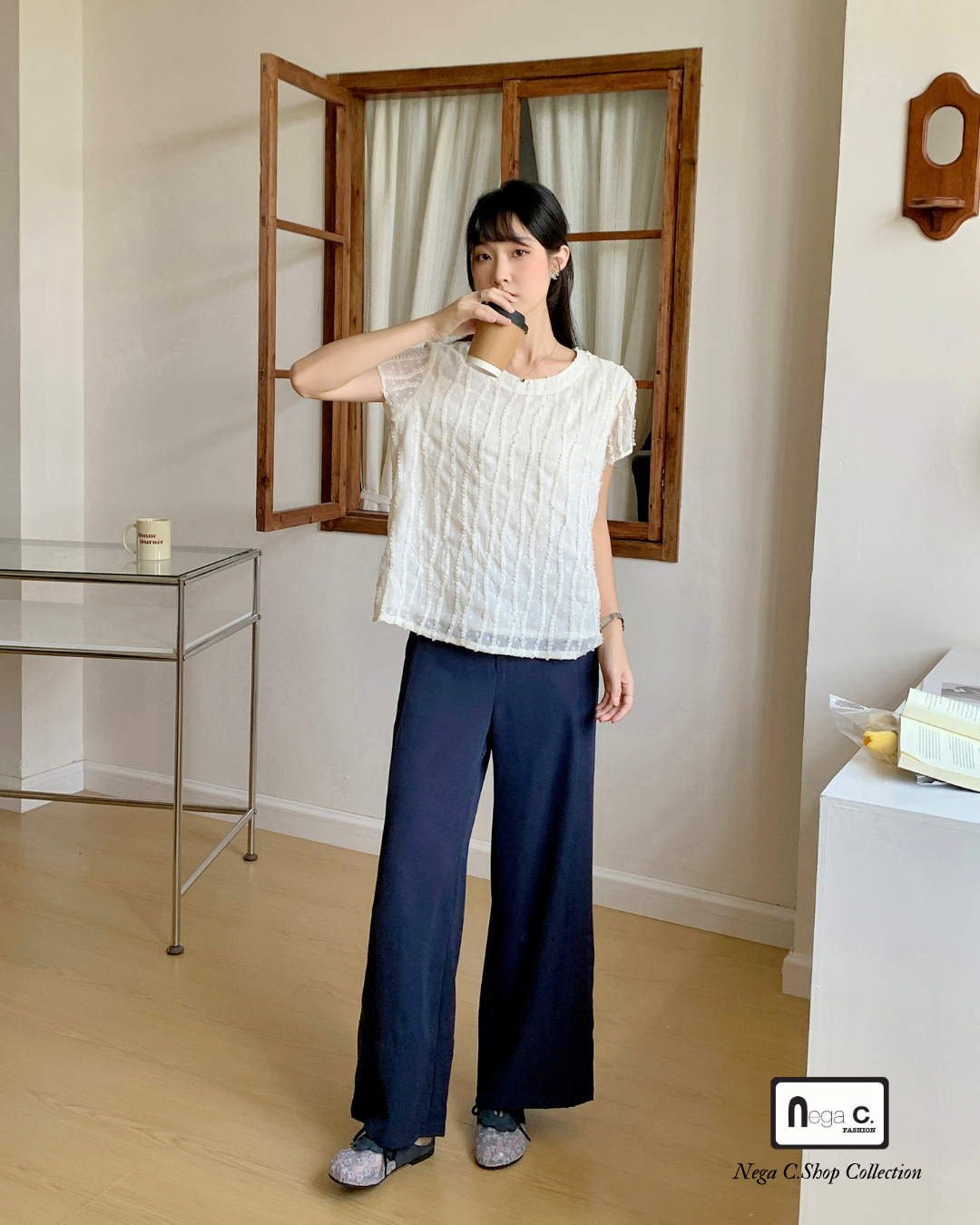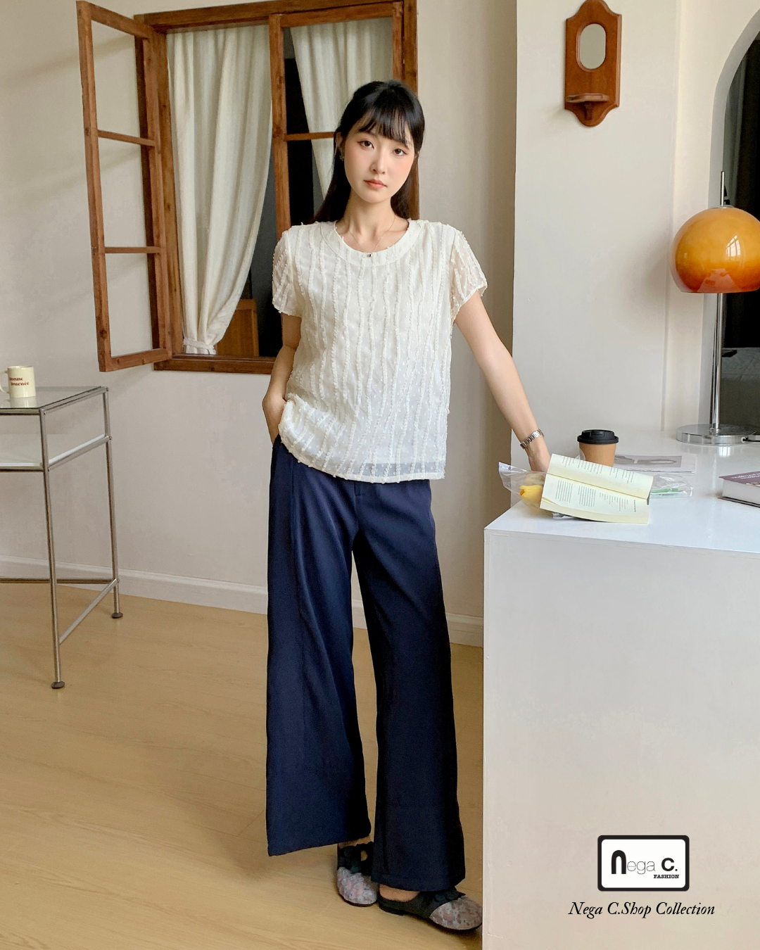 | 蕾絲暗紋壓摺上衣|米色|有裡襯|無彈|不透明