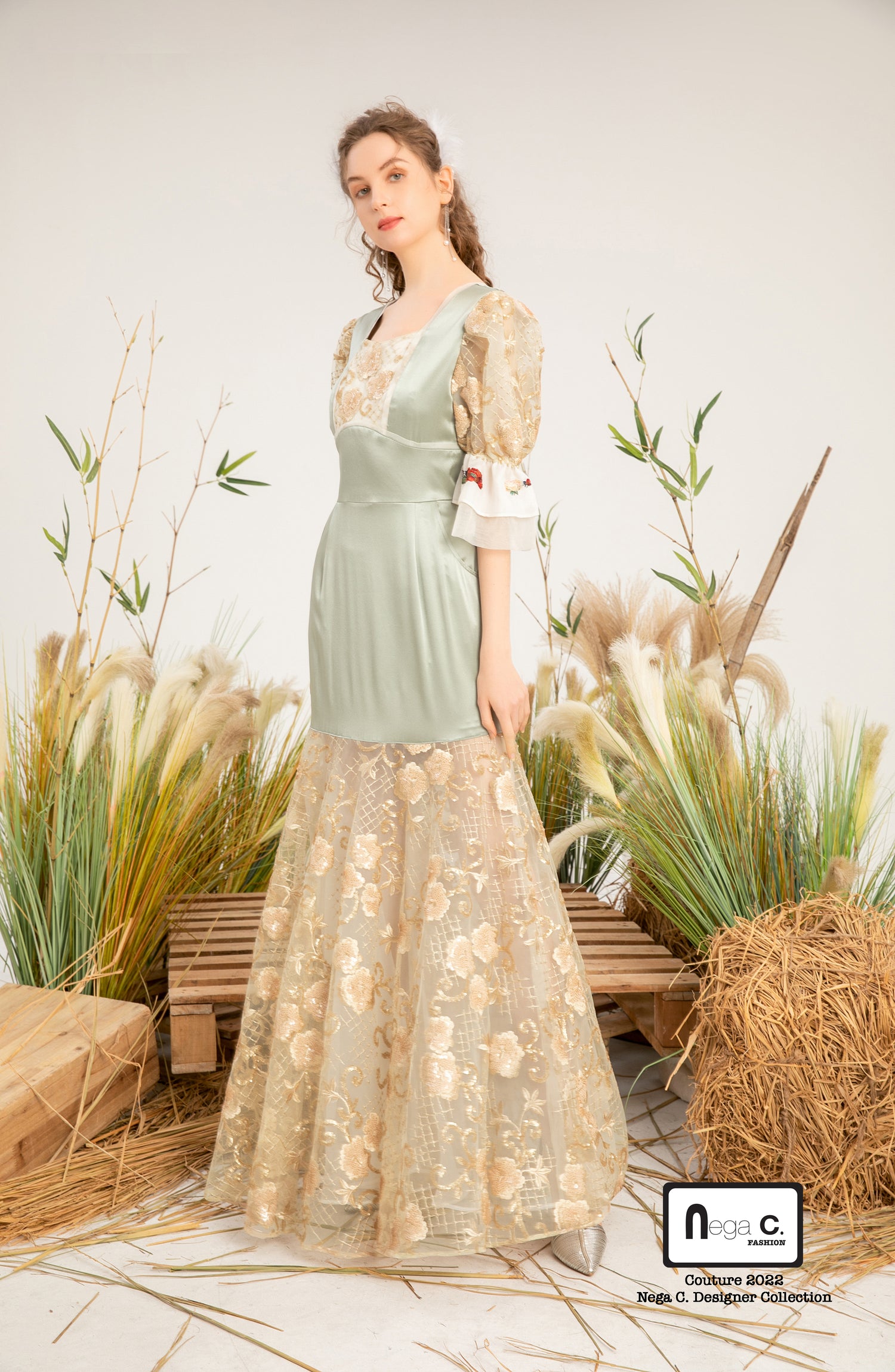 Colour: Gold/Mint, Fabric: 100% Silk with Embroidery fabric