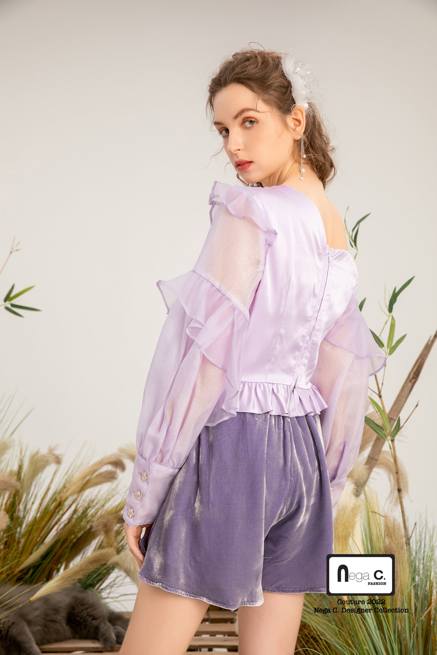 顏色: 粉紫色, 面料: 100% 真絲, 刺繡布料