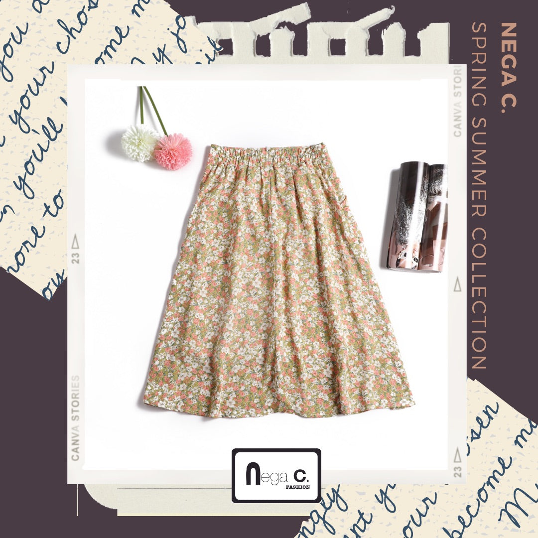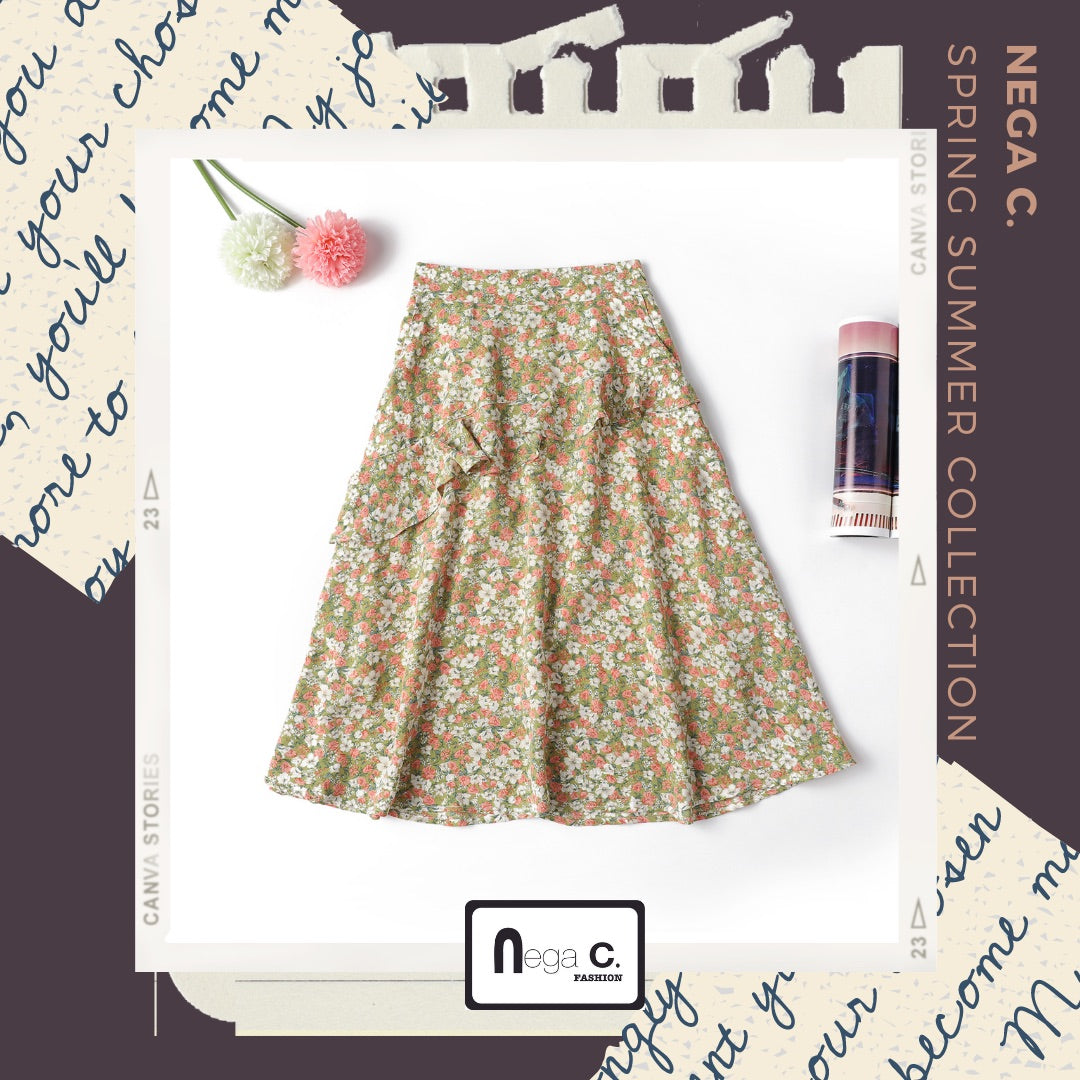 + Nega C. 小碎花荷葉邊中長裙 +