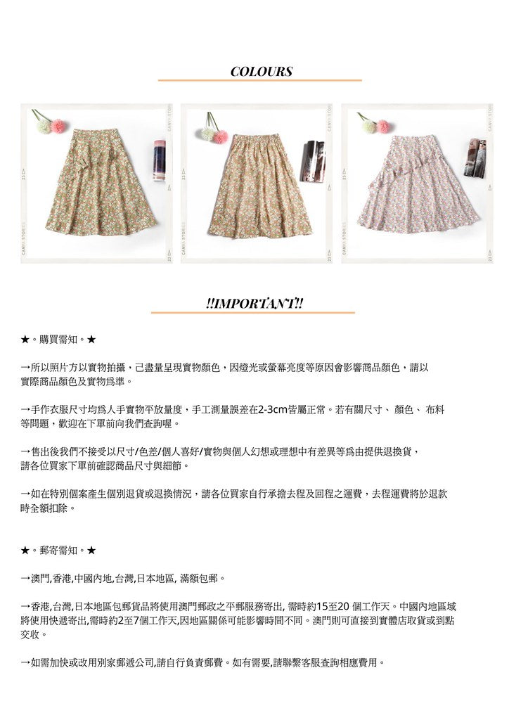 中長的長度就算150cm小個子也能駕馭哦~小碎花復古感滿滿的~夏天穿非美哦~後腰是橡筋設計,S碼25至29寸腰ok~M碼27至31腰ok哦~