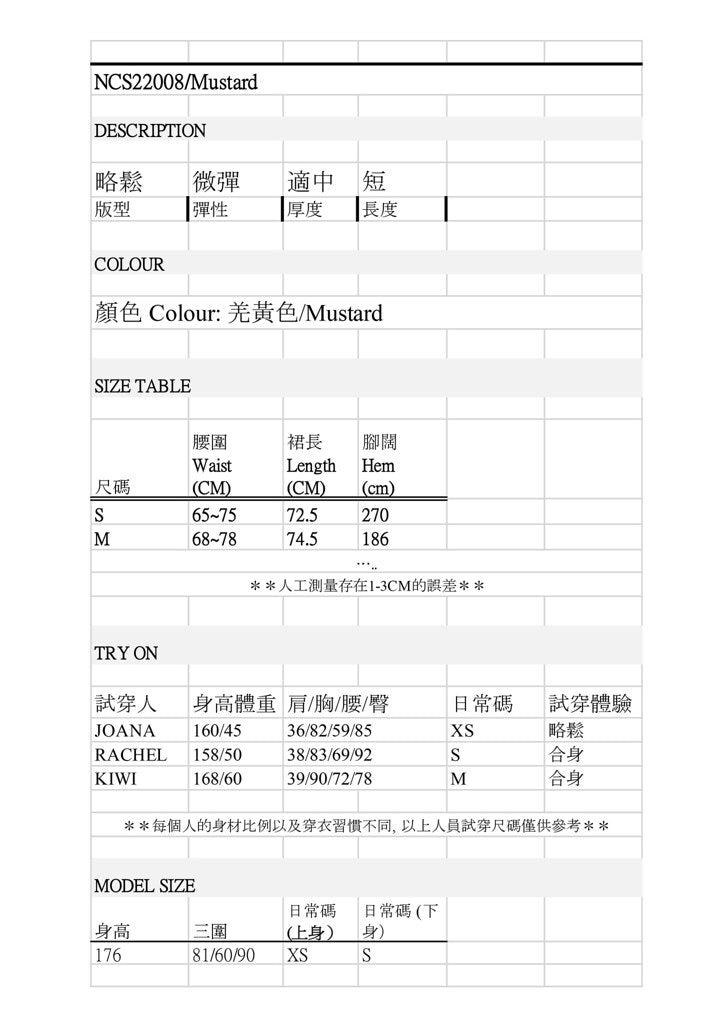 |Colour| 顏色:|Mustard|羌黃色, |Pink|粉紅色