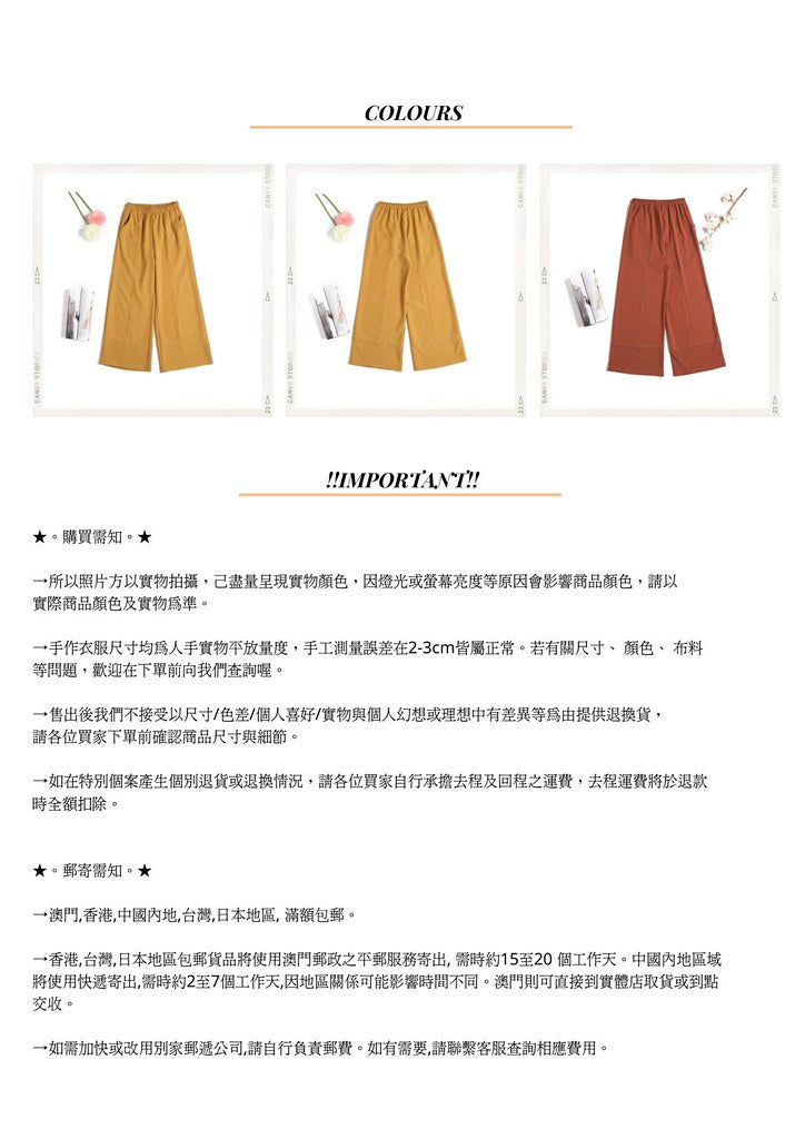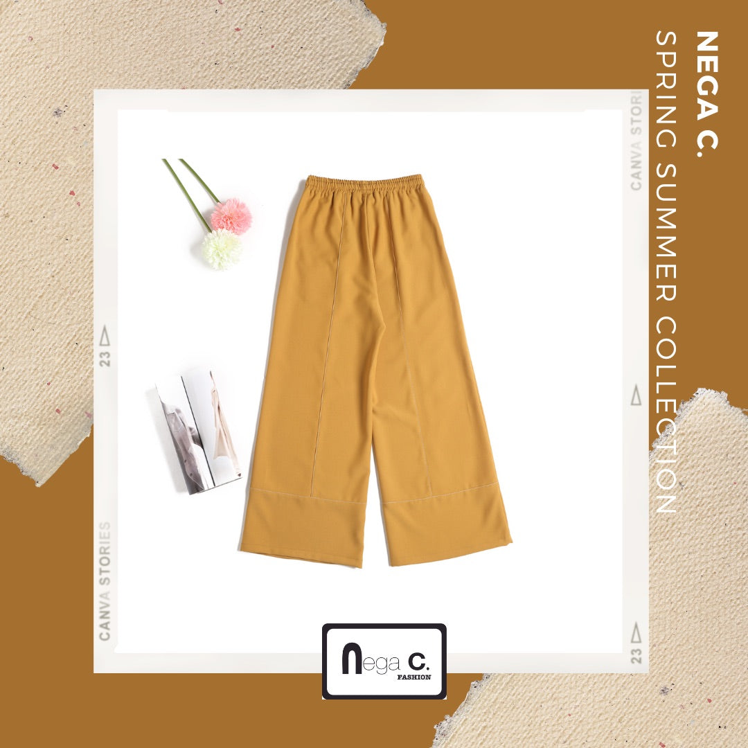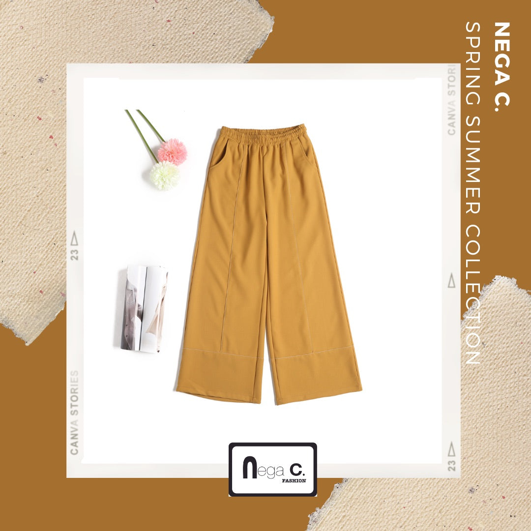 + Nega C. 橡筋腰車線闊腿褲|羌黃色|橡筋腰|微彈| +
