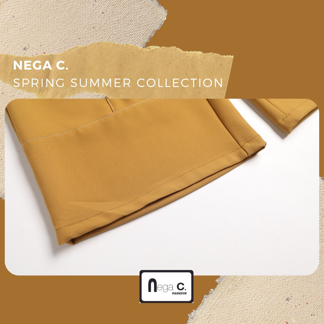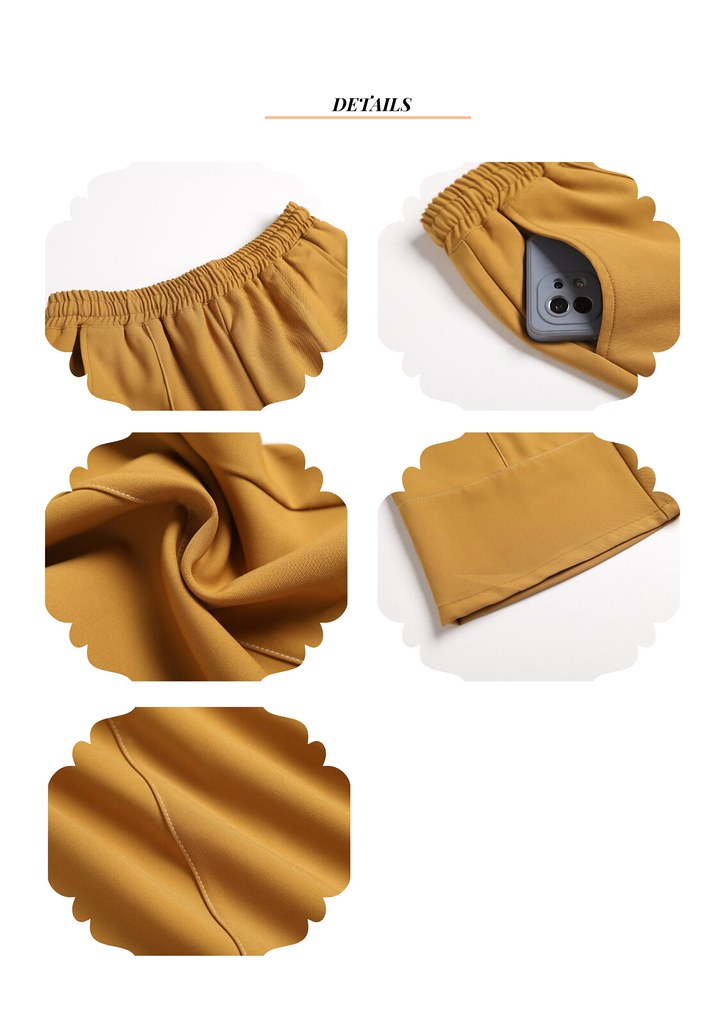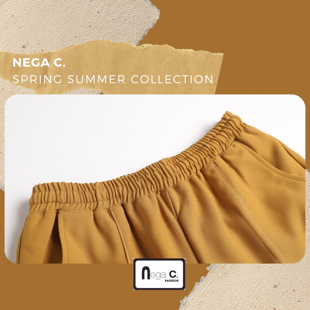 Nega C. 橡筋腰車線闊腿褲|羌黃色|橡筋腰|微彈|