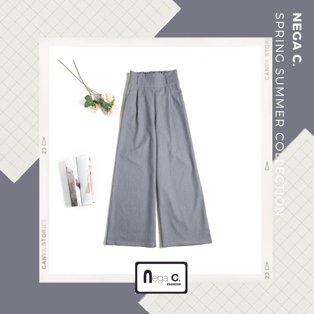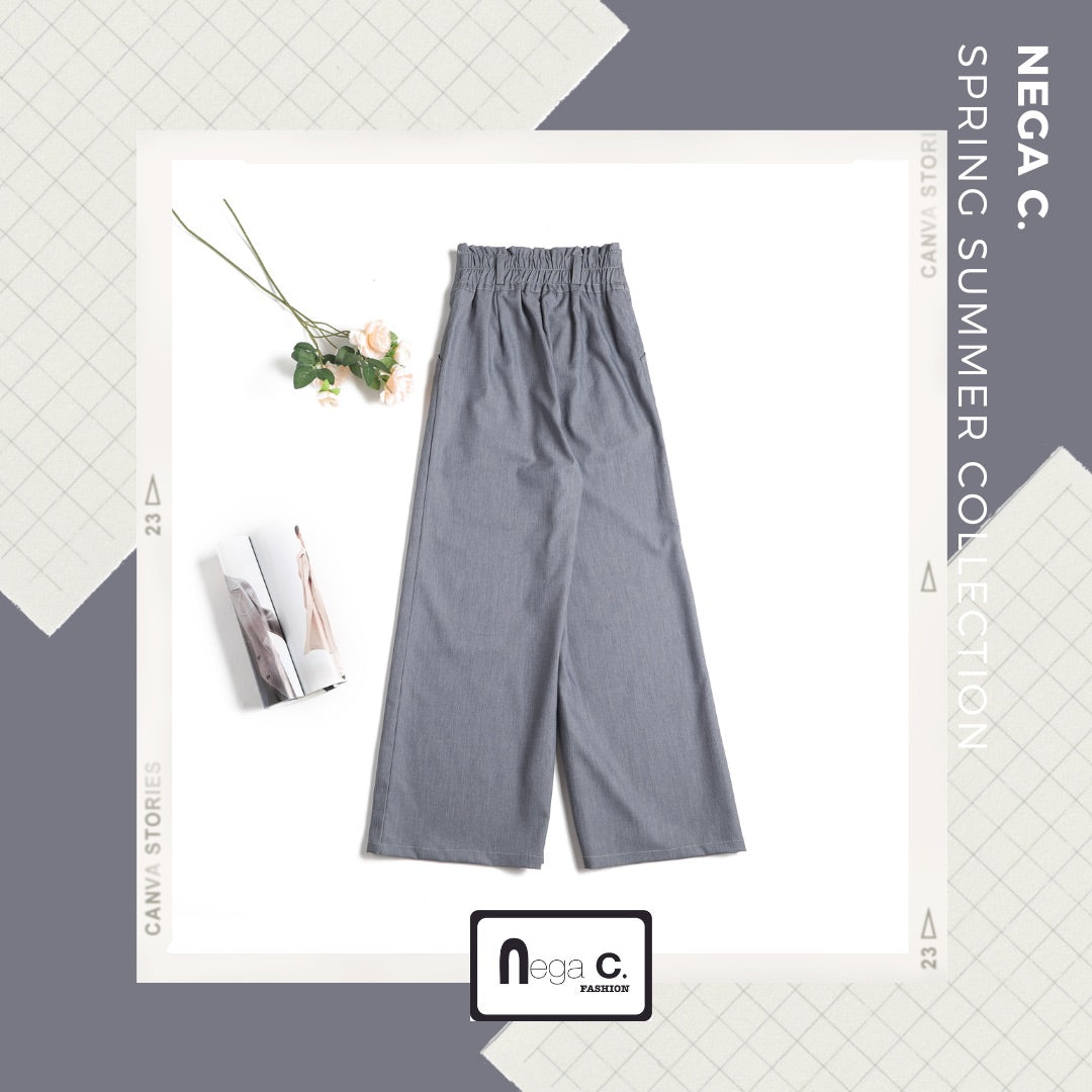 Nega C. 高腰闊腿紙袋褲|灰色|微彈