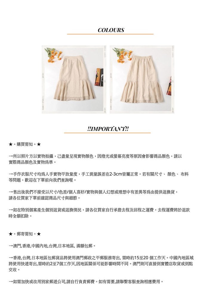 這款米色優雅壓褶腳中長半截裙,輕柔舒適,質感極佳。壓褶腳的設計展現了女性的優雅氣質,讓您穿上它時更加自信美麗。後腰是橡筋設計,S碼25至29寸腰ok~M碼27至31腰ok哦。