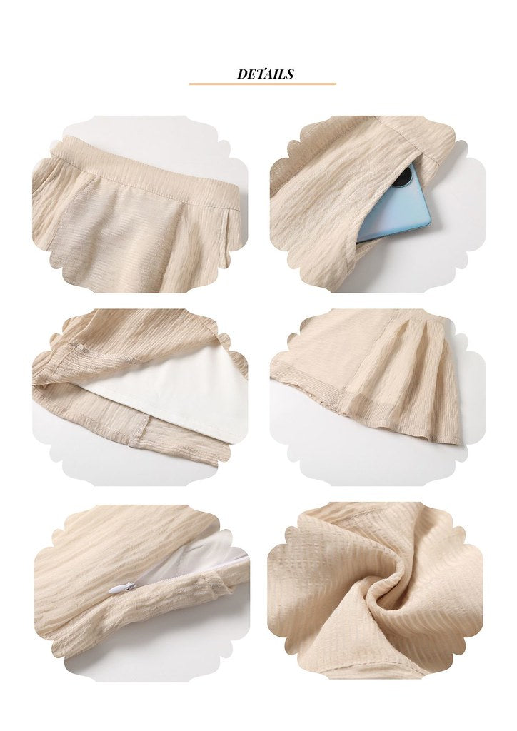 Nega C. Elegant Pleated Hem Mid-Length Skirt |Beige| With lining