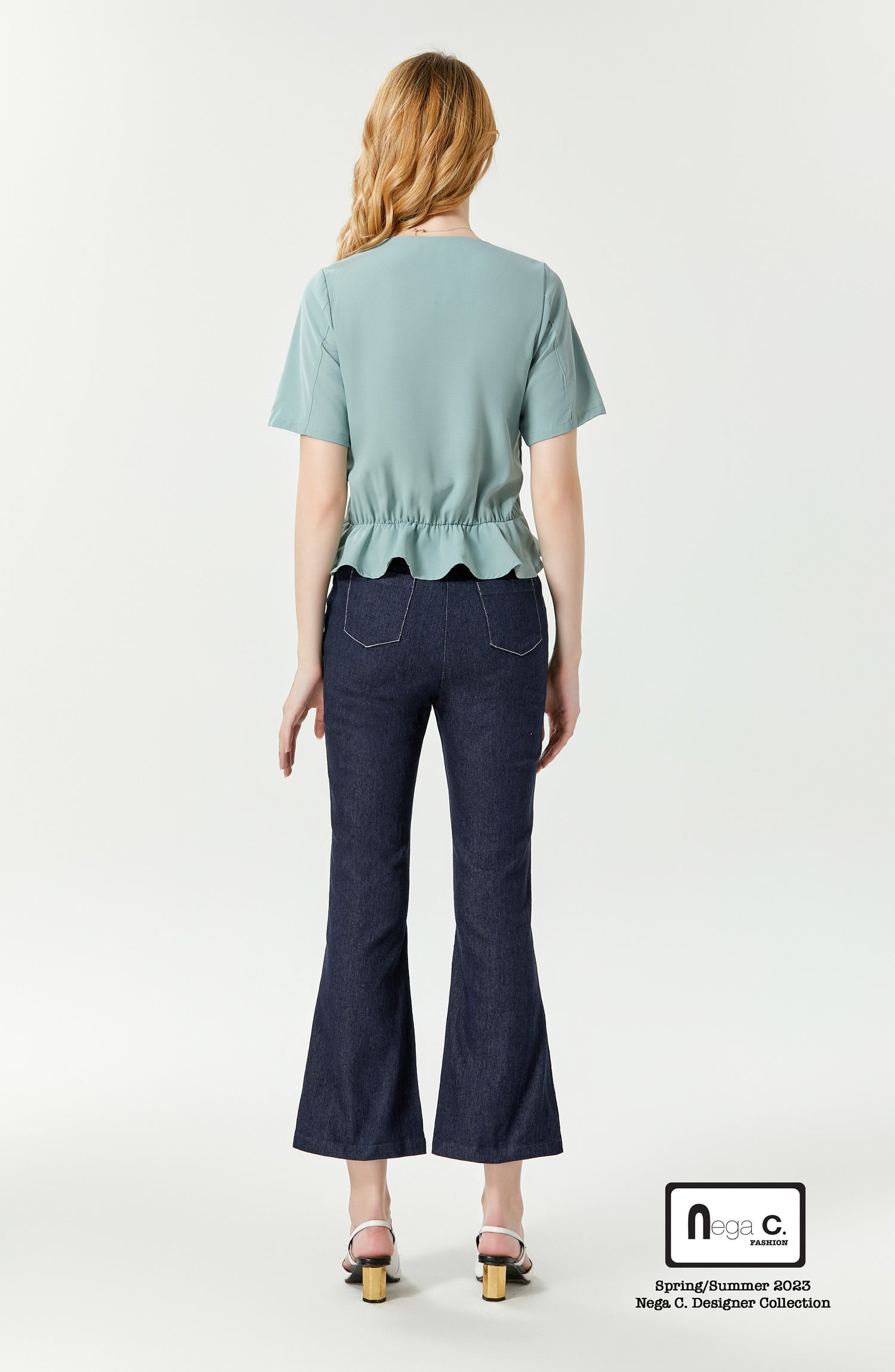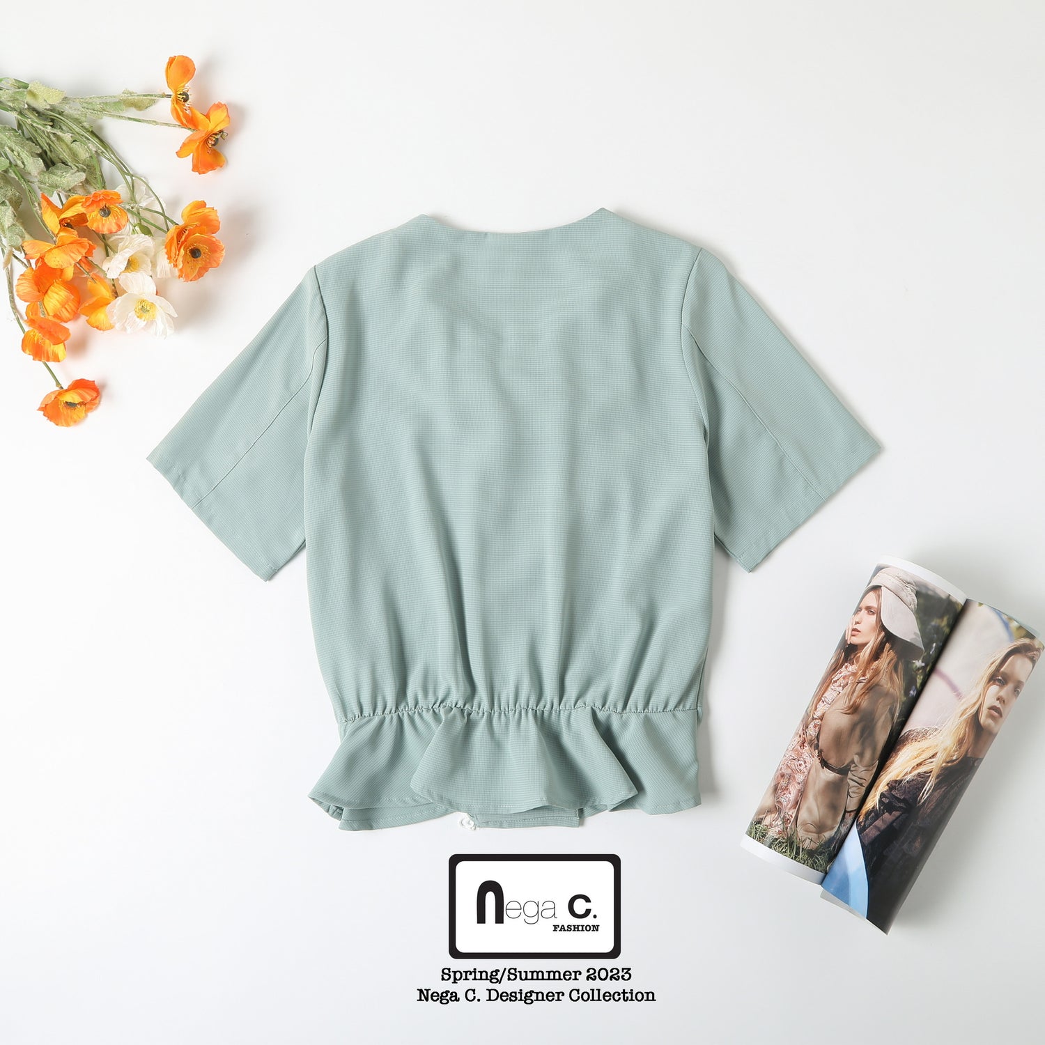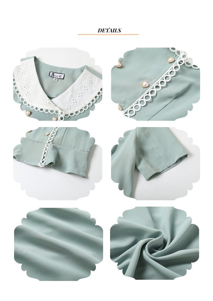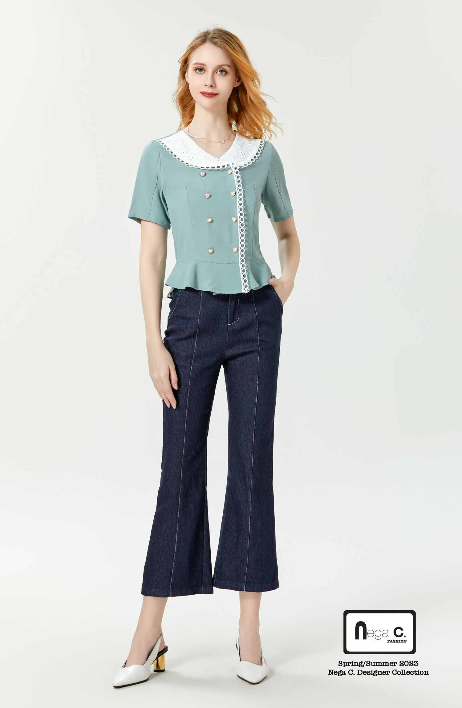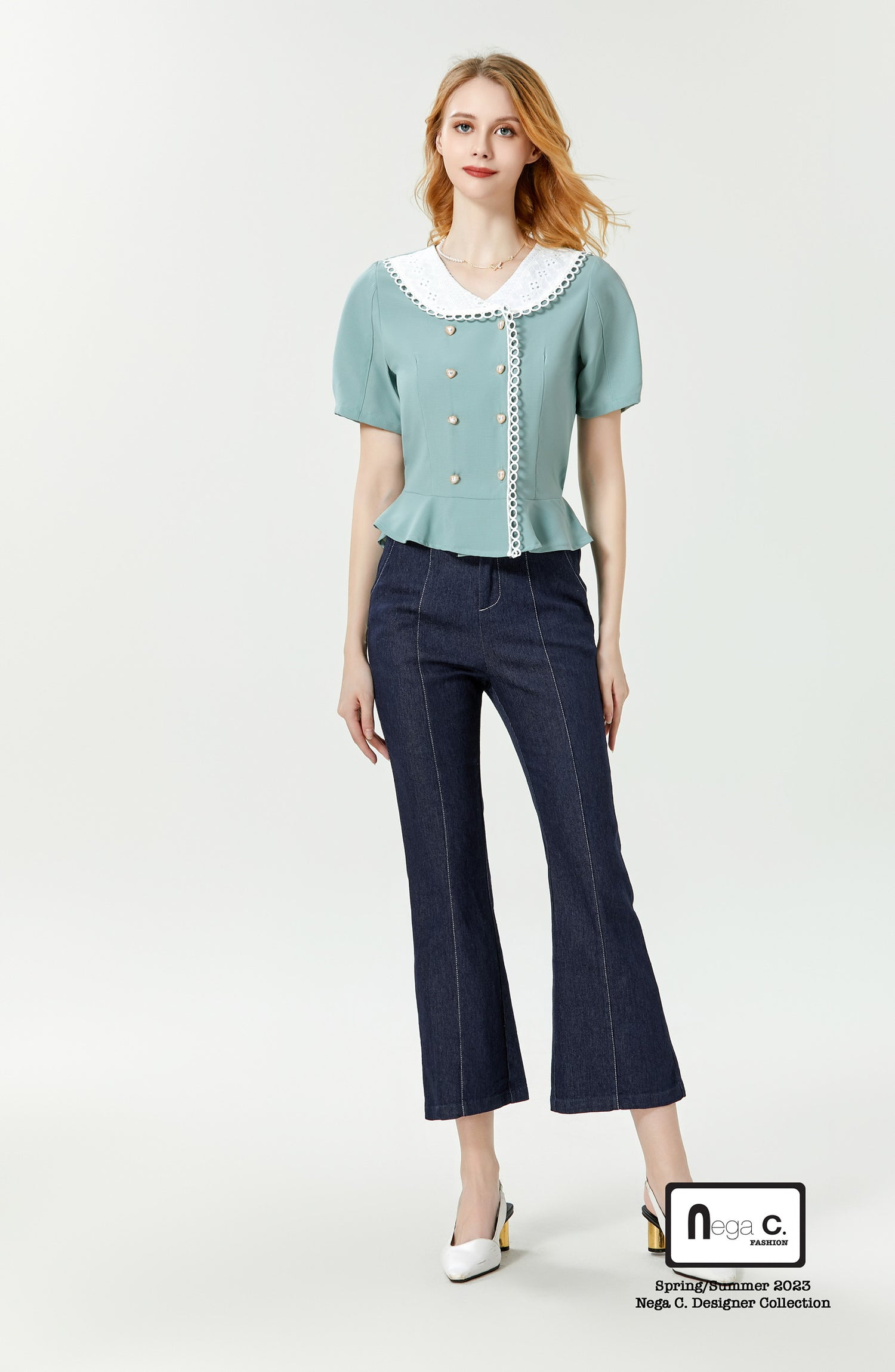 Nega C. 雙襟心心鈕扣蕾絲領襯衫| 淺綠色| 有裡襯