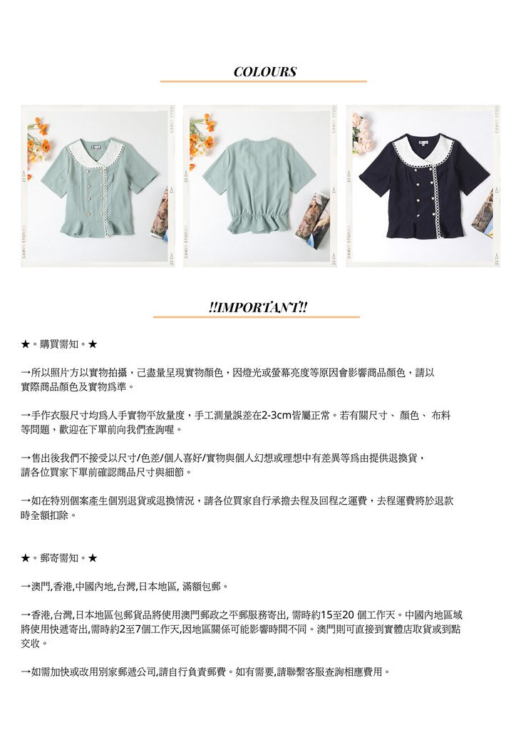 |Colour| 顏色:|Green|綠色|。|Navy|深藍色|