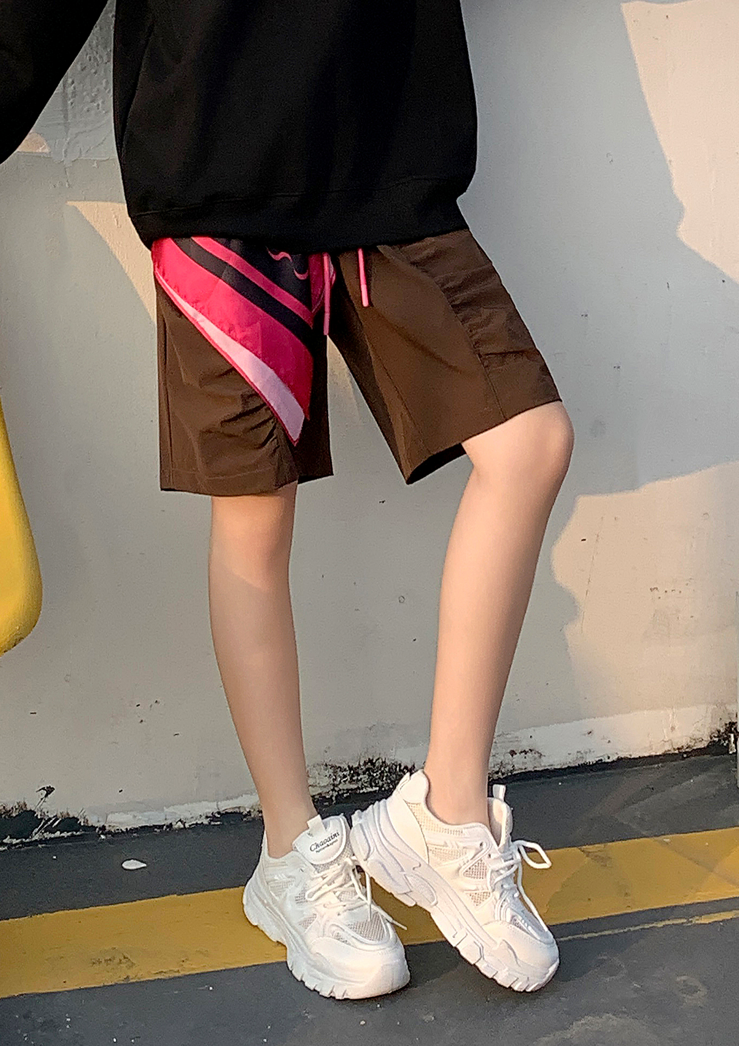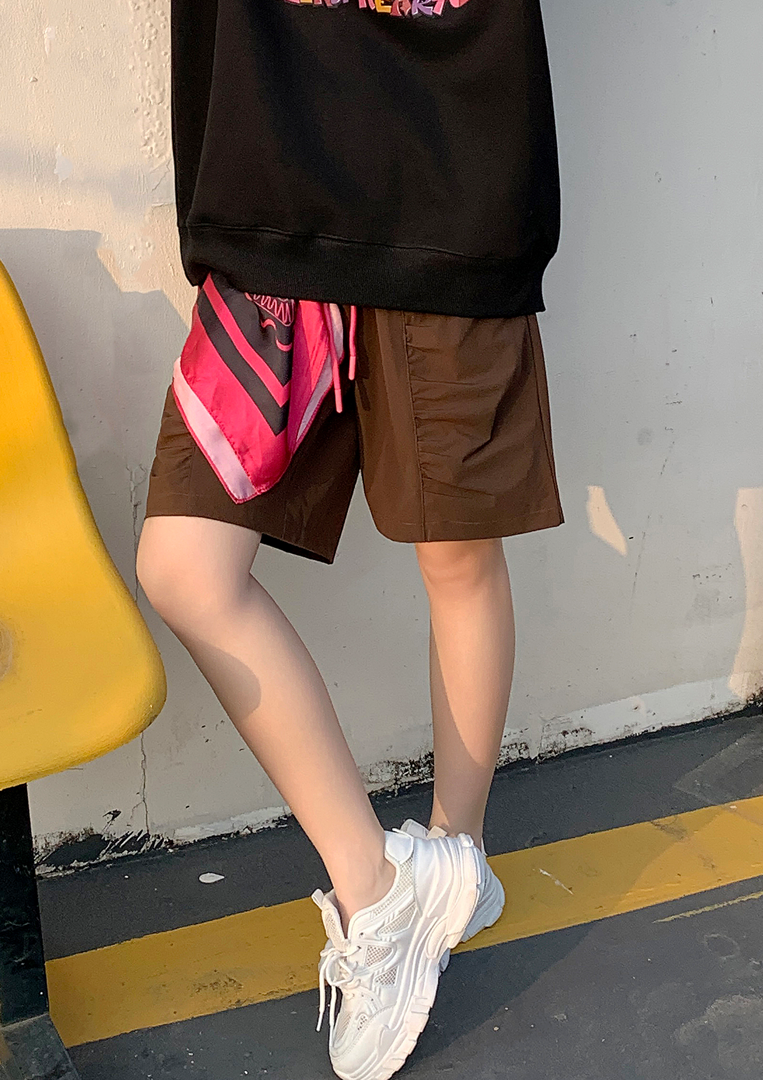 MXN Sports style shorts with ruffle darts|Brown|Elastic
