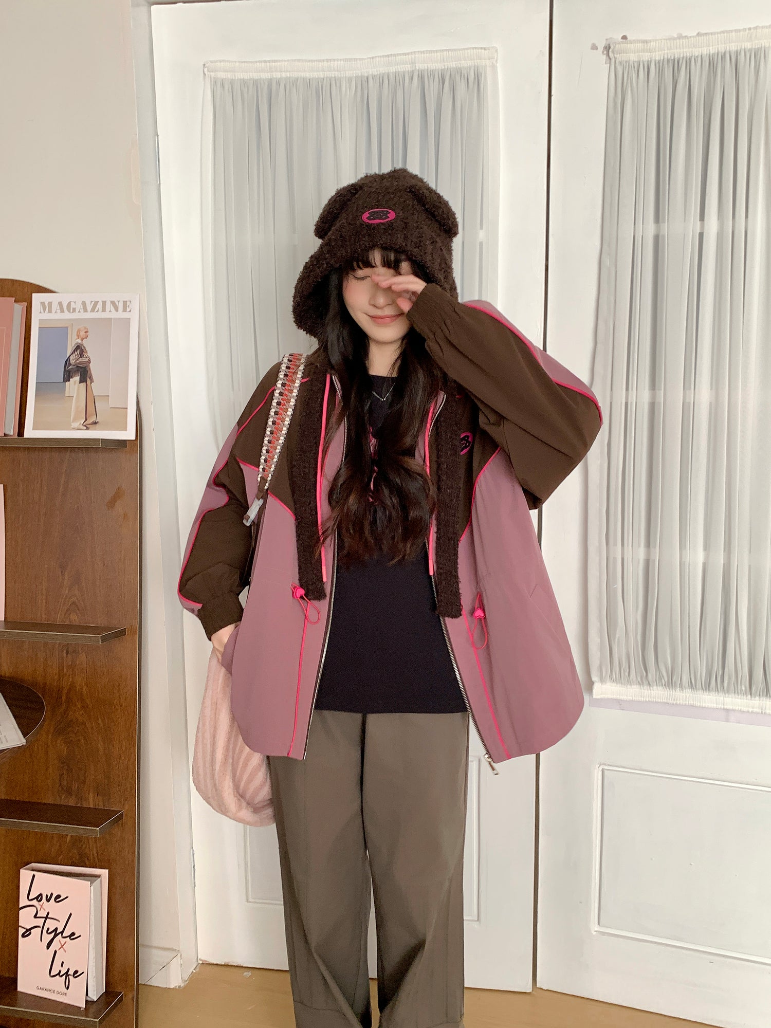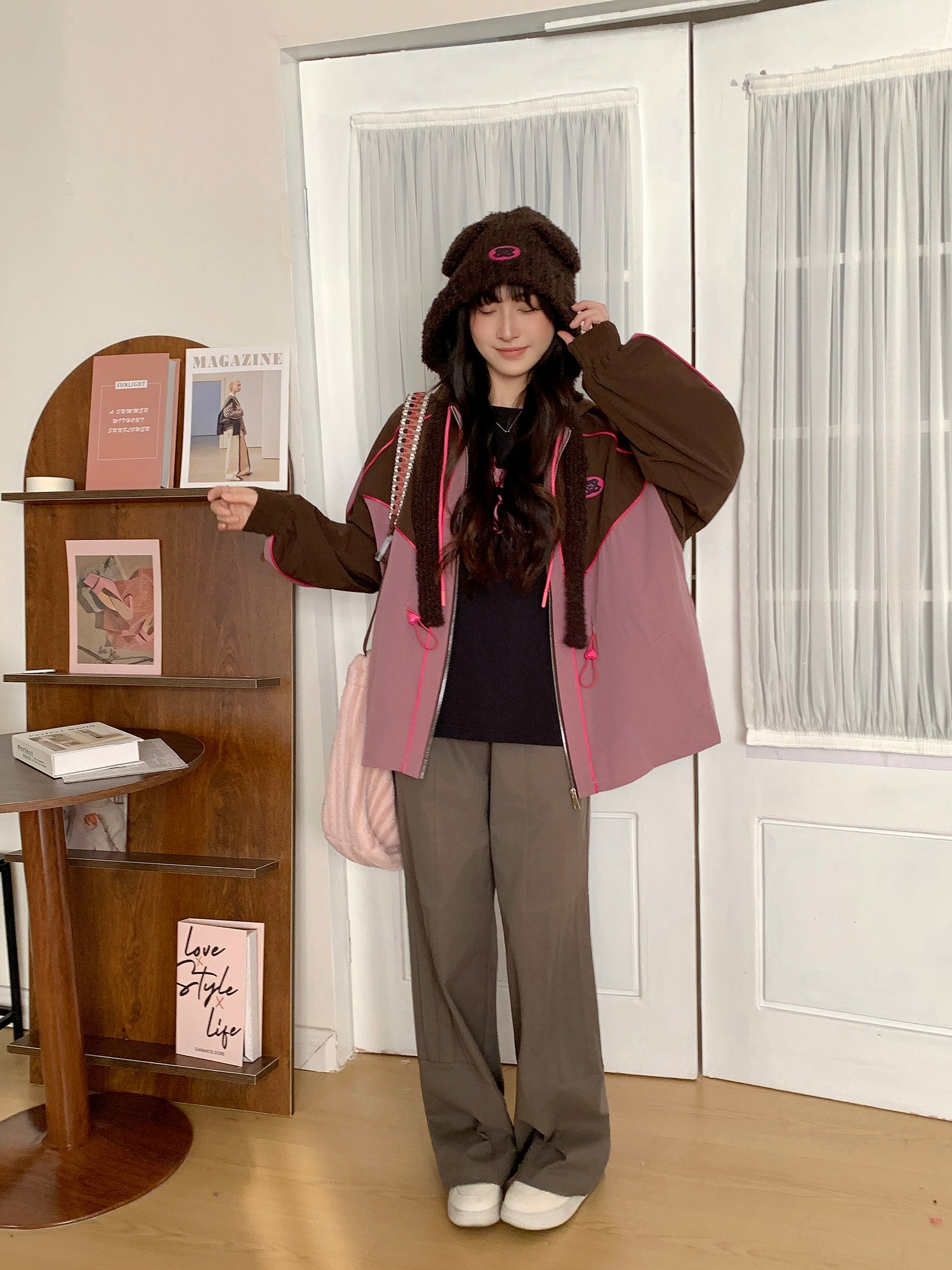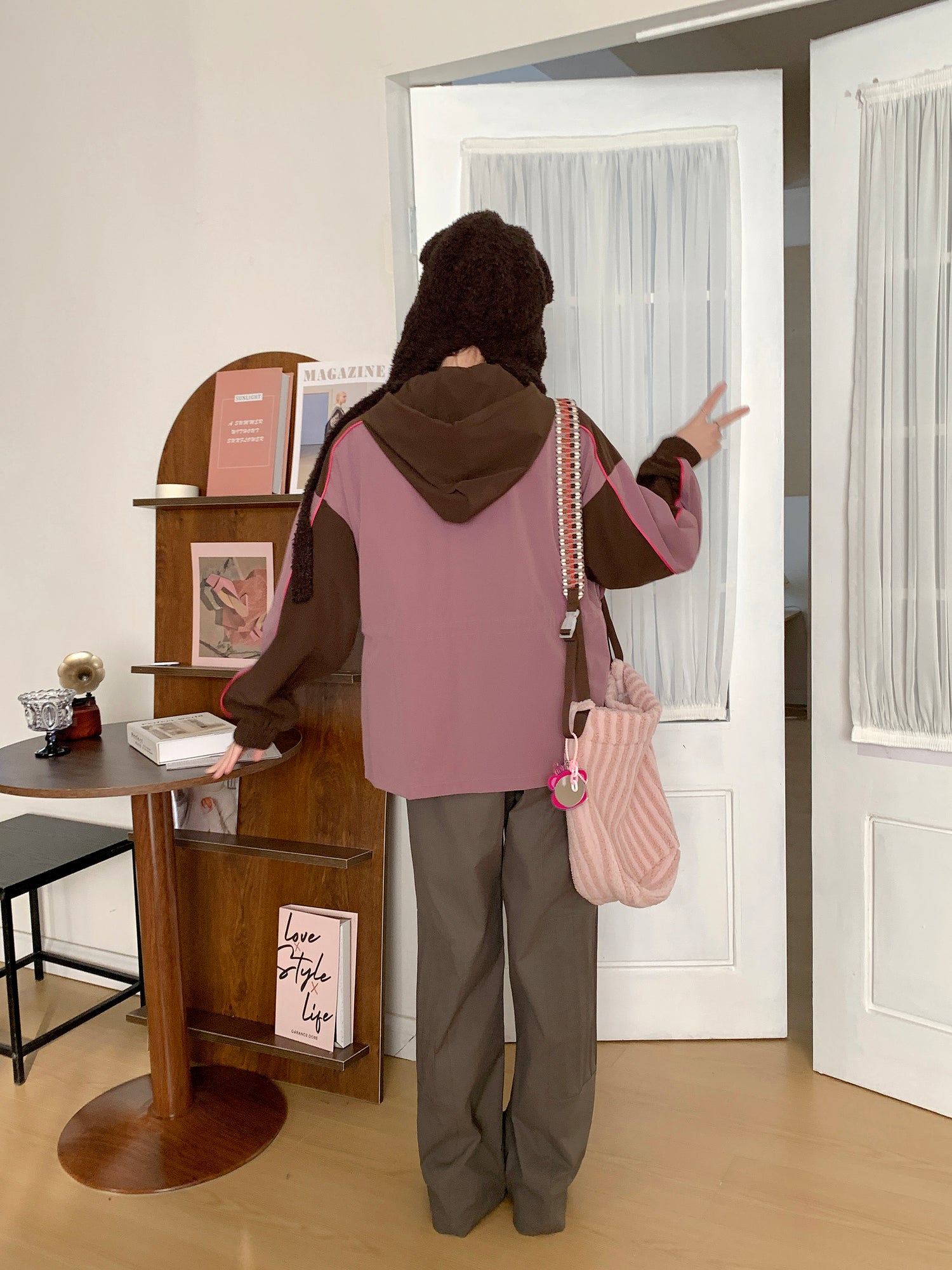 MXN Colour Block Zip Hoodie Jacket| Brown| With Lining