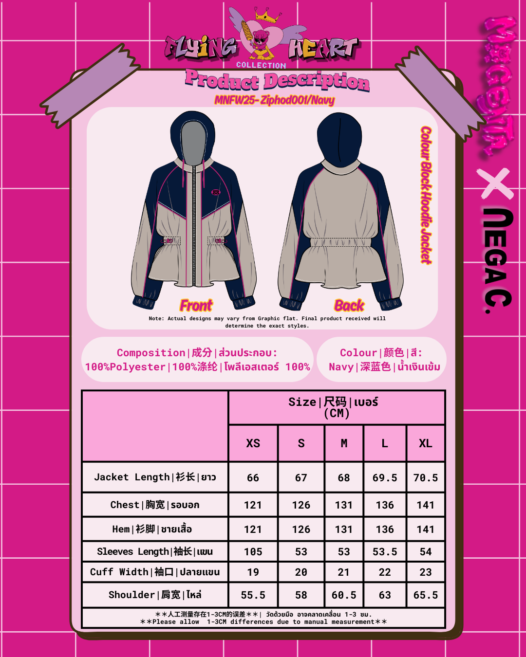 MXN Colour Block Zip Hoodie Jacket| Navy| With Lining