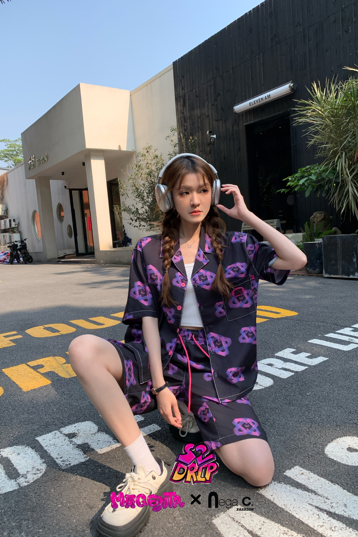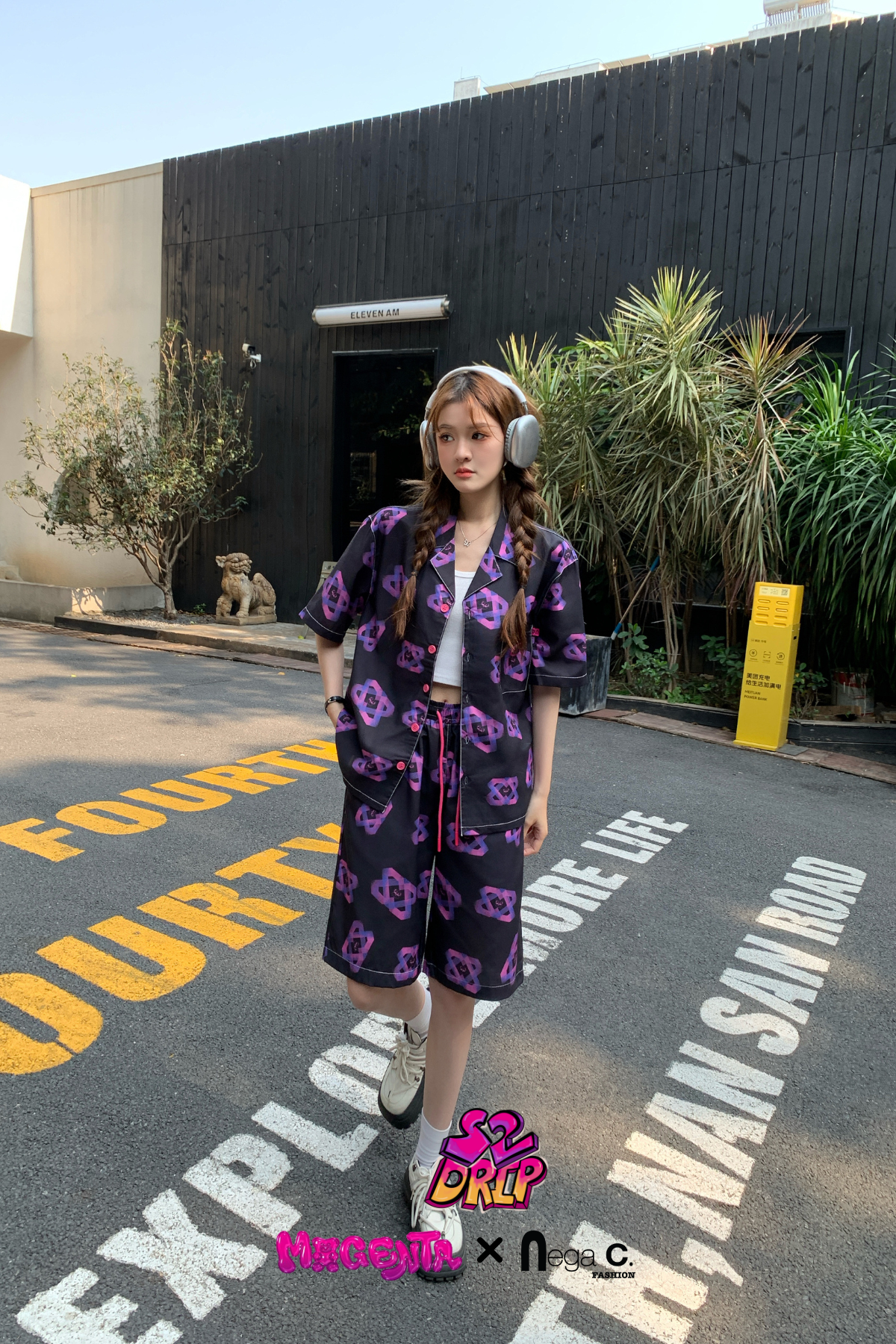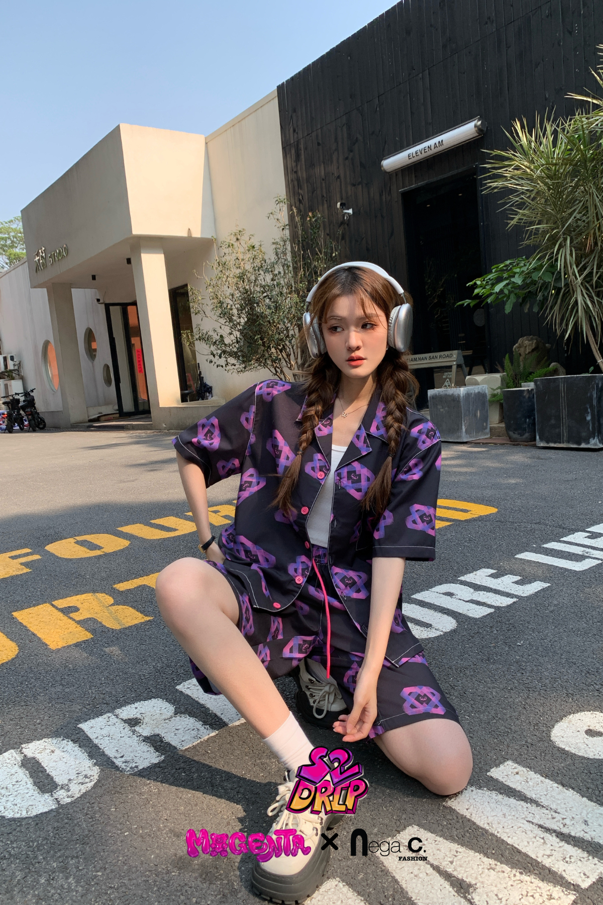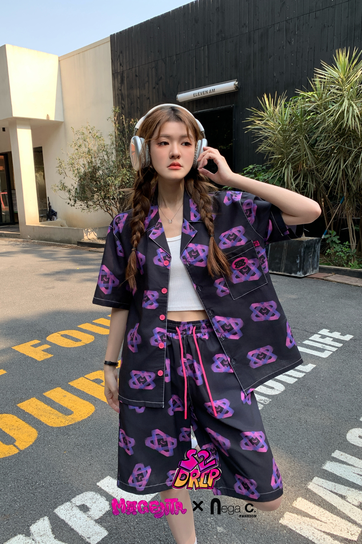 MxN S2 Magenta Bear Shirt + Shorts Set| Black|