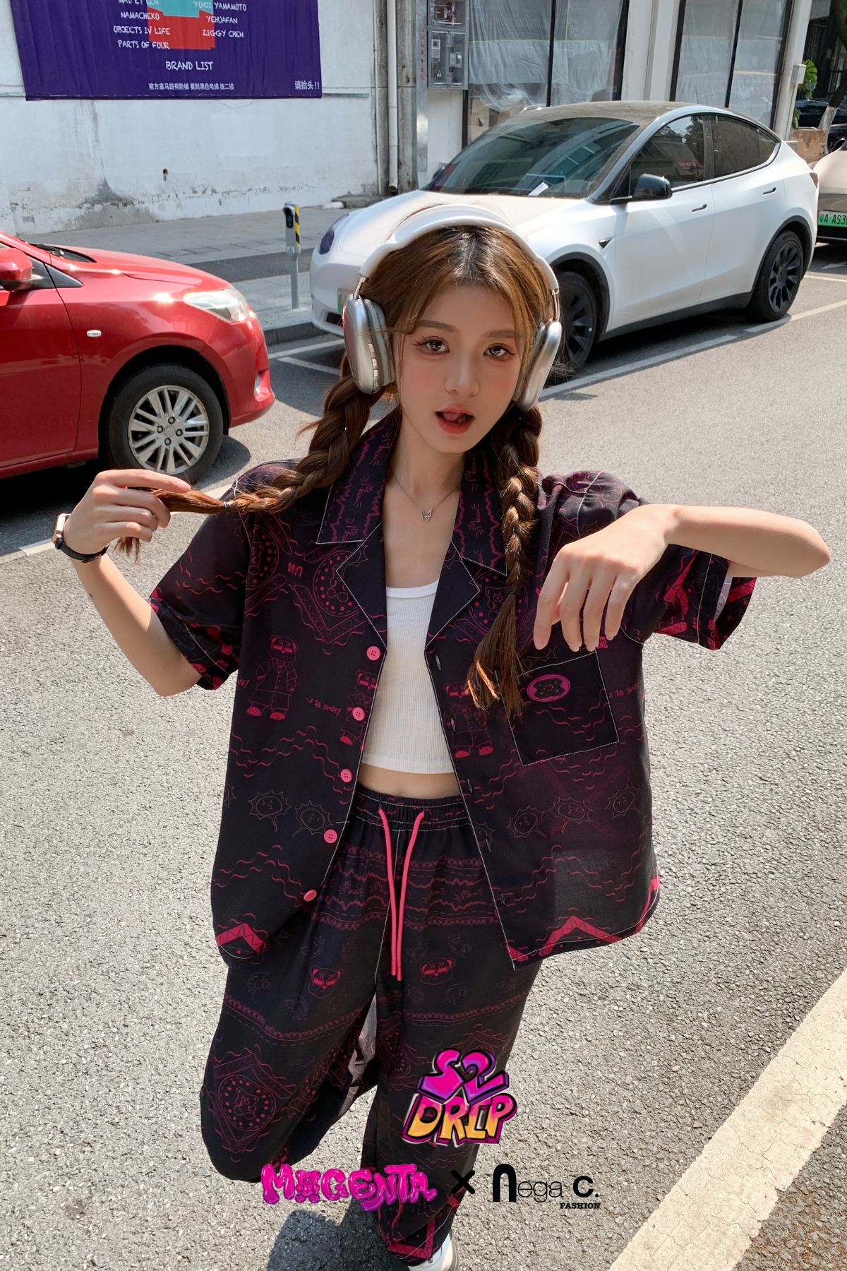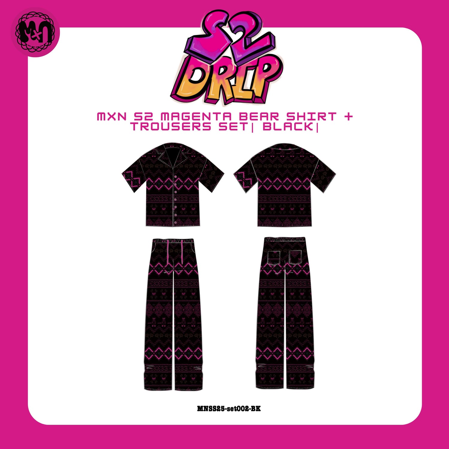 MxN S2 Magenta Bear Shirt + Trousers Set| Black|