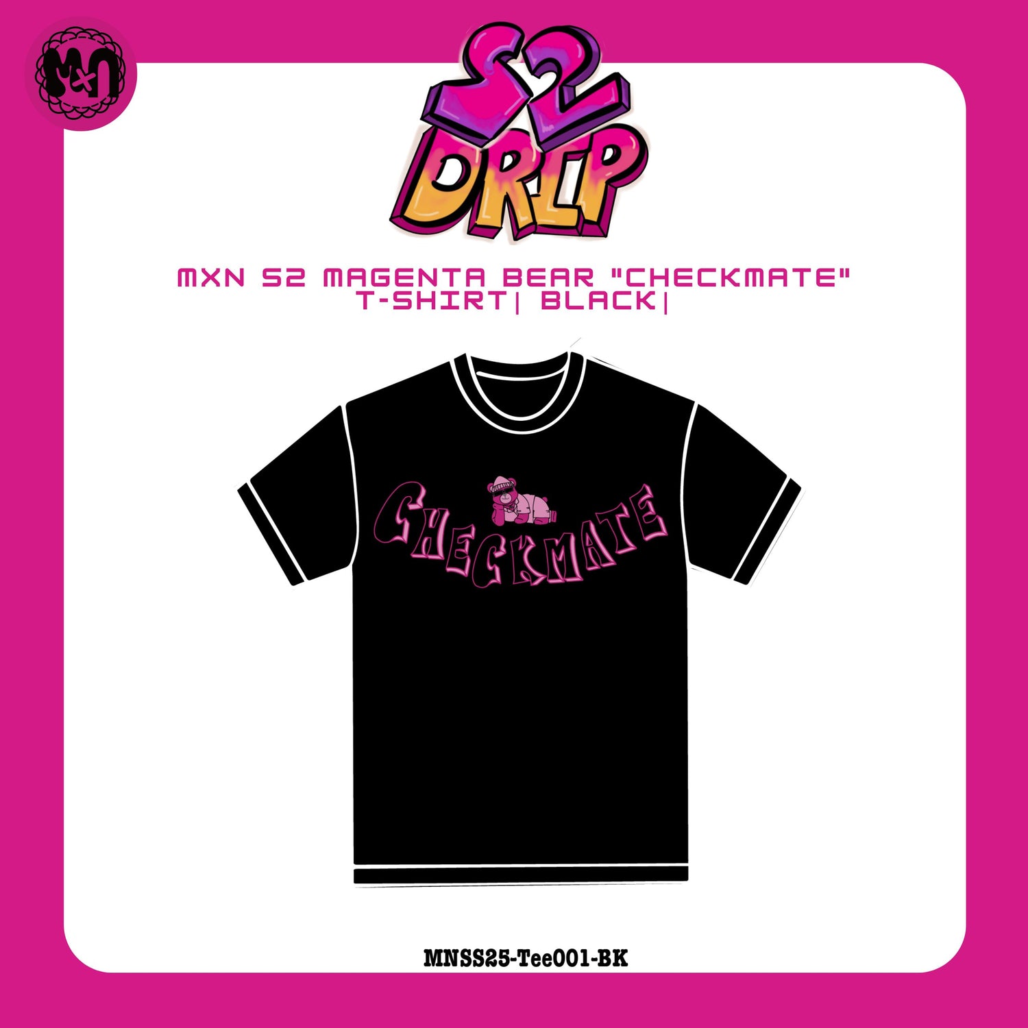 MxN S2 Magenta Bear "Checkmate" T-shirt| Black|