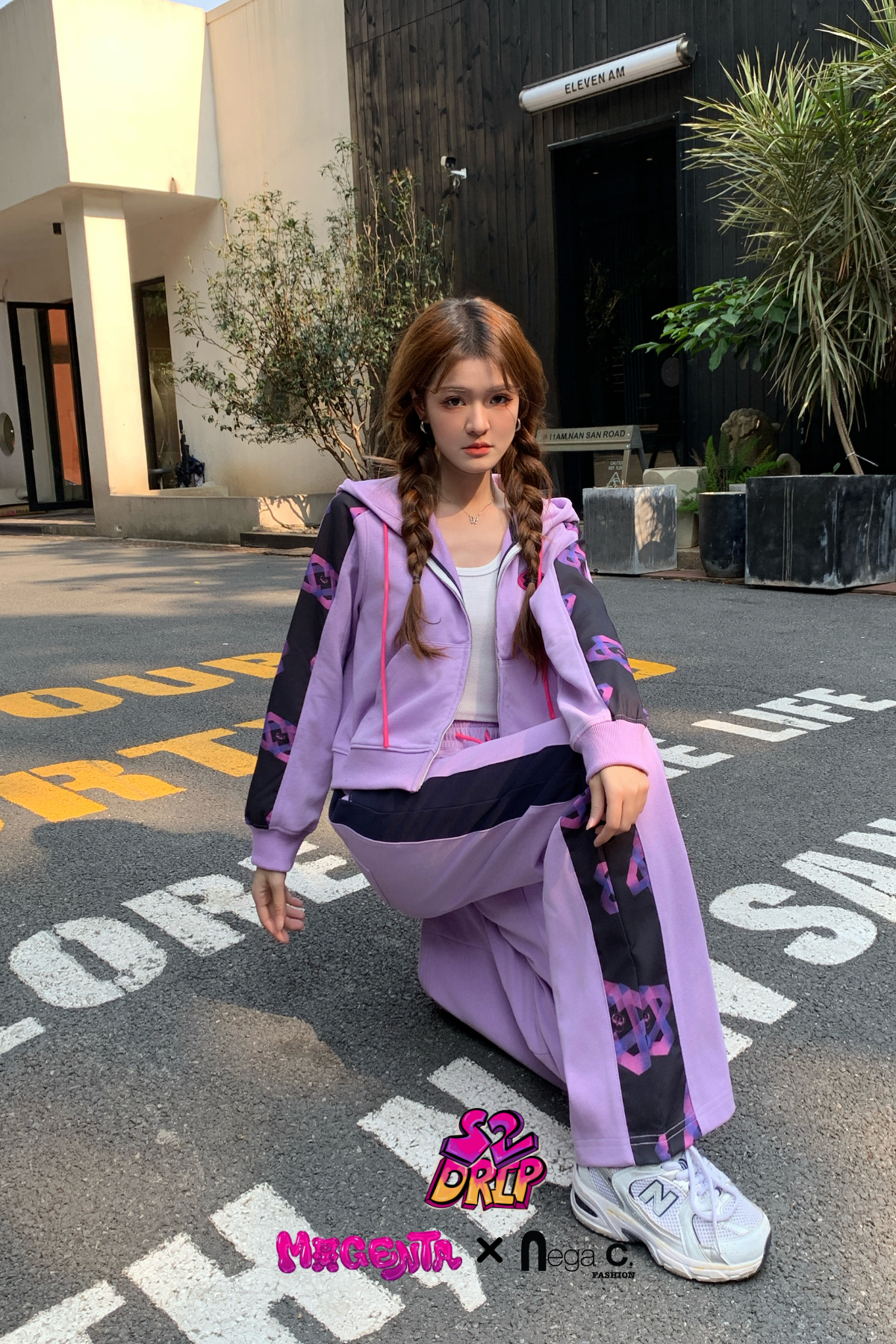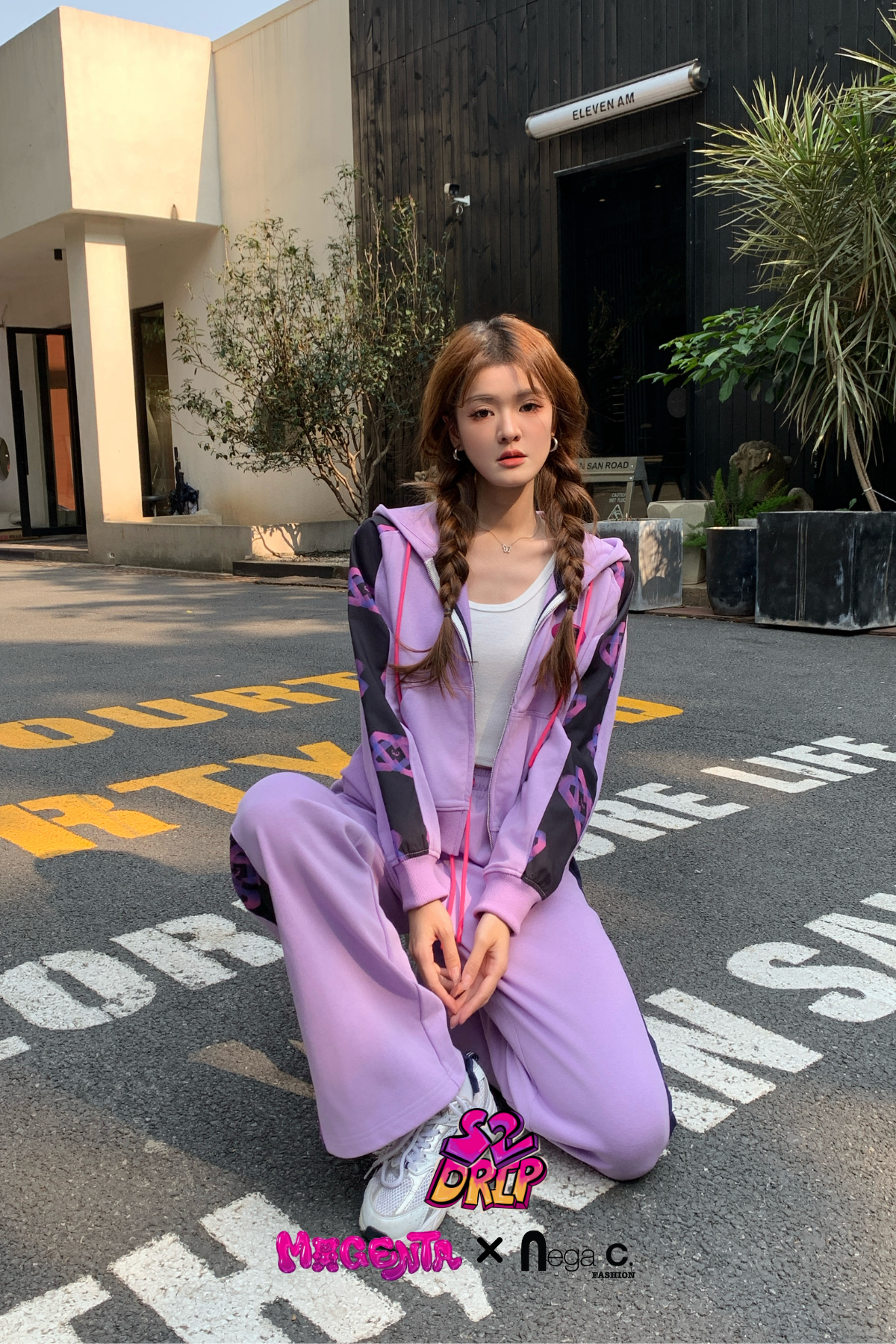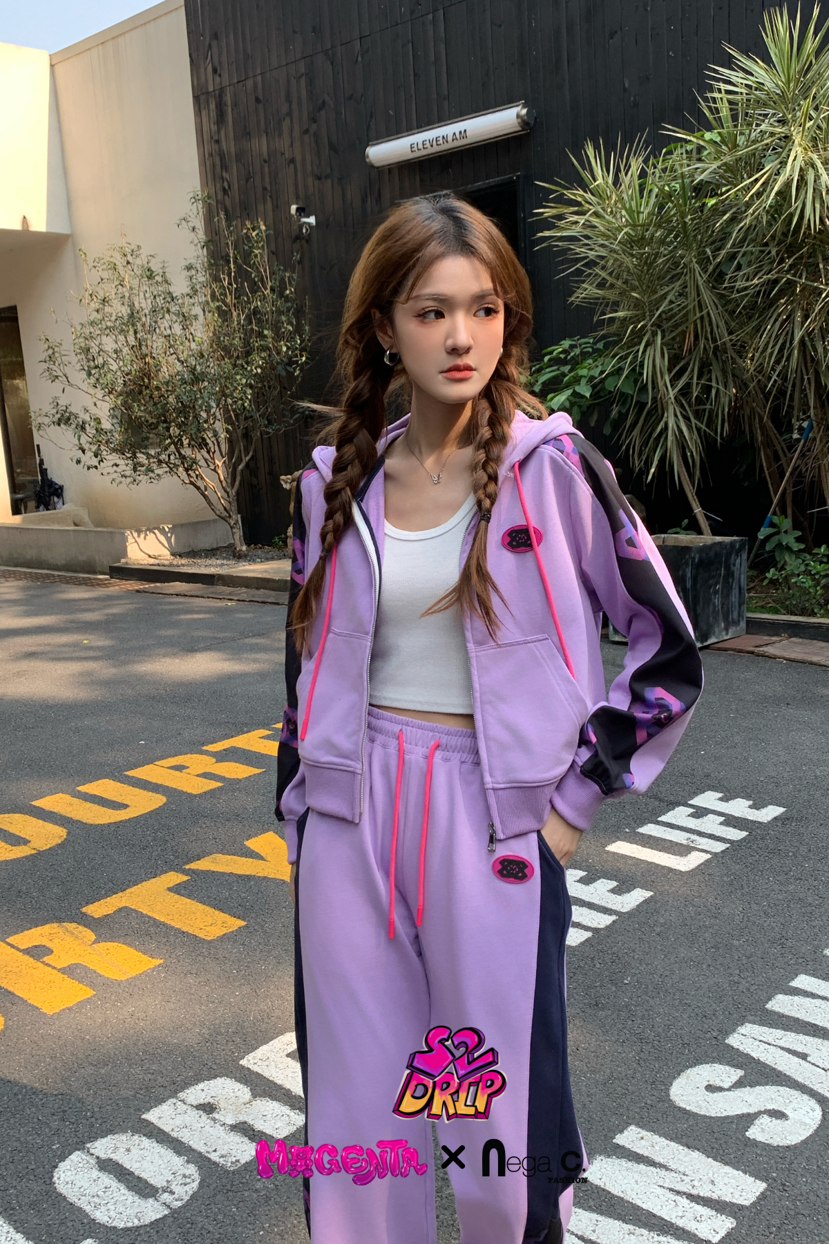 MXN fabric stitching fitted zipped hoodie|Purple|
