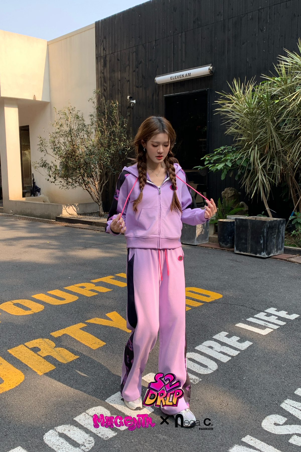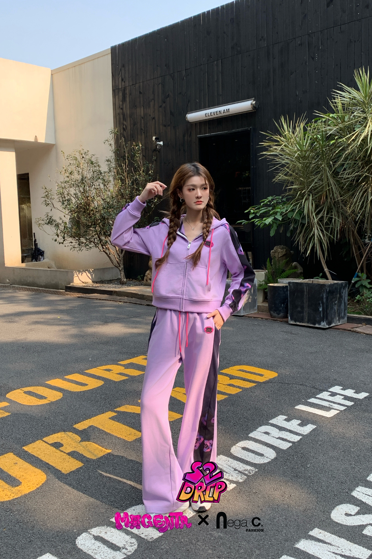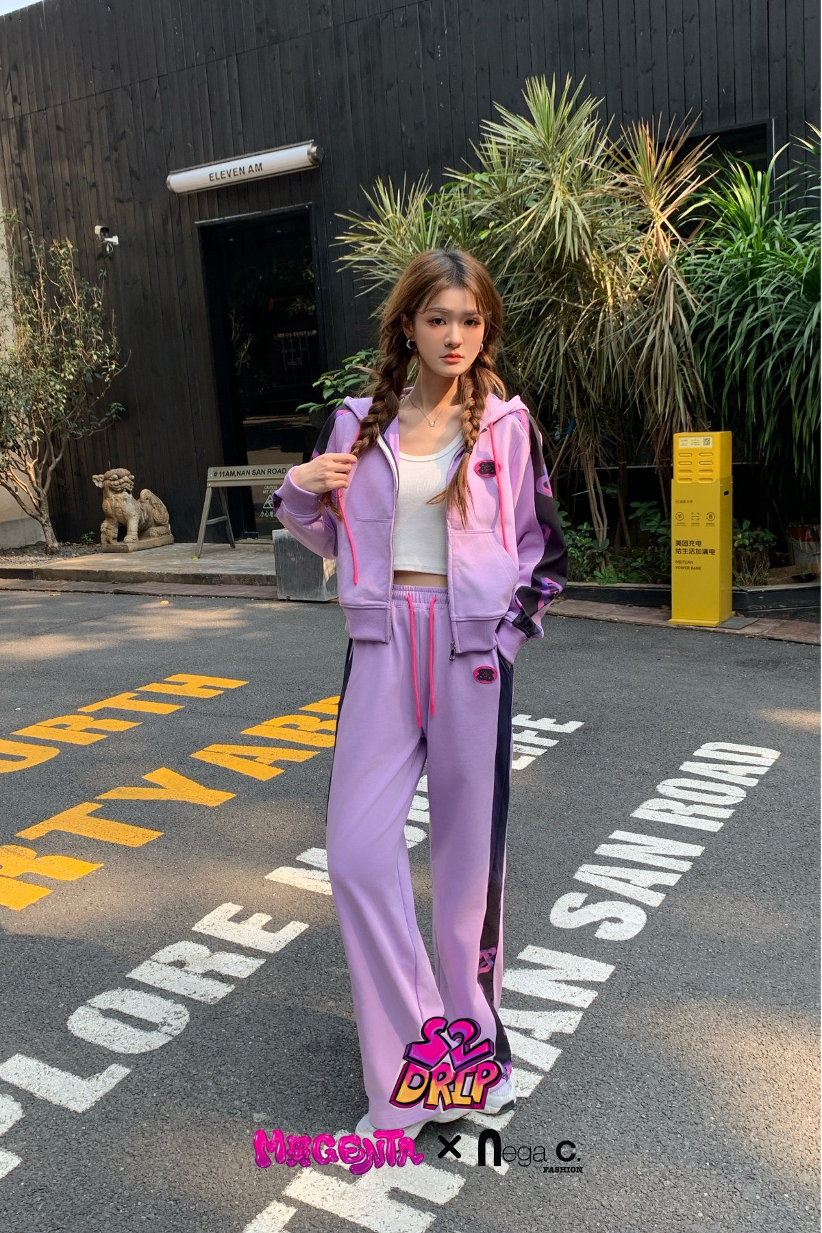 MXN fabric stitching fitted zipped hoodie|Purple|