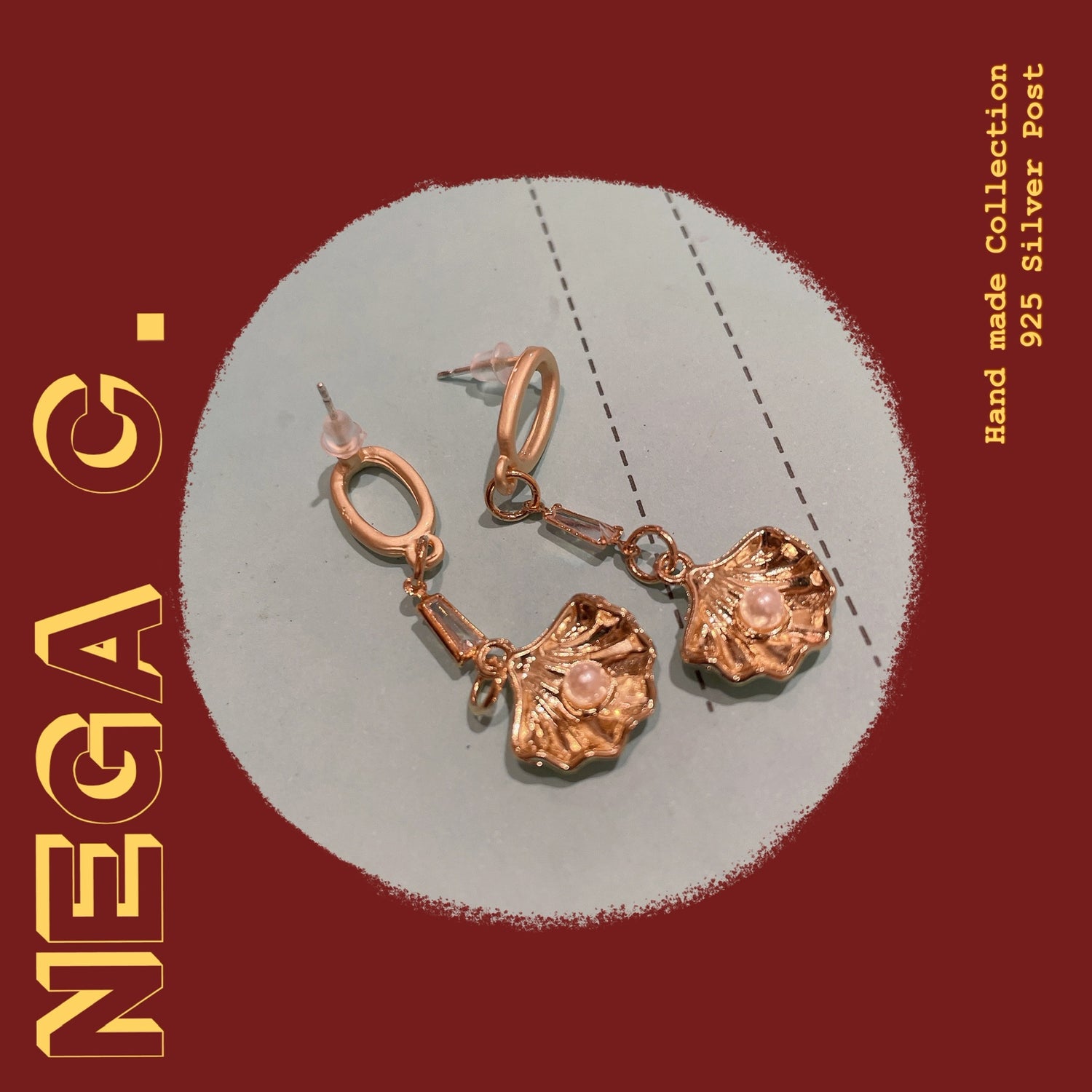 NC ACC ต่างหูรูปพัดมุกสไตล์โลหะวินเทจ