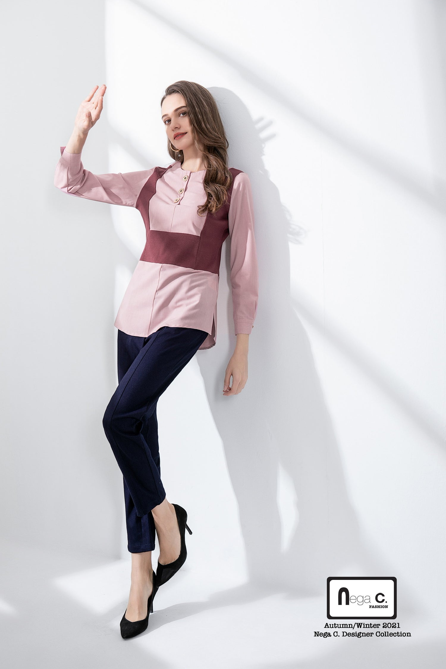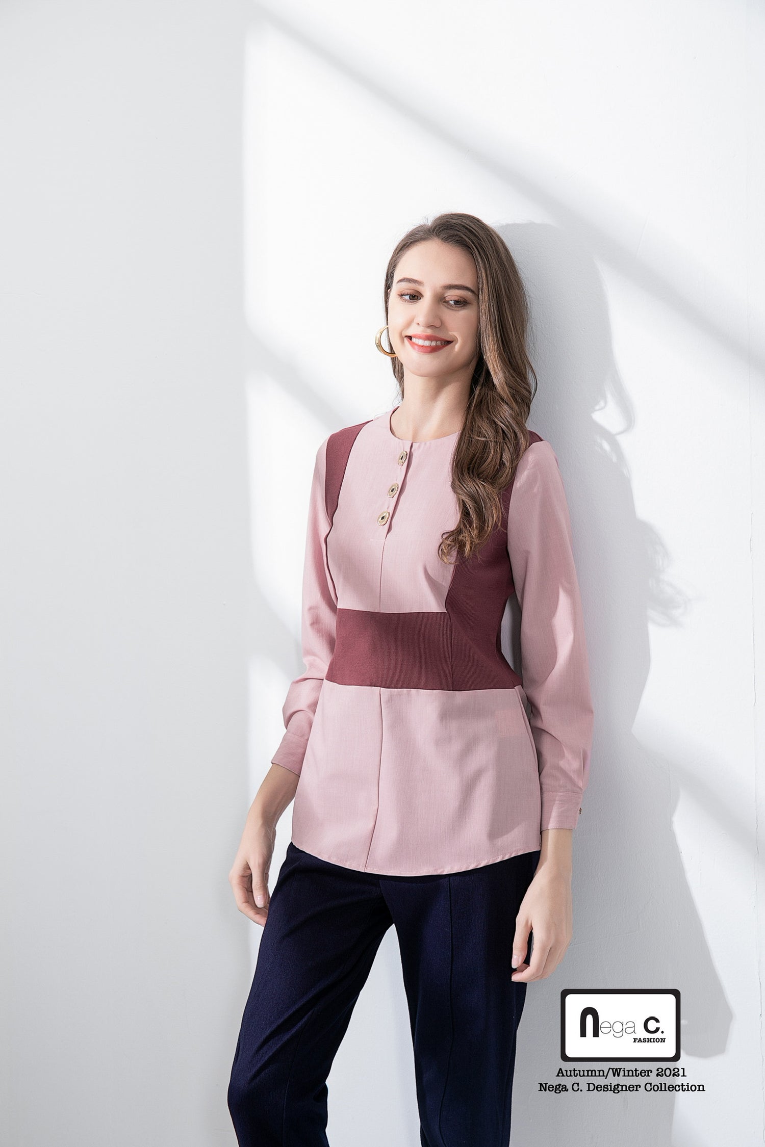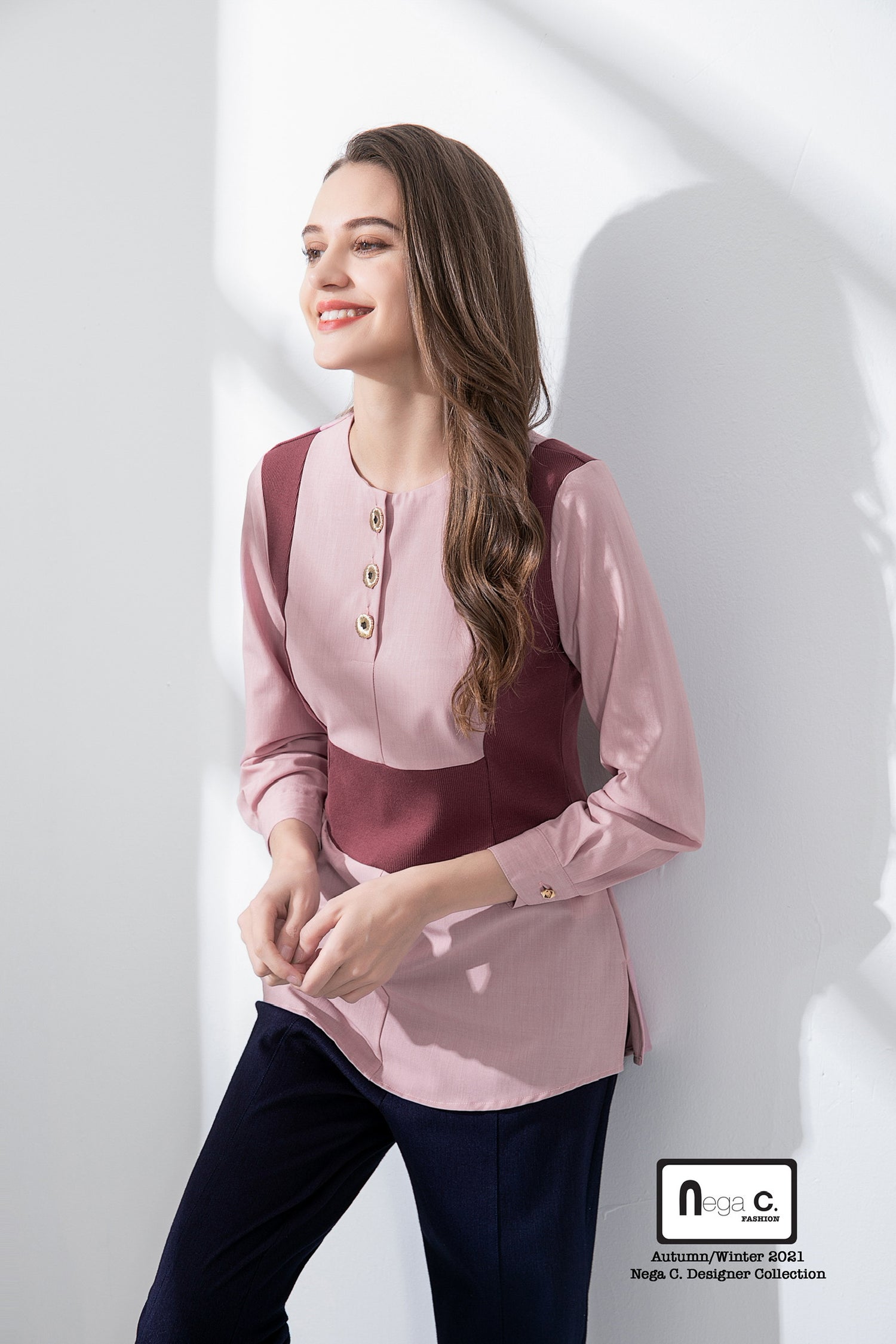Nega C. Spliced คอกลมยาวปานกลาง | Burgundy | ยืดเล็กน้อย | ไม่มีซับใน