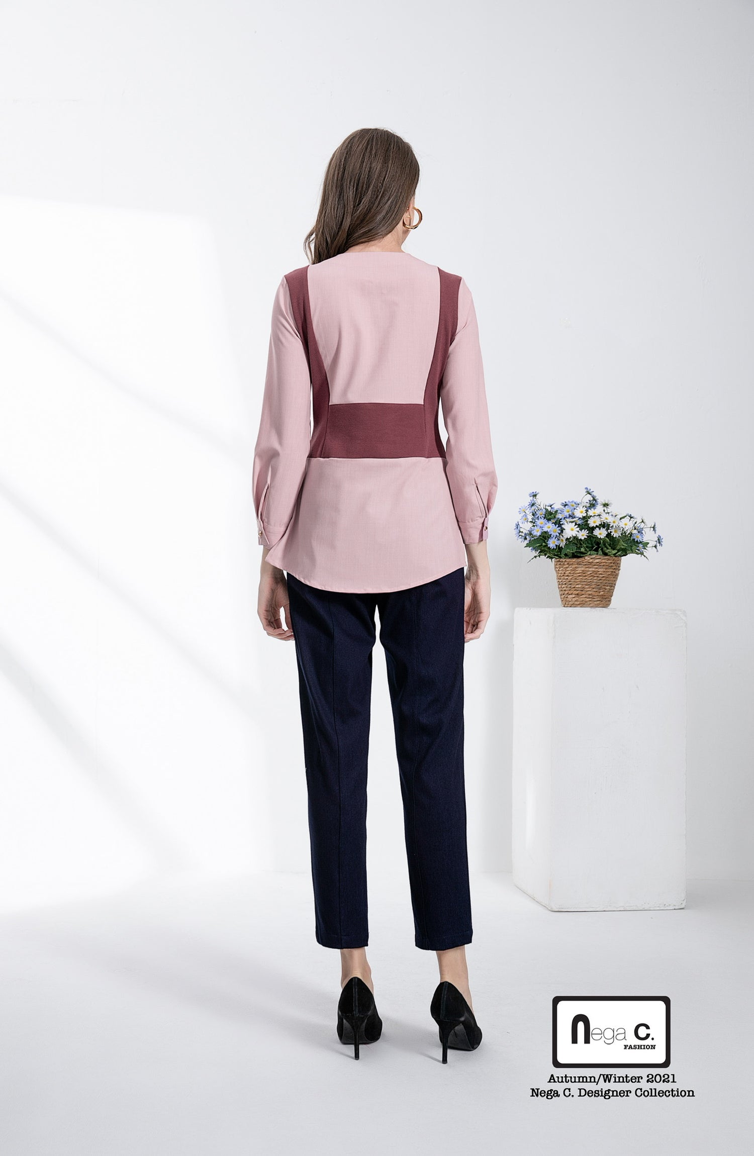 การออกแบบมีลักษณะเหมือนเสื้อเชิ้ตและเสื้อกั๊กยาวสองชิ้นปลอมส่วนเอวยางยืดแบบถักมีผลทำให้เอวเล็กลงเล็กน้อยเป็นเสื้อที่เพรียวบางมาก ~~