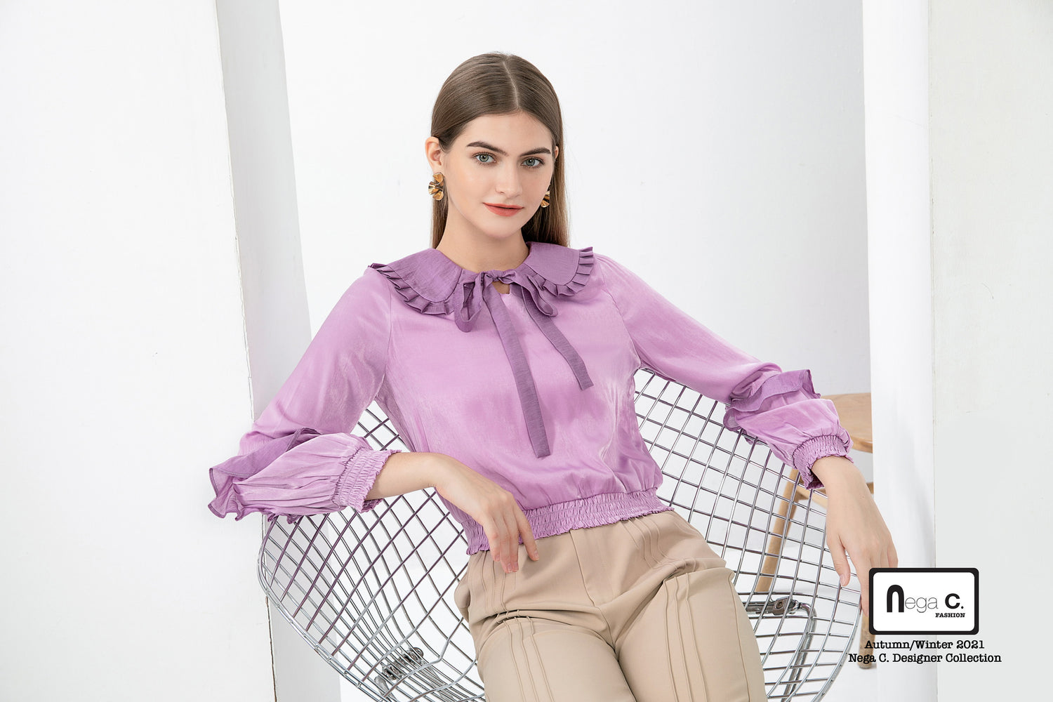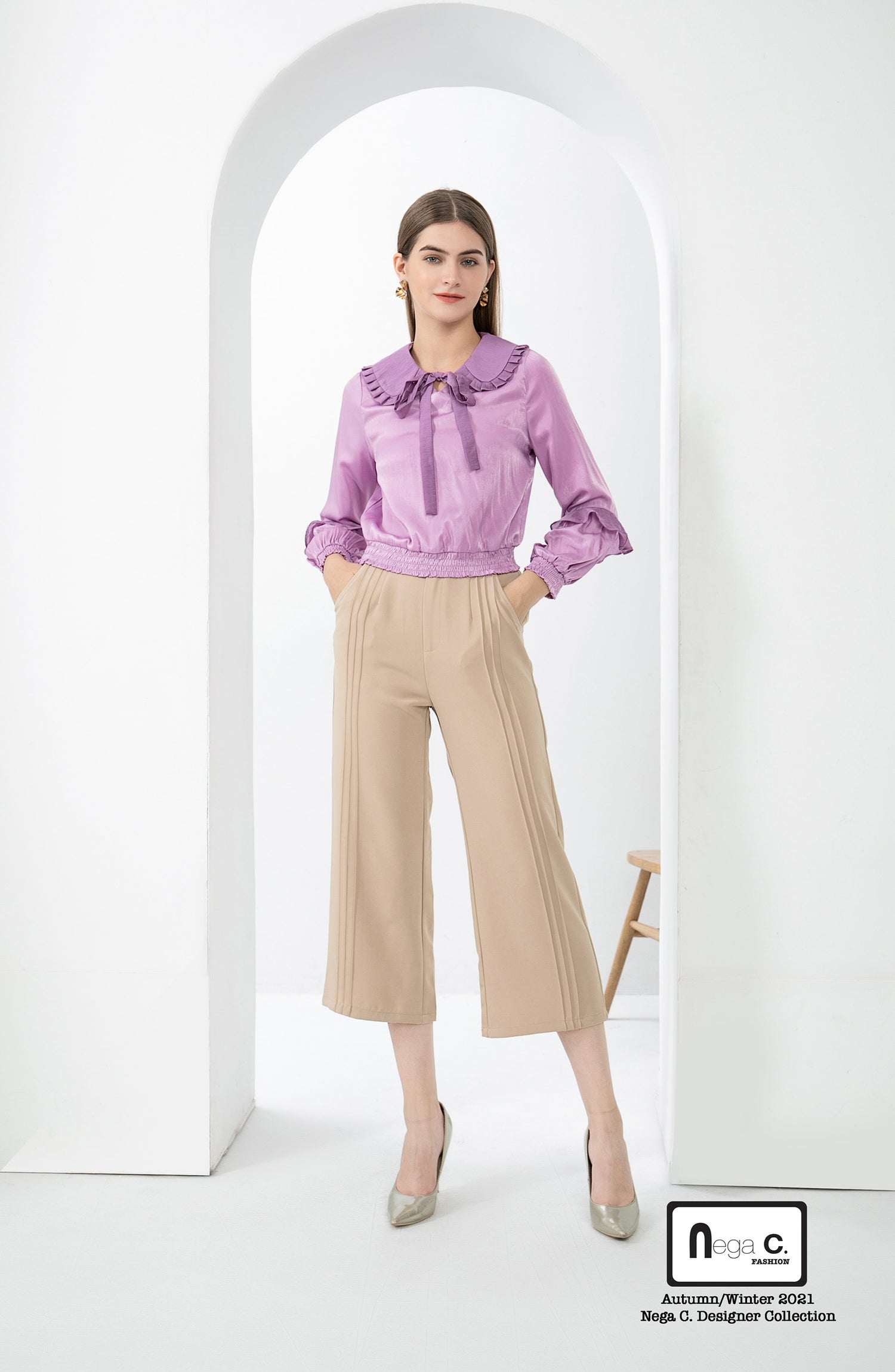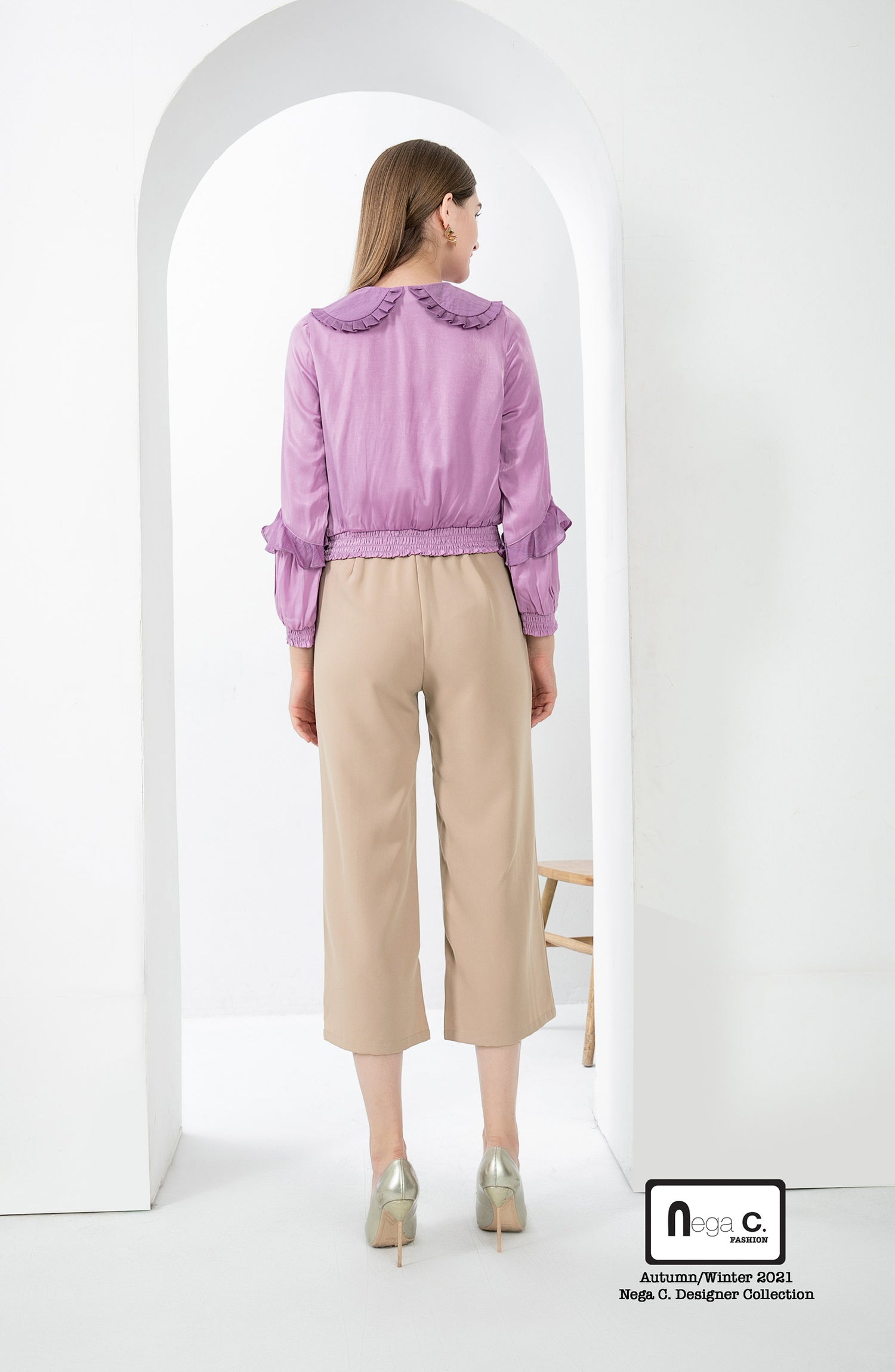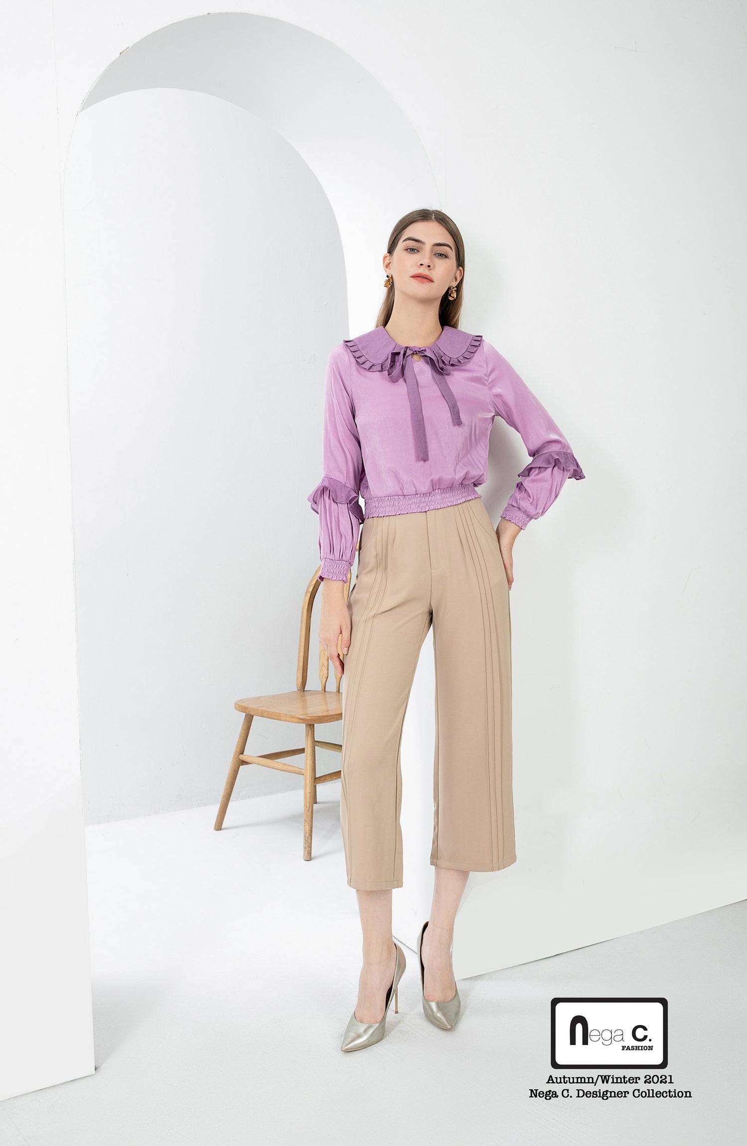 Nega C. เสื้อคอกลมพับจีบ |สีชมพู|