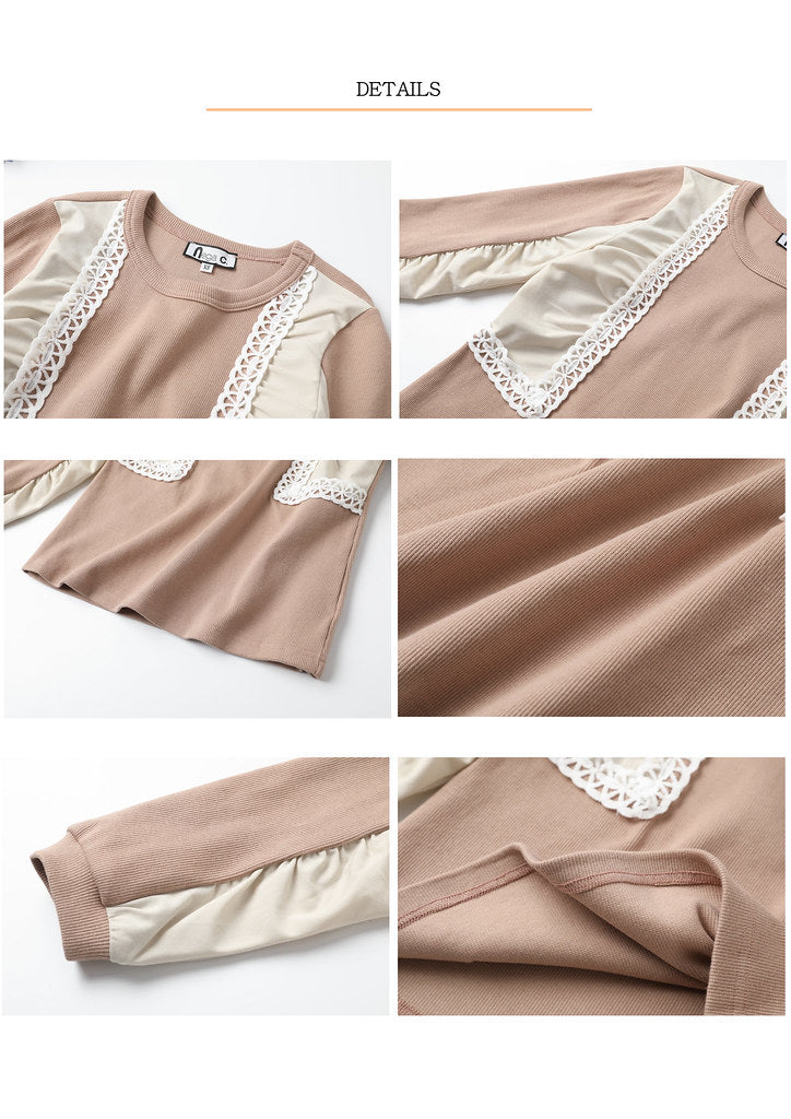 +Nega C. เสื้อแขนยาวผ้าลูกไม้เย็บปะติดปะต่อคอกลม|สีชมพู+