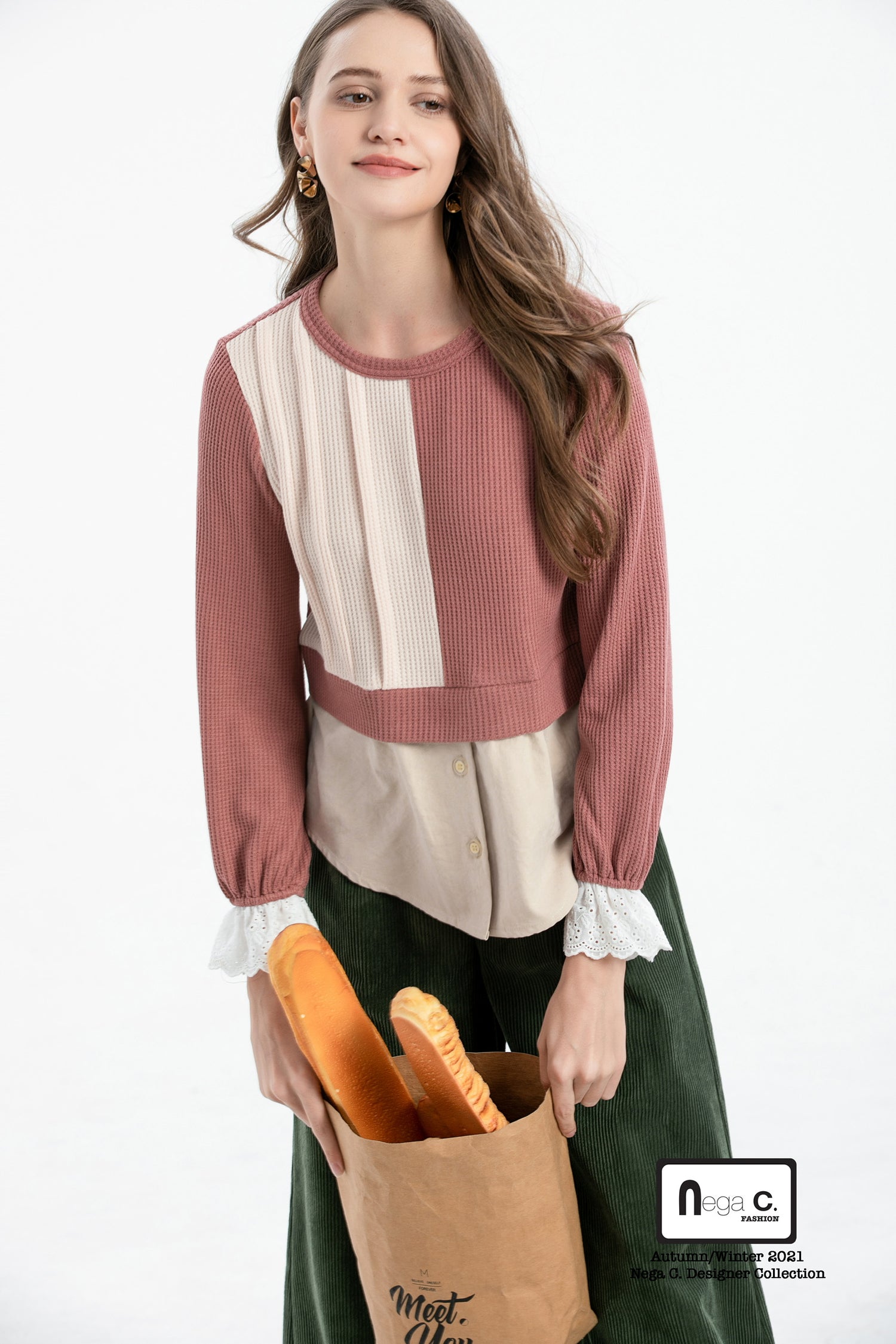 + Nega C. เสื้อถักไหมพรม | สีชมพู | ยืดเล็กน้อย | ไม่มีซับใน+