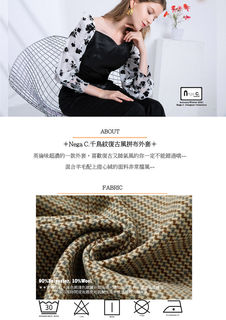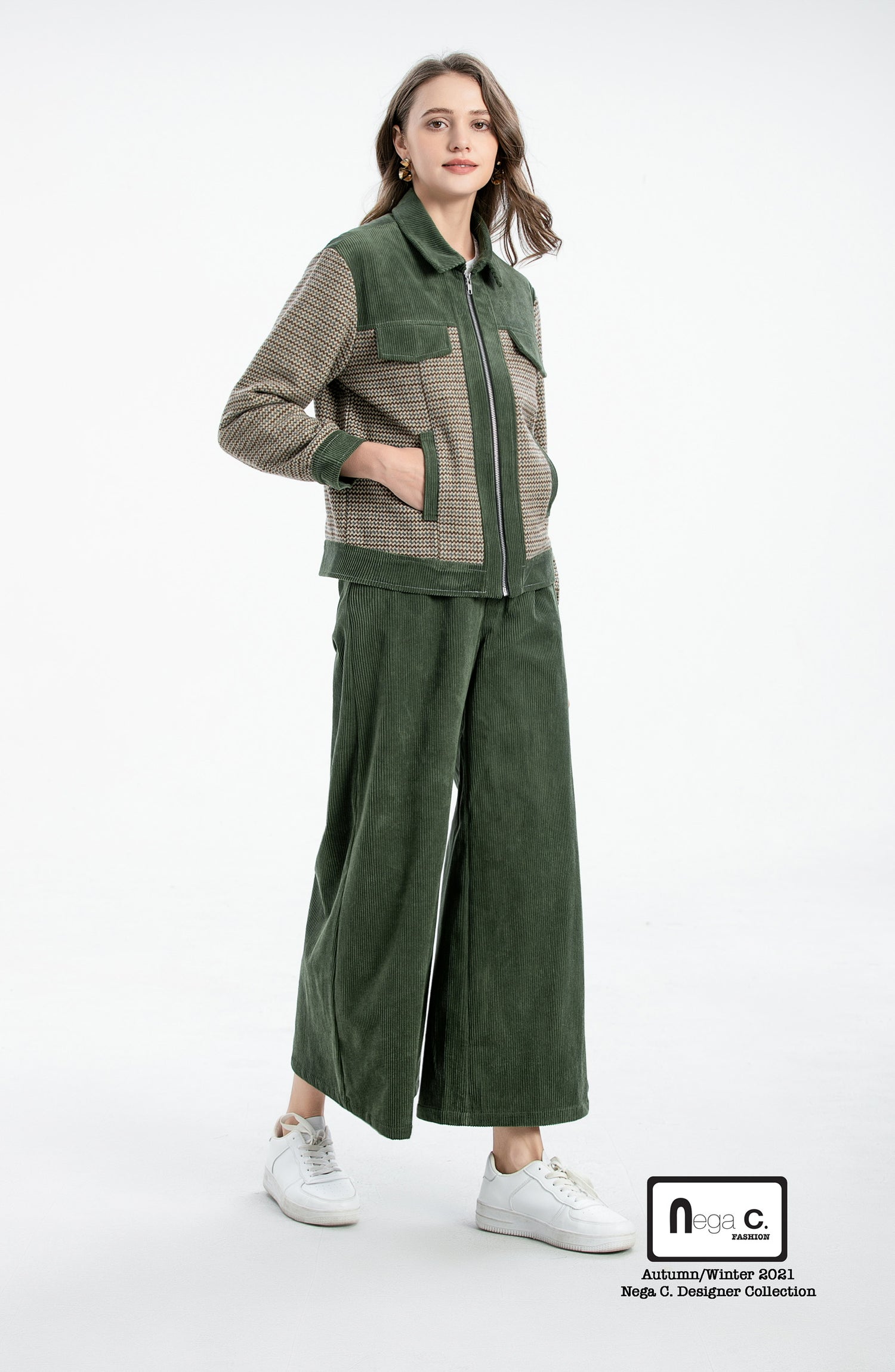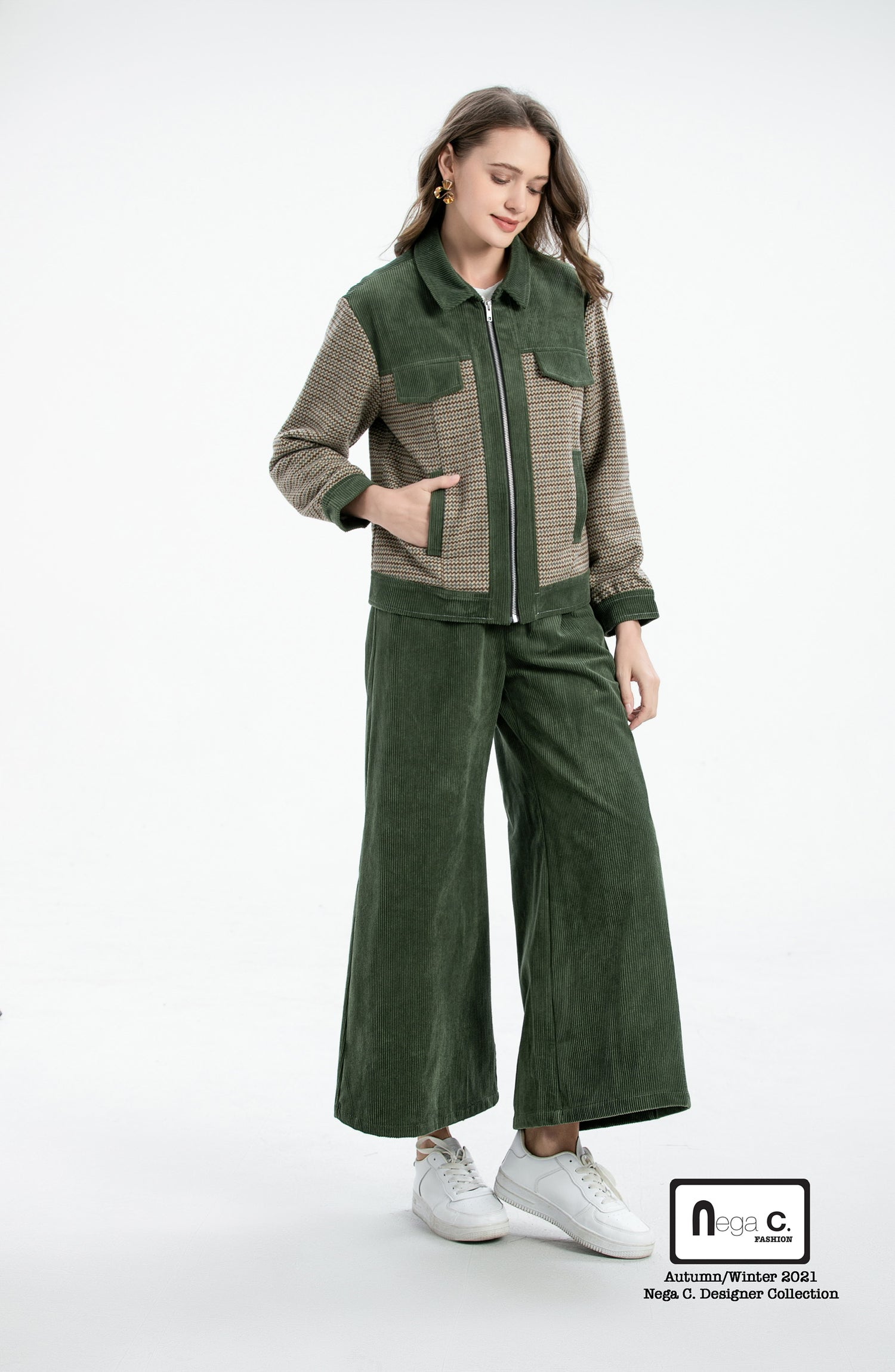 + Nega C. Houndstooth เสื้อแจ็คเก็ตงานปะสไตล์วินเทจ | สีเขียว | มีซับใน +