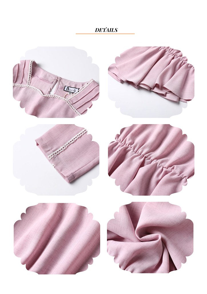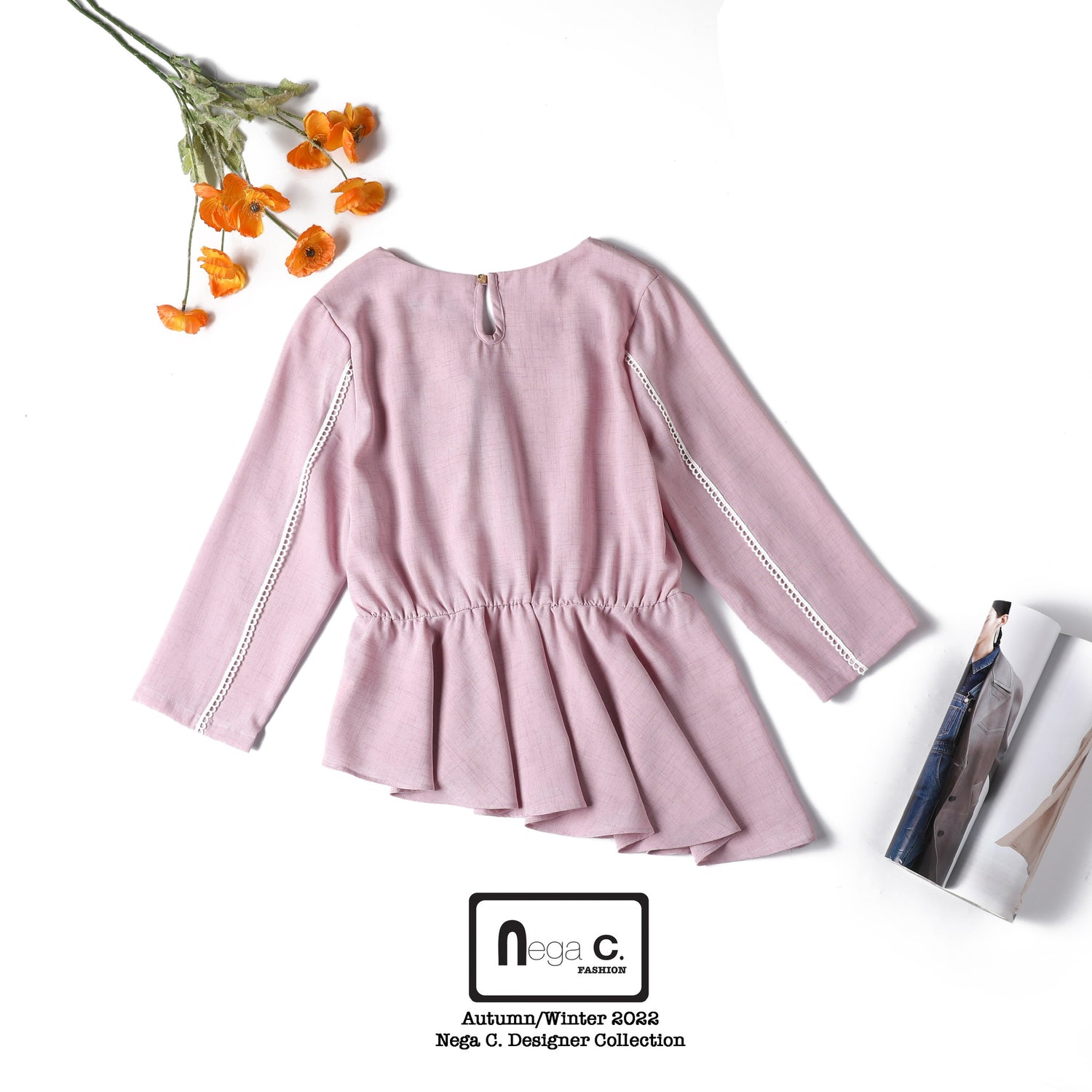 Nega C. เสื้อทูนิคระบายไม่สมมาตรคอ Sweetheart | สีชมพู | ไม่ยืด | ไม่มีซับใน