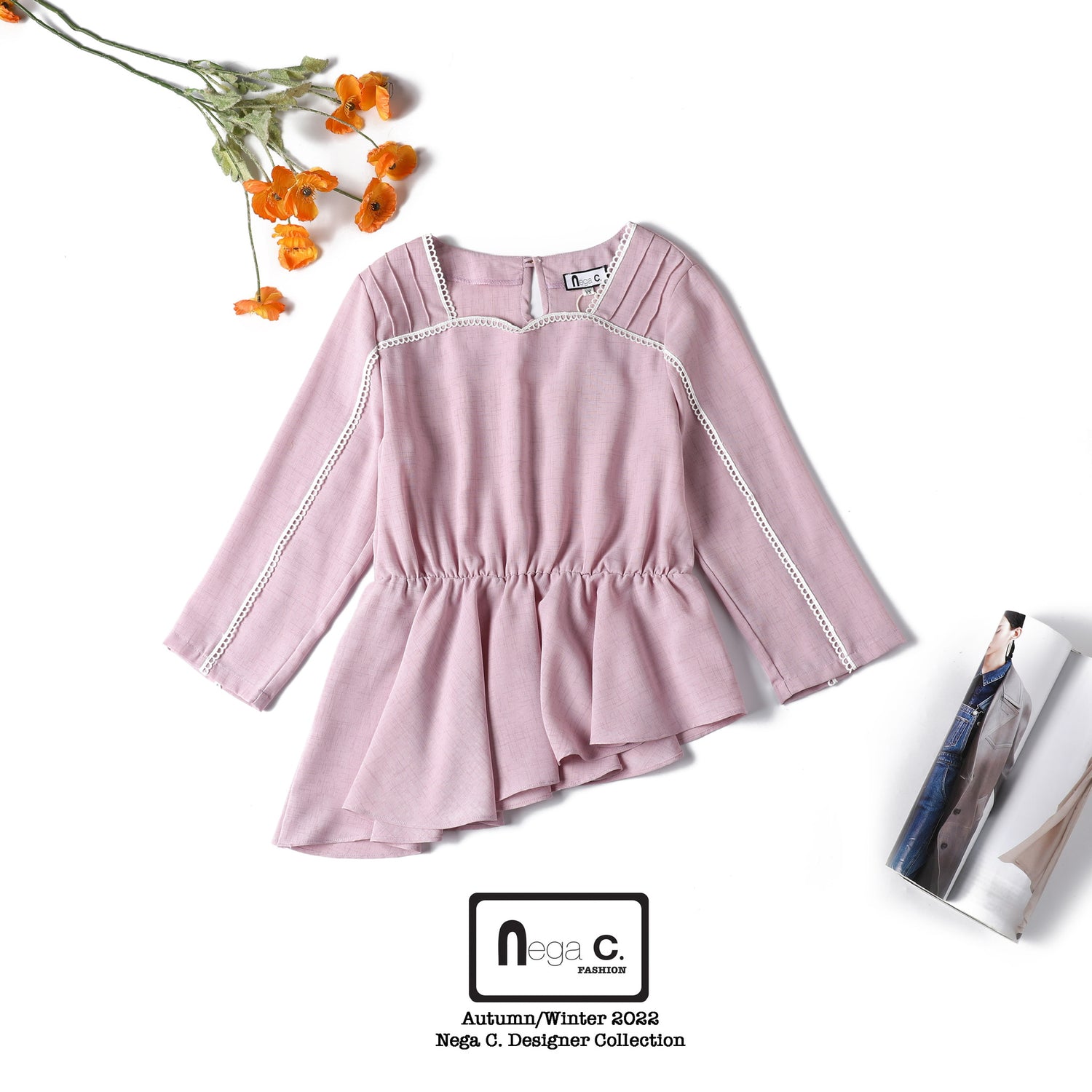 + Nega C. เสื้อทูนิคระบายไม่สมมาตรคอ Sweetheart | สีชมพู | ไม่ยืด | ไม่มีซับใน+