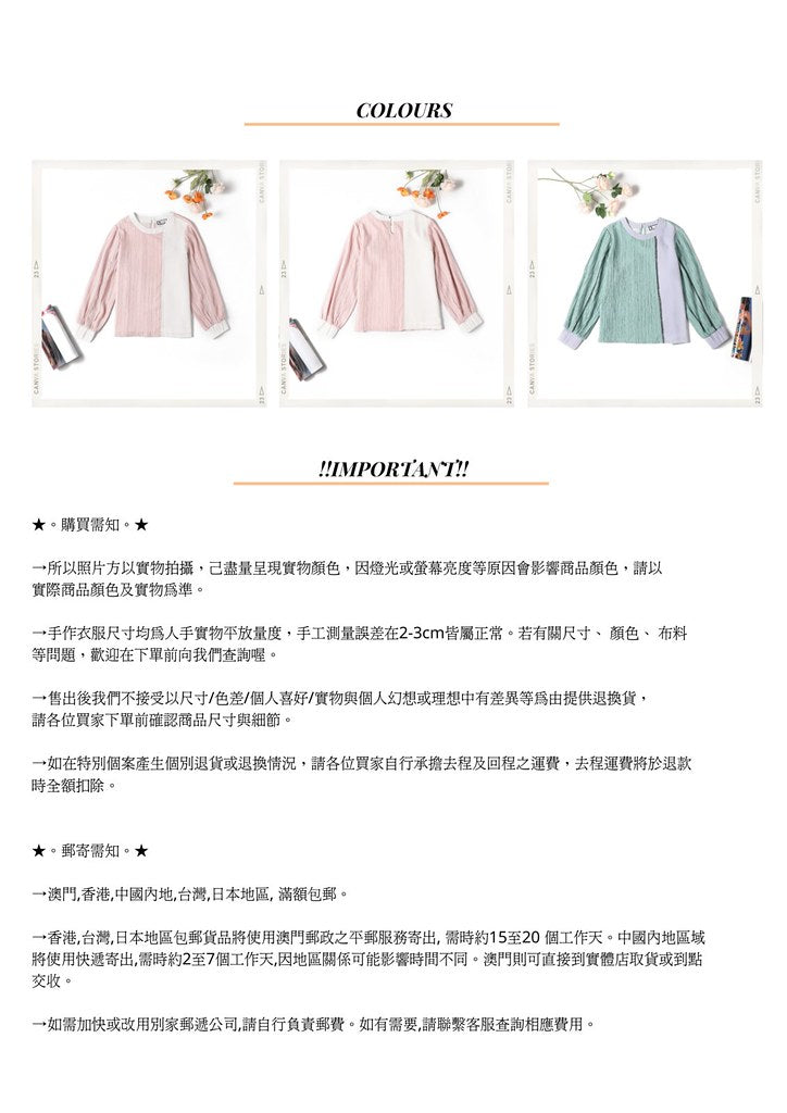 สำหรับการซื้อมากกว่า MOP$300 เพลิดเพลินกับการจัดส่งฟรี ไปรษณีย์จะถูกจัดส่งโดยใช้ SF Express