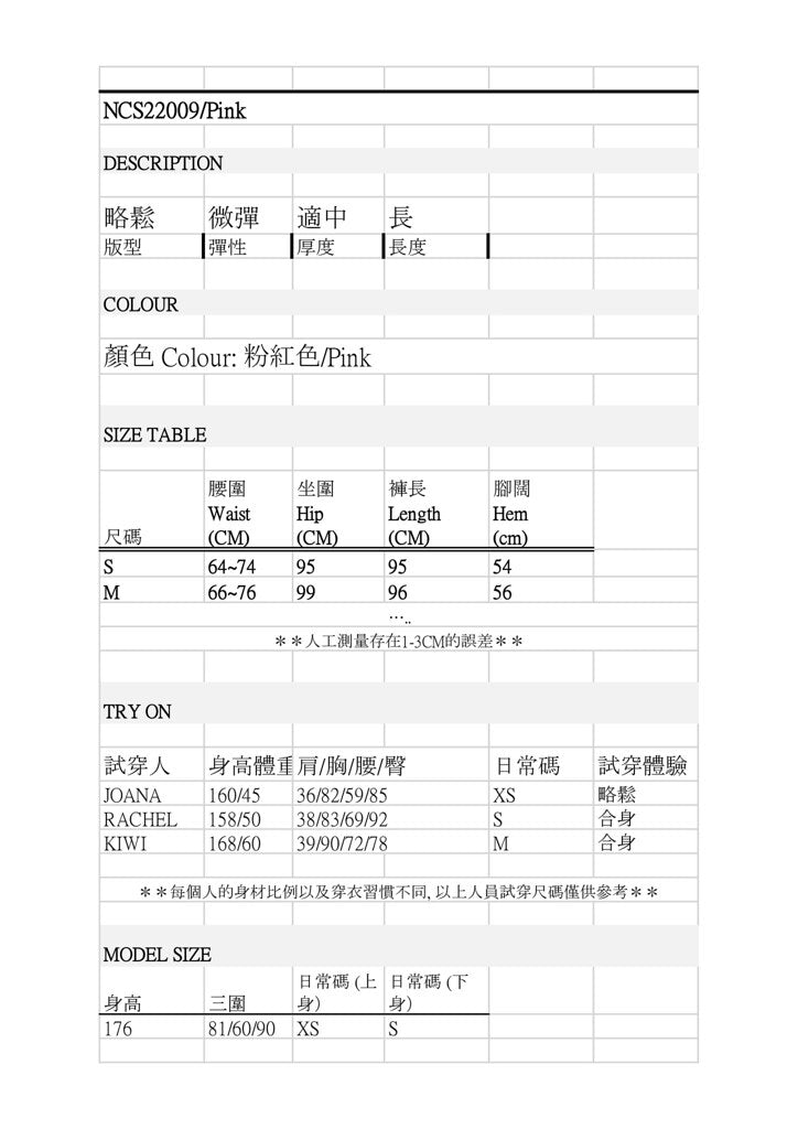 + Nega C. กางเกงขากว้างระบายอัดพลีท | สีชมพู | ไม่ยืด | ไม่มีซับใน+