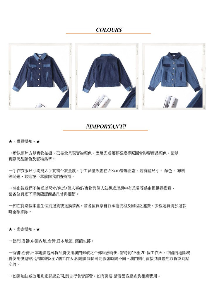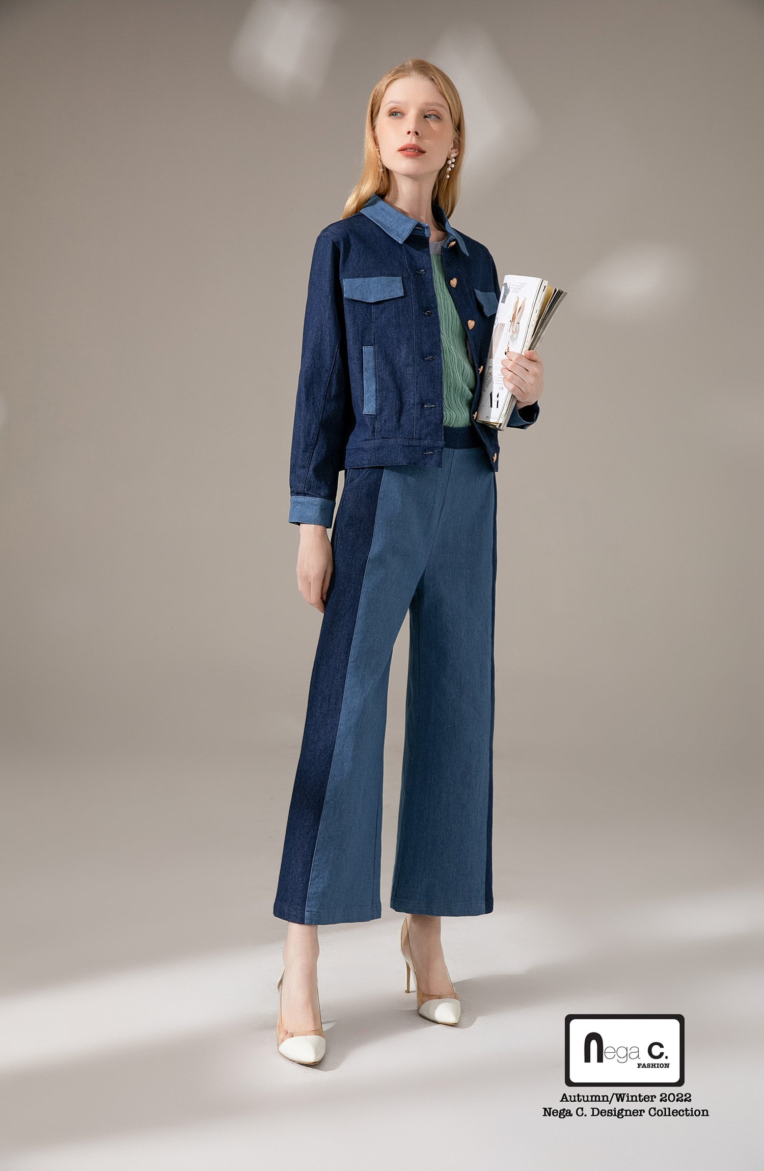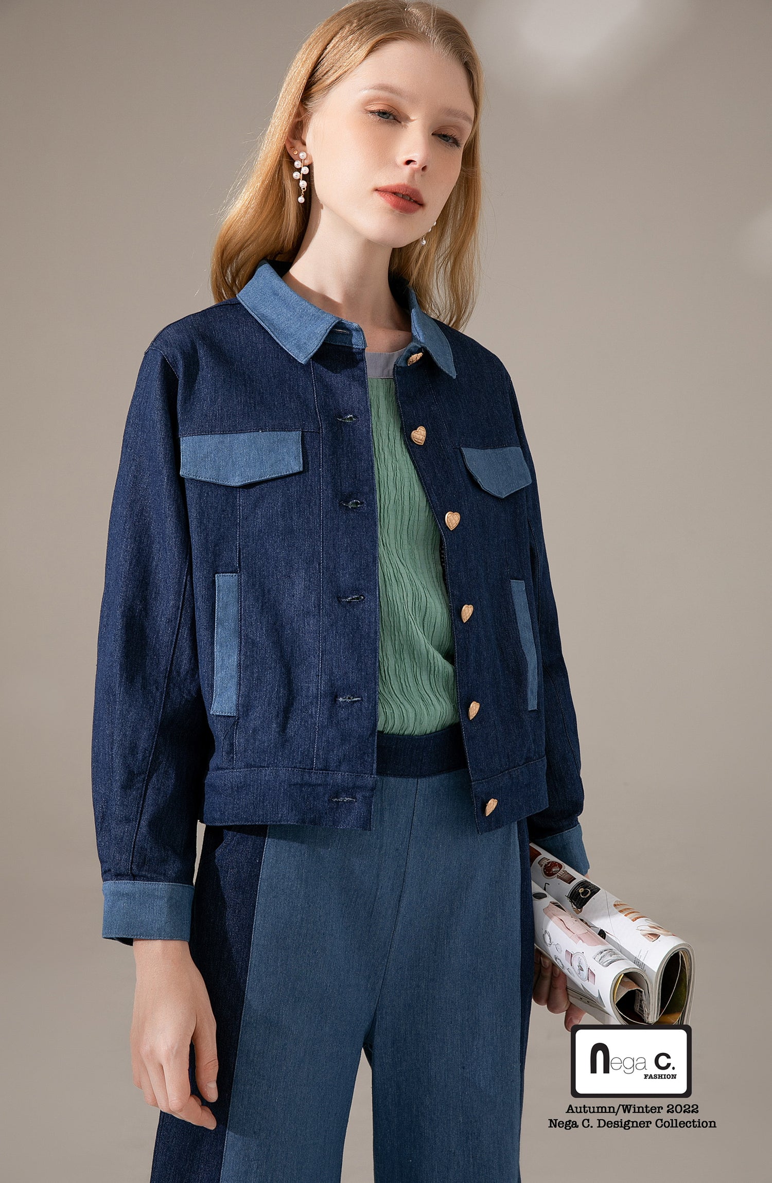 Nega C. เสื้อแจ็คเก็ตยีนส์ Color block|สีน้ำเงินเข้ม|ผ้ายืดไมโคร|ไม่มีซับใน
