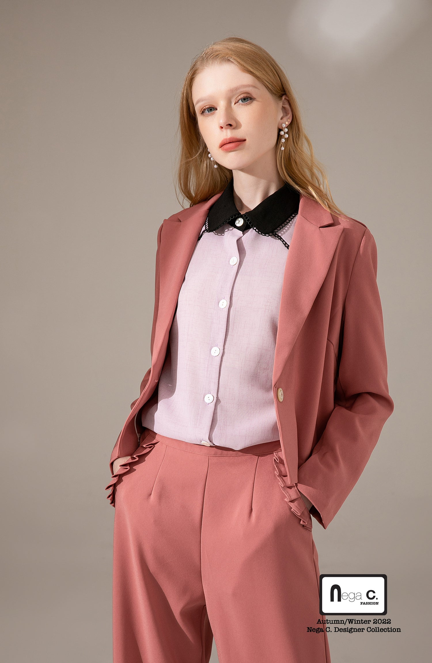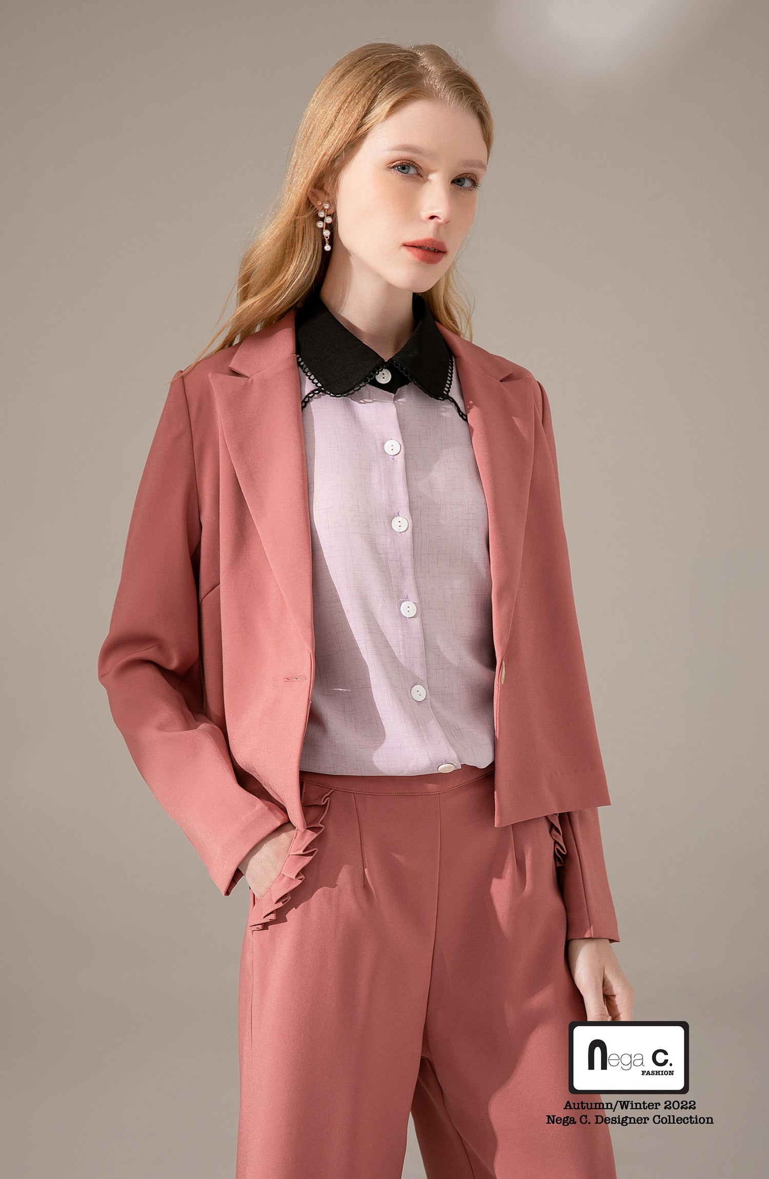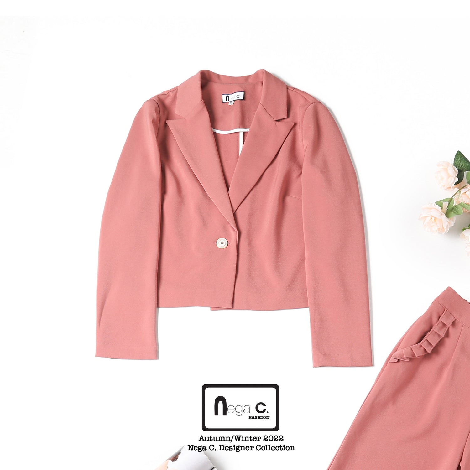 Nega C. เบลเซอร์สีทึบ|ชมพู|ยืดเล็กน้อย|ไม่มีซับใน