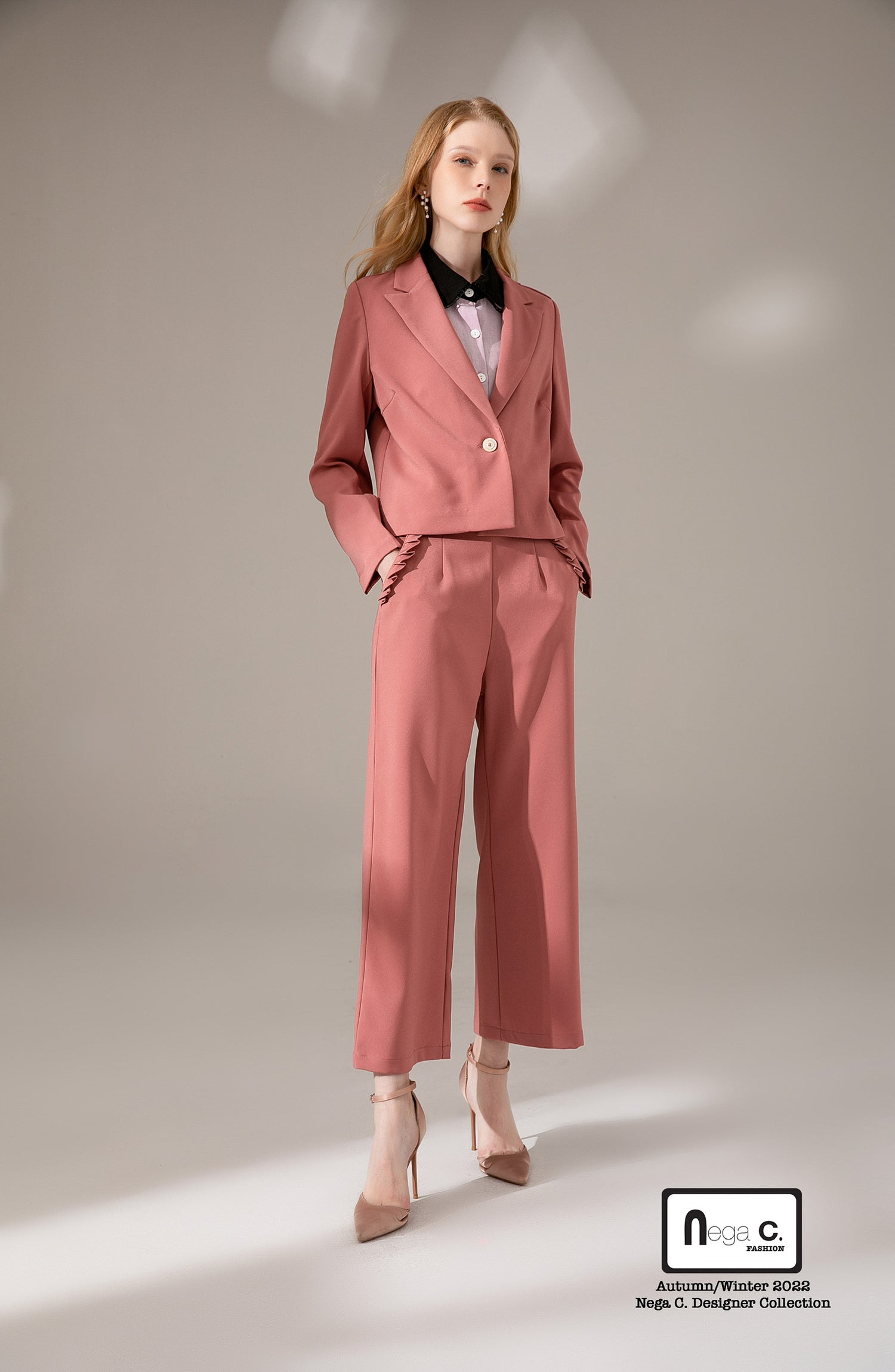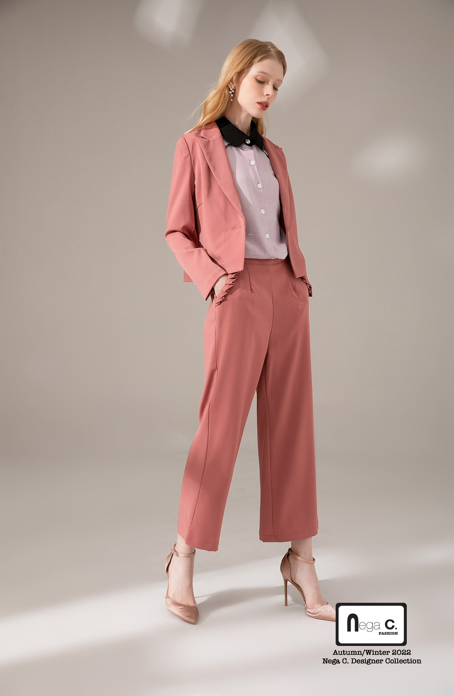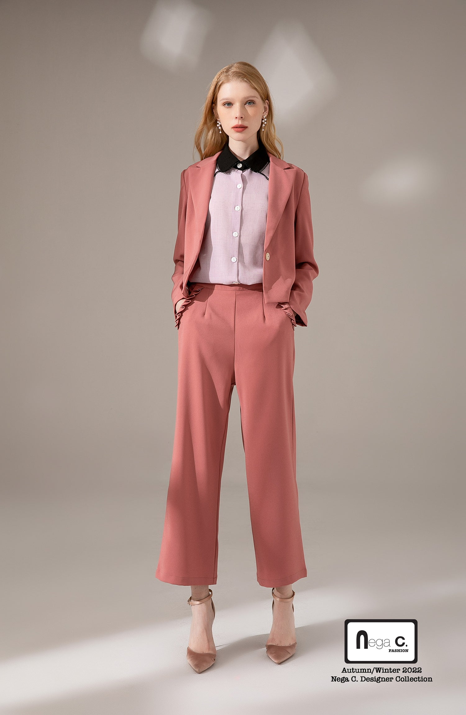Nega C. เบลเซอร์สีทึบ|ชมพู|ยืดเล็กน้อย|ไม่มีซับใน