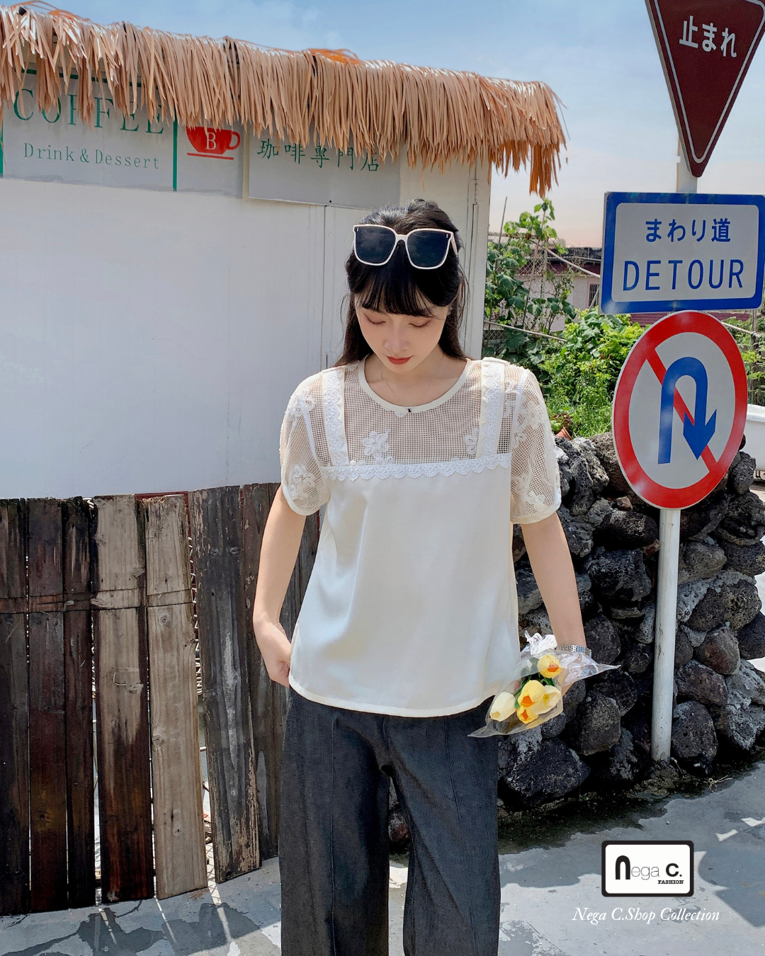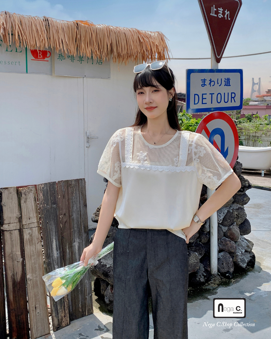 |初秋新品2件75折| 優雅蕾絲拼接上衣|米色|無裡襯|無彈