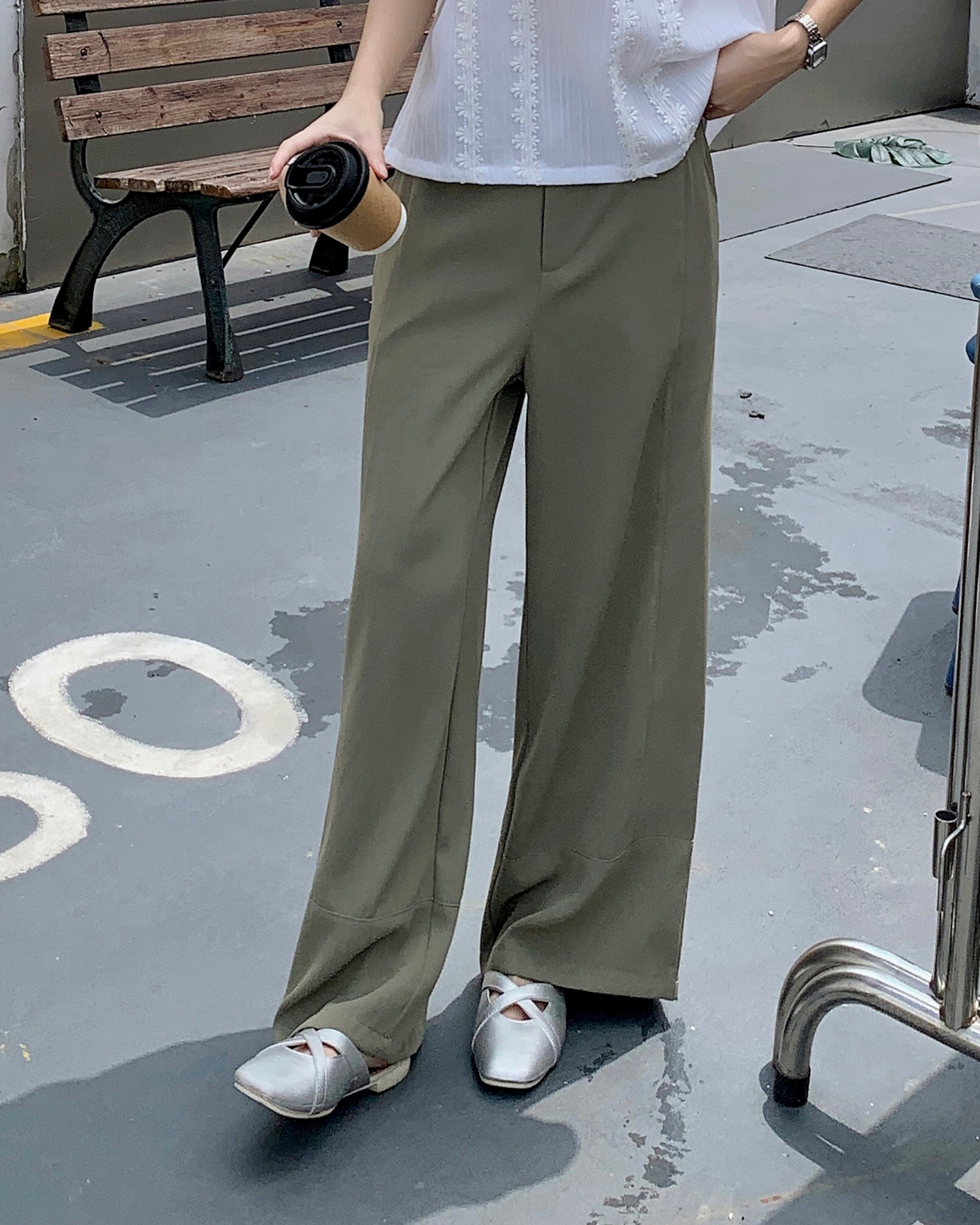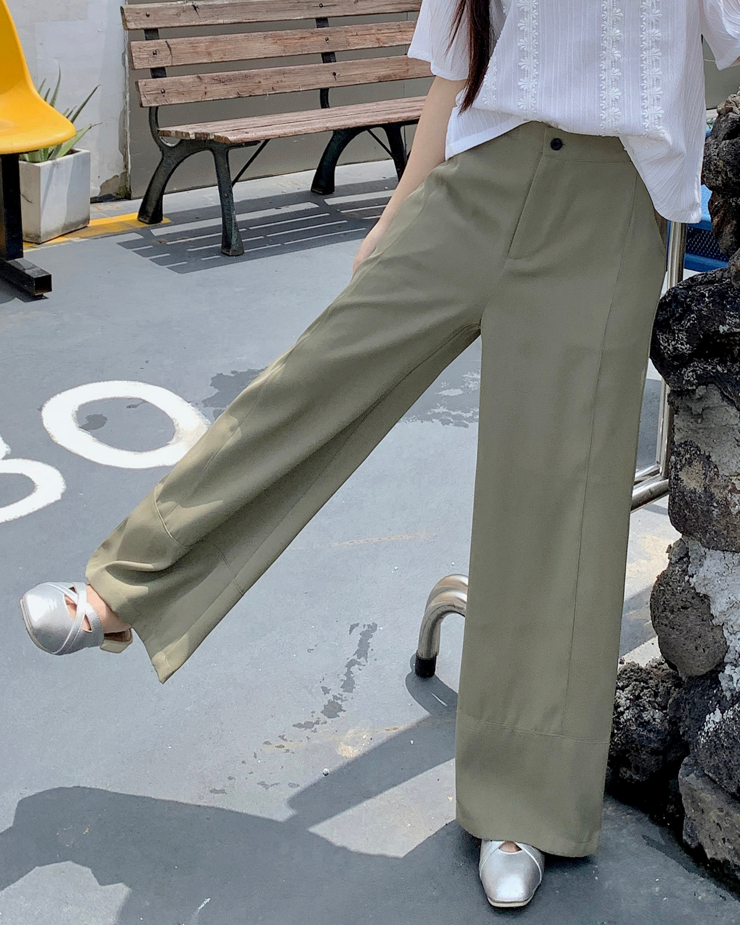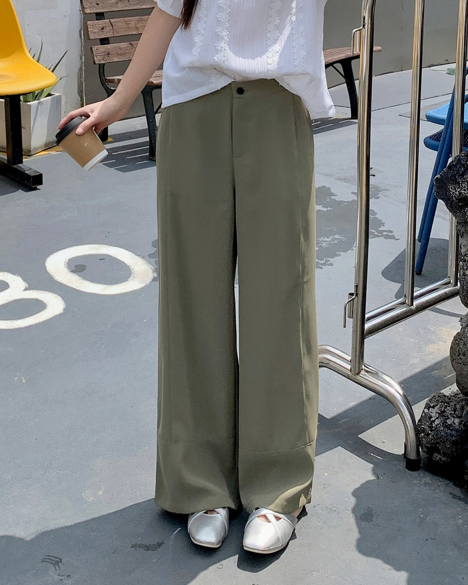 |初秋新品2件75折| 車線寬腿西褲| 灰綠色| 無彈|垂感| 後腰橡筋