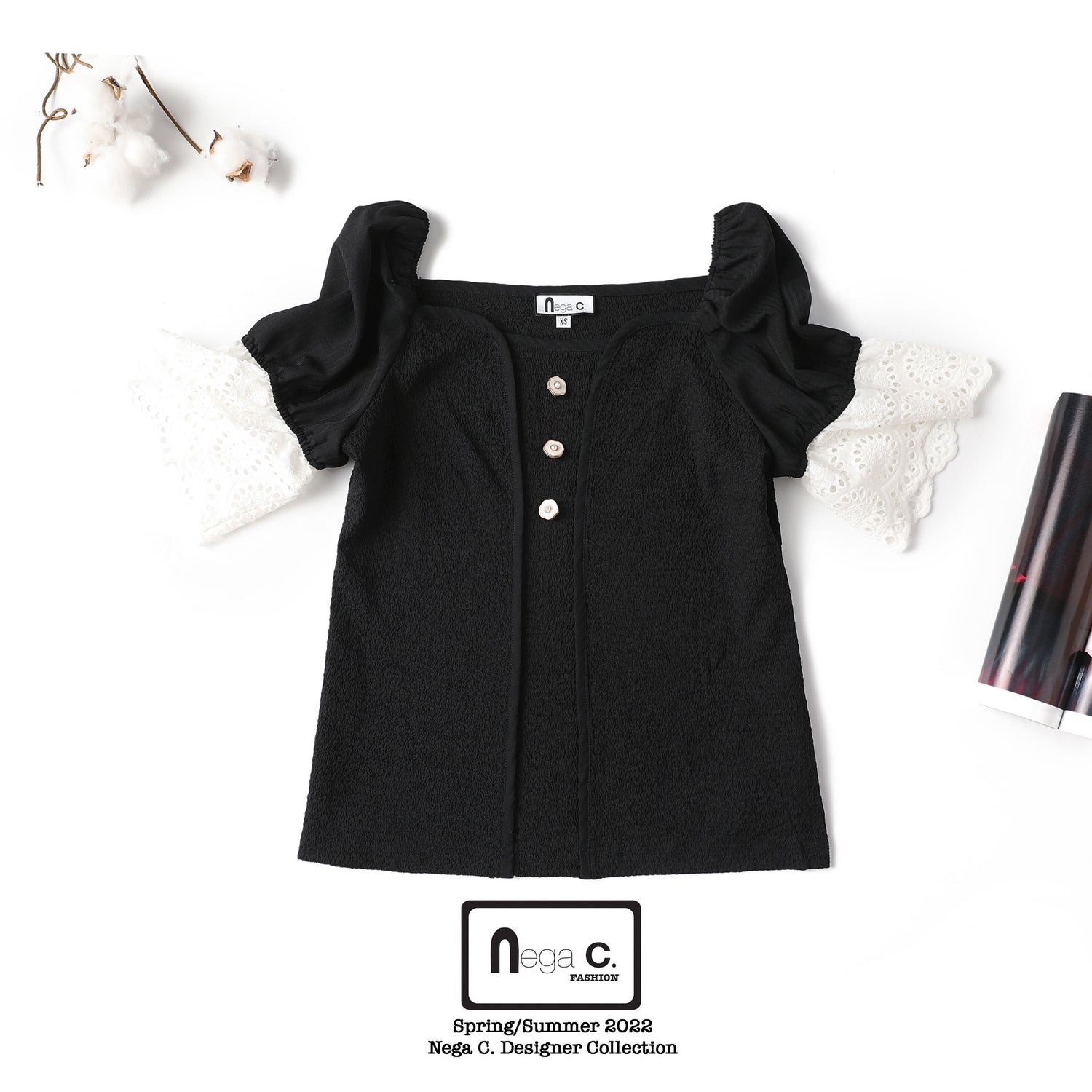 Nega C. เสื้อแขนพองคอ Sweetheart | สีดำ | ไม่มีซับใน