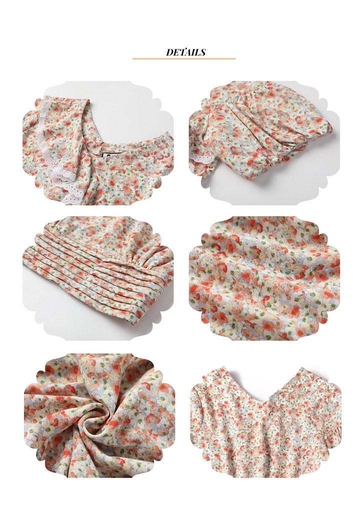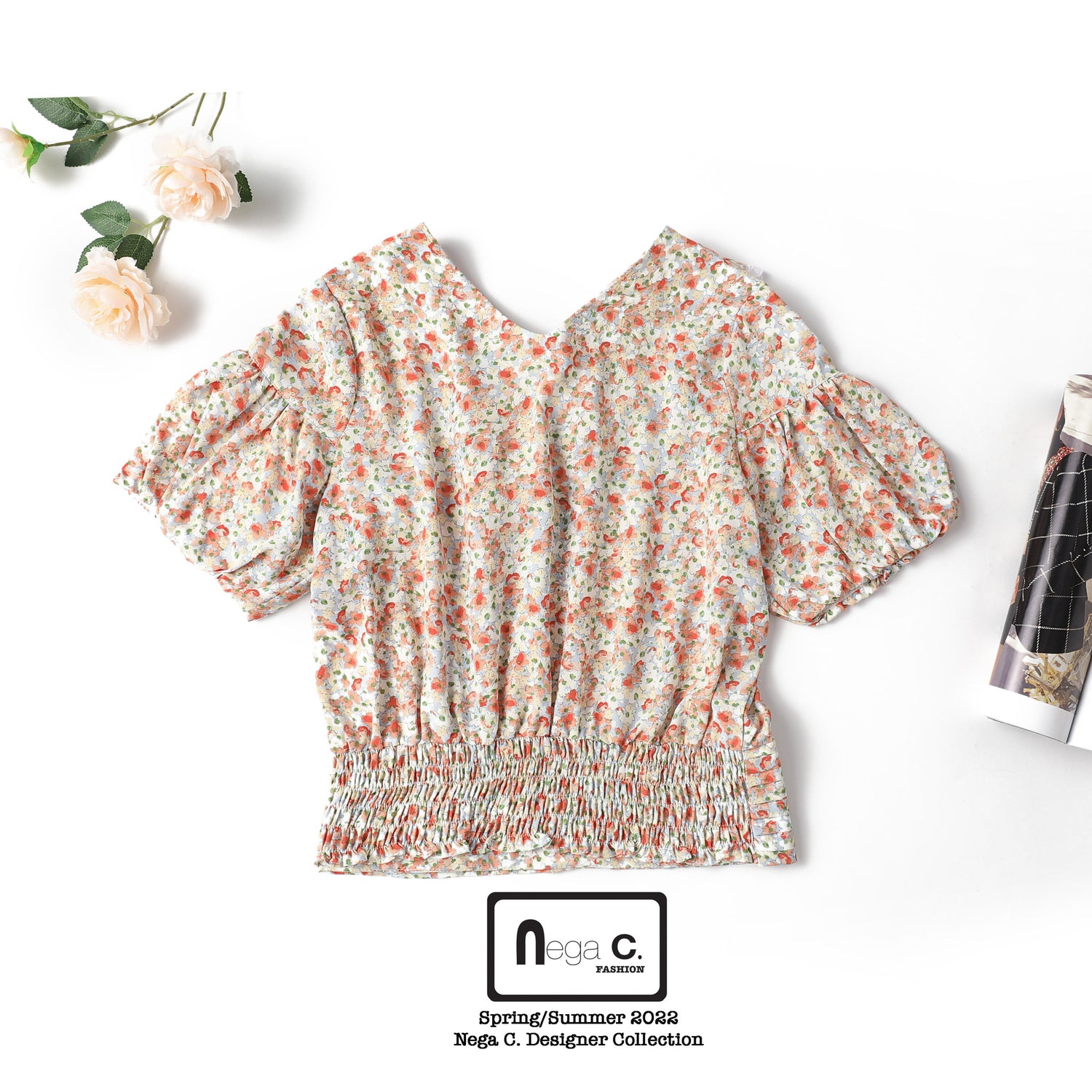 + Nega C เสื้อคอวี เอวบางลายดอกไม้เล็ก+
