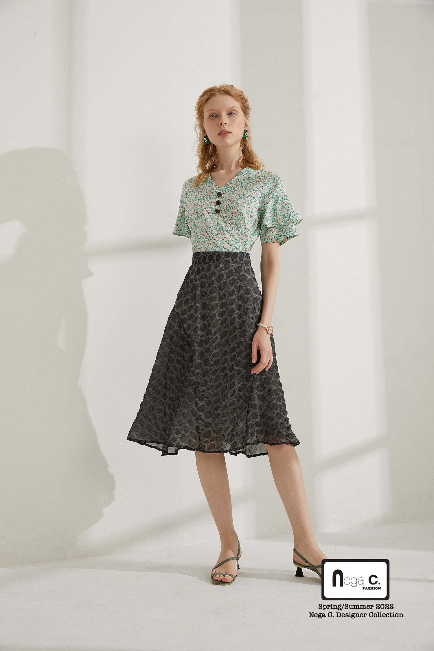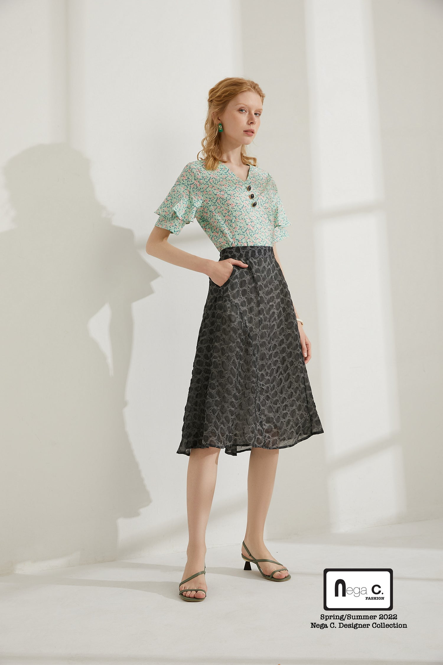 ดีไซน์เพรียวเอวสั้นนั้นเพรียวบางและแมตช์ง่าย ~ ผ้าพิมพ์ลายยังเพิ่มสีสันได้มากมาย ~ มีชีวิตชีวามาก ~
