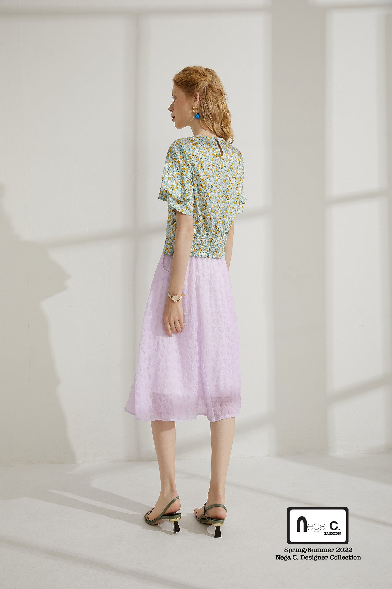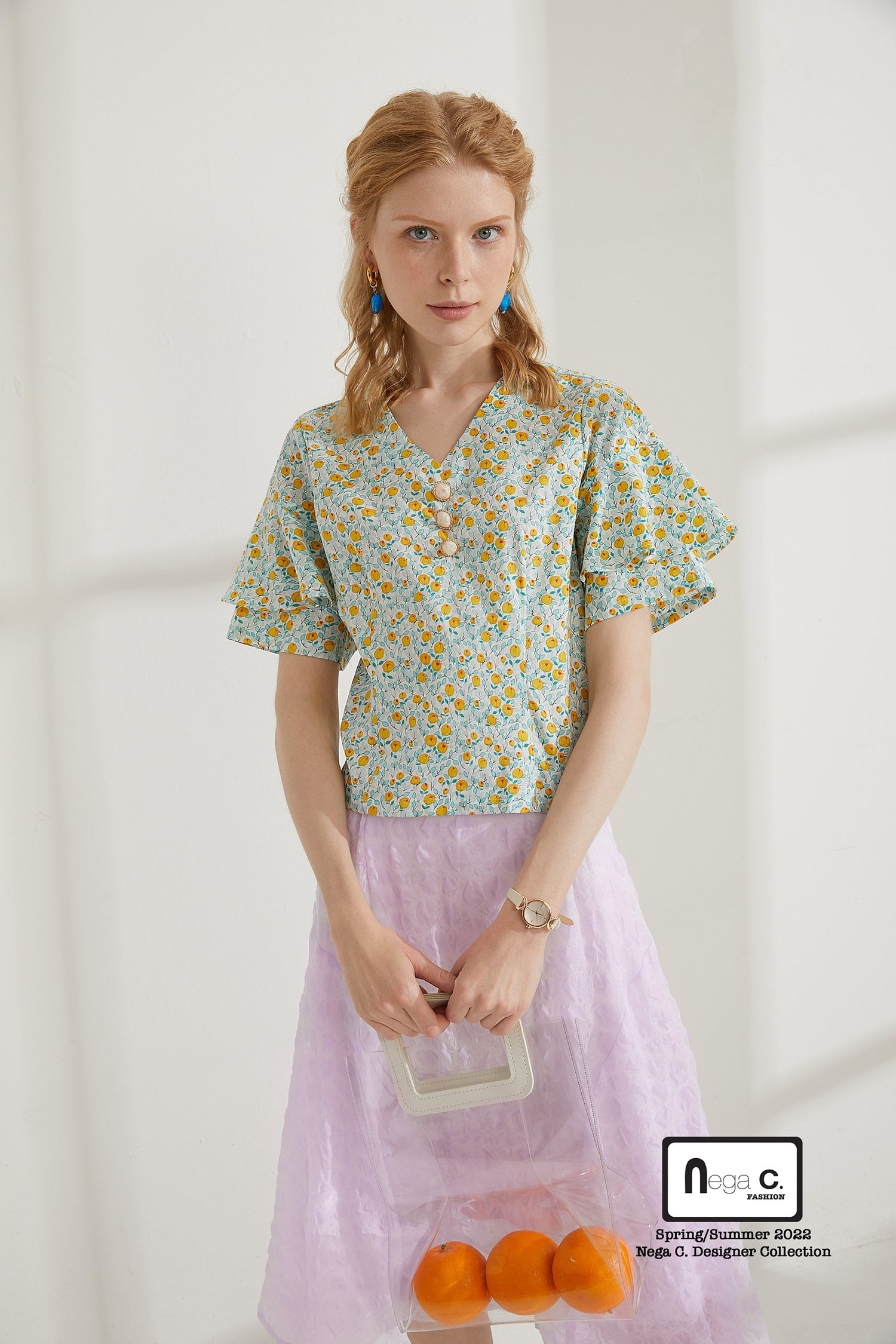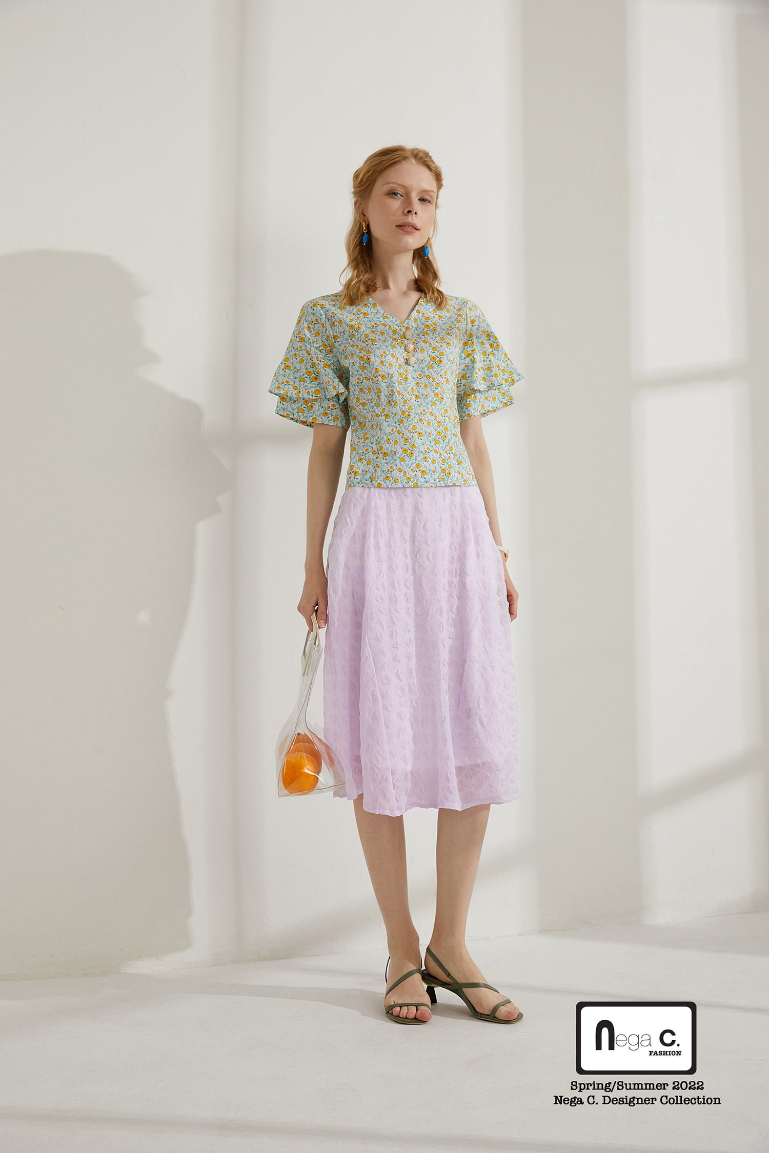 ดีไซน์เพรียวเอวสั้นนั้นเพรียวบางและแมตช์ง่าย ~ ผ้าพิมพ์ลายยังเพิ่มสีสันได้มากมาย ~ มีชีวิตชีวามาก ~